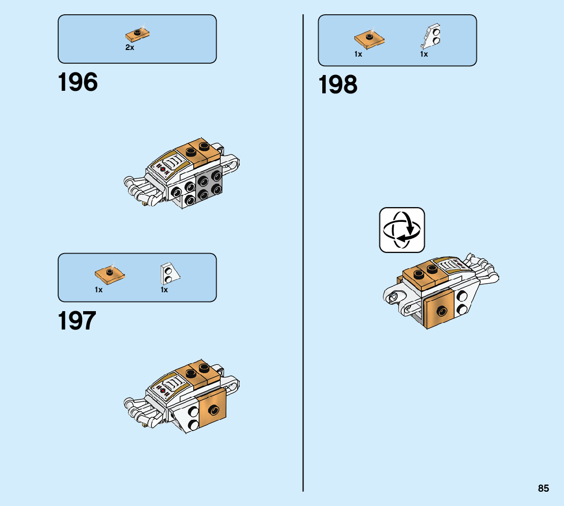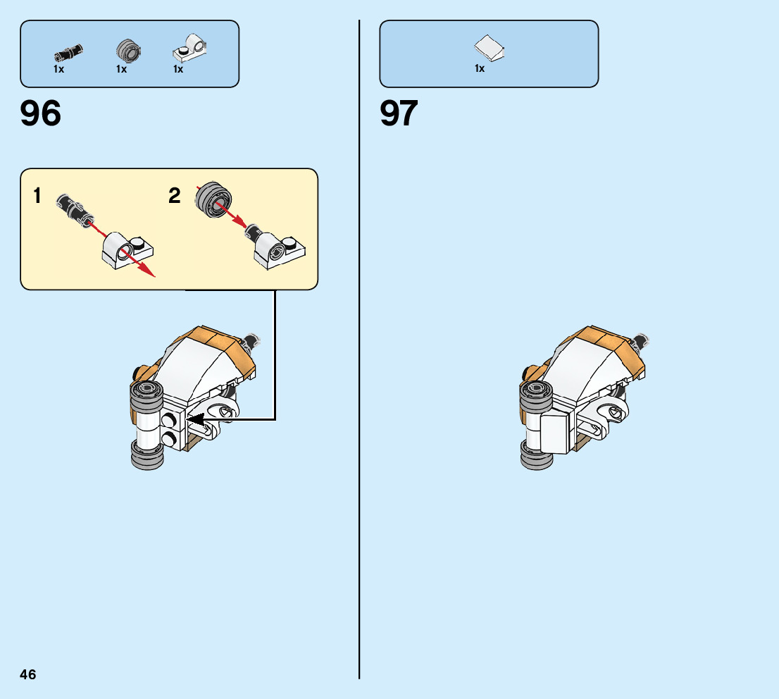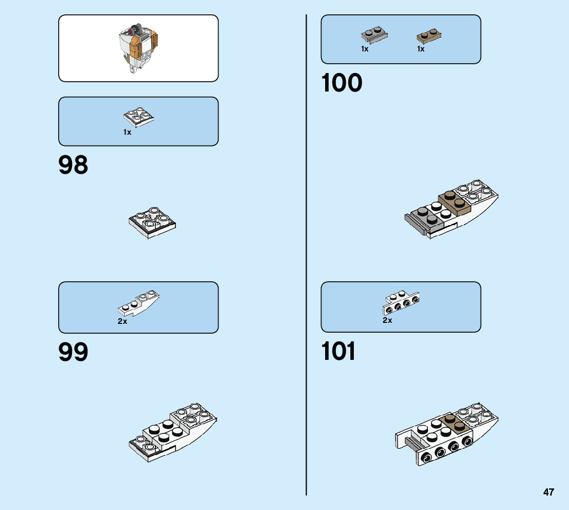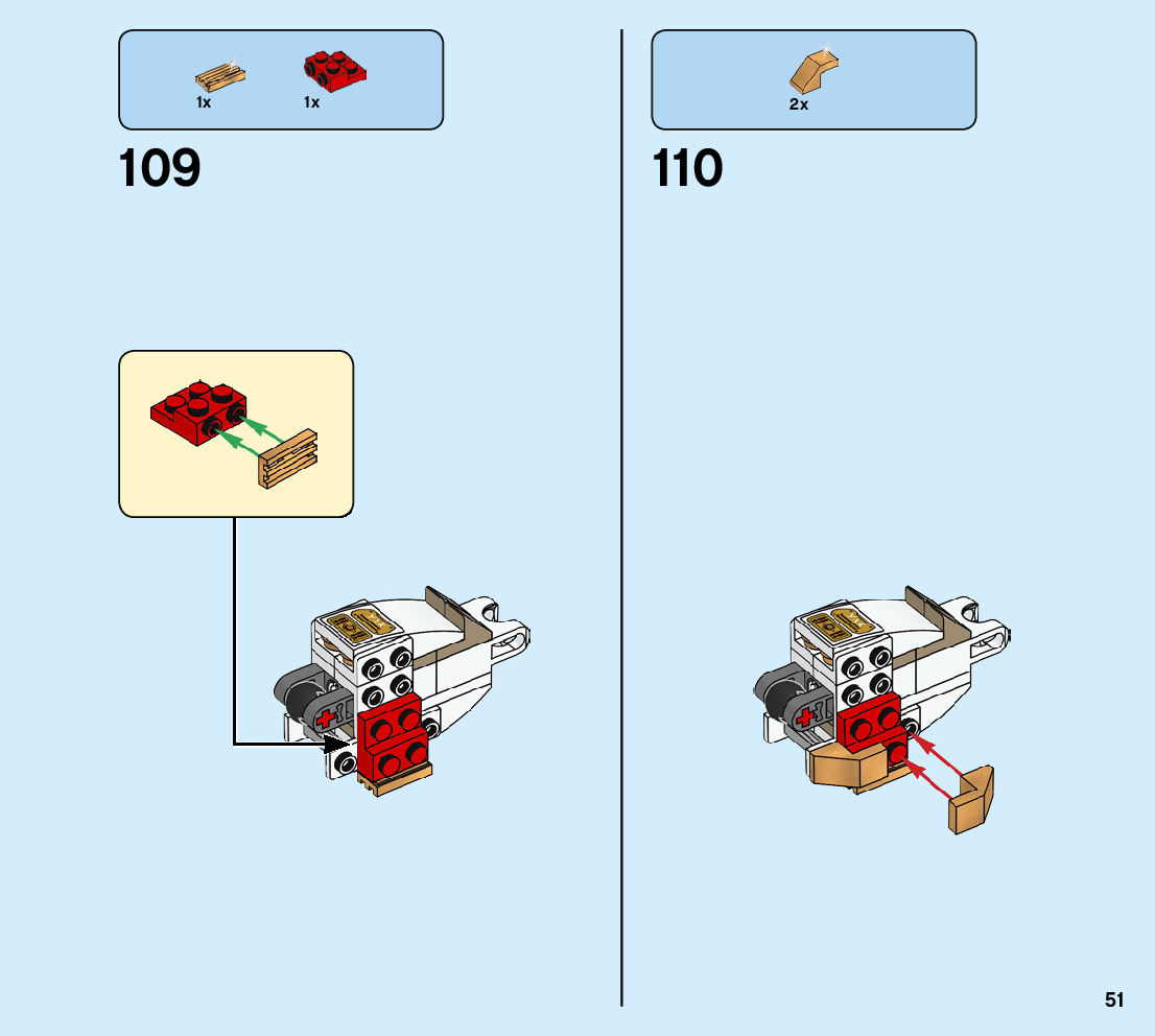The assembly guide is prepared in a very understandable way for children and adult LEGO enthusiasts. A total of 108 picture galleries are shown, explaining the step-by-step construction stages for 1 different structures.