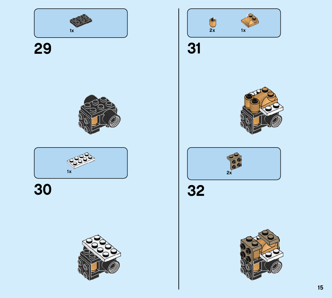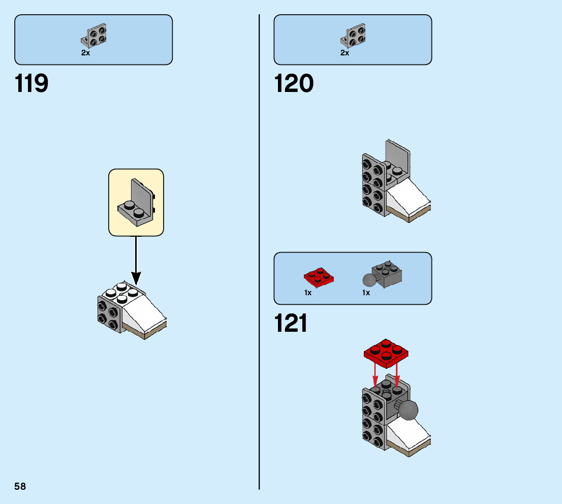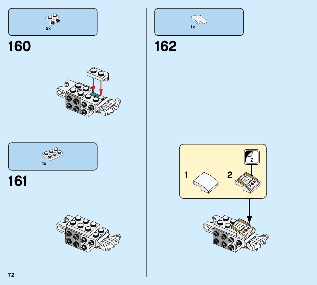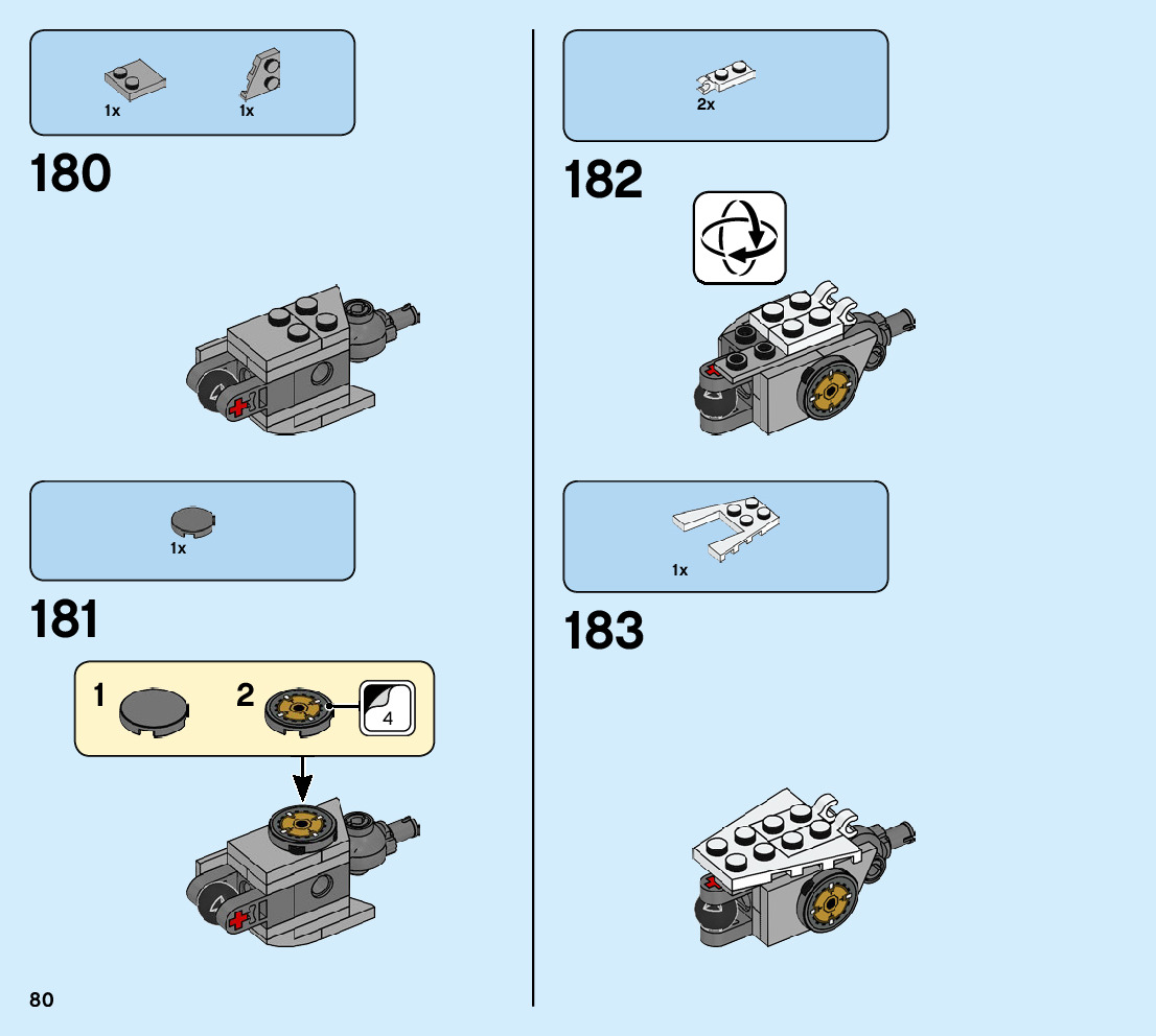 The assembly guide is prepared in a very understandable way for children and adult LEGO enthusiasts. A total of 108 picture galleries are shown, explaining the step-by-step construction stages for 1 different structures.