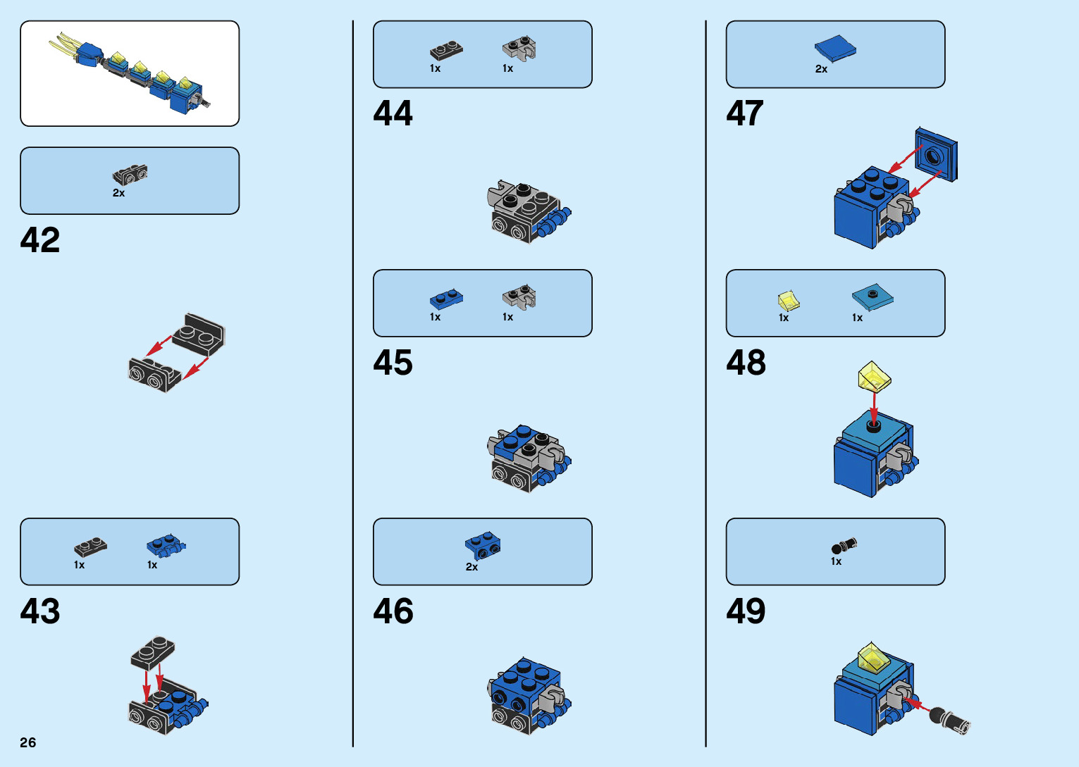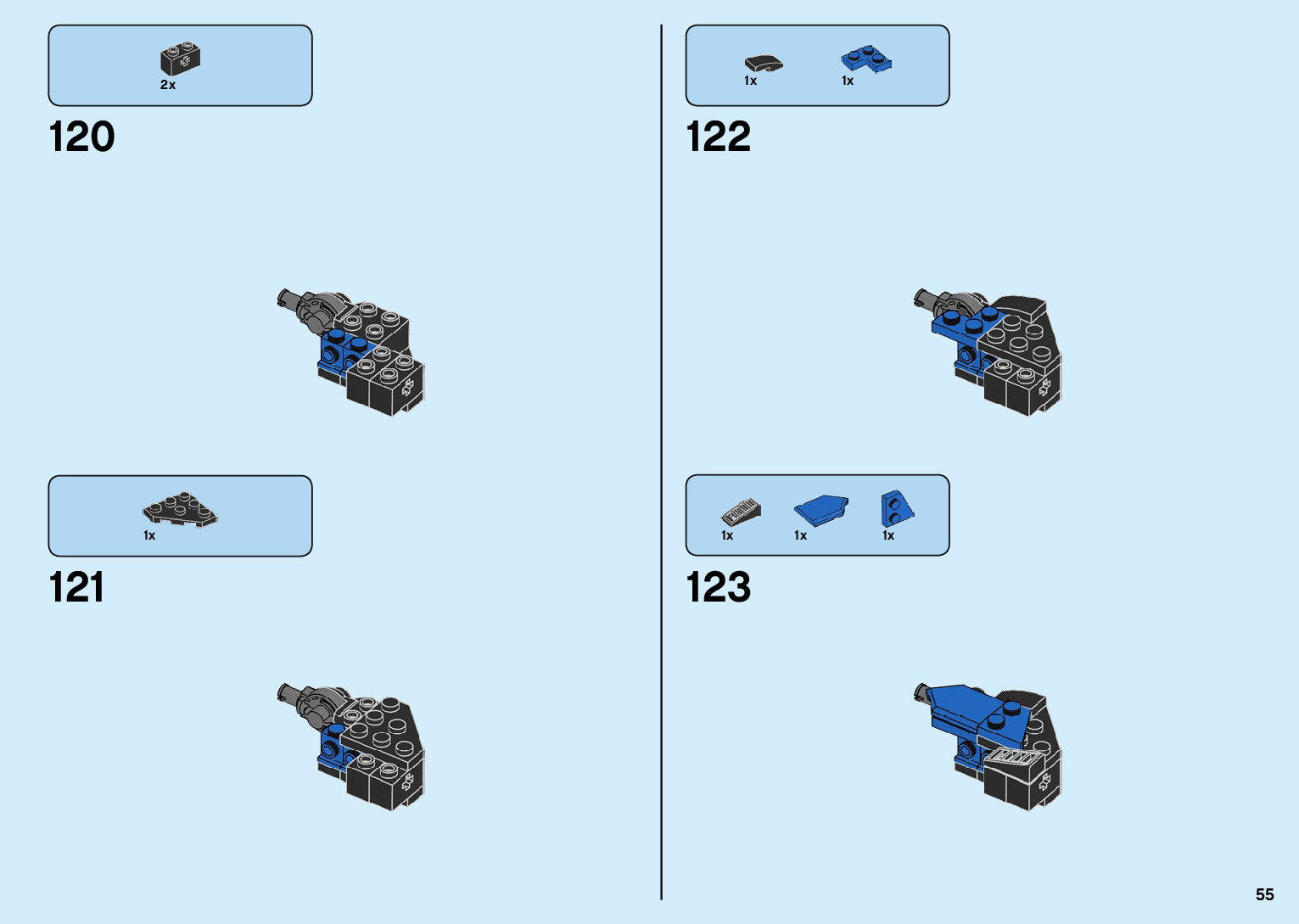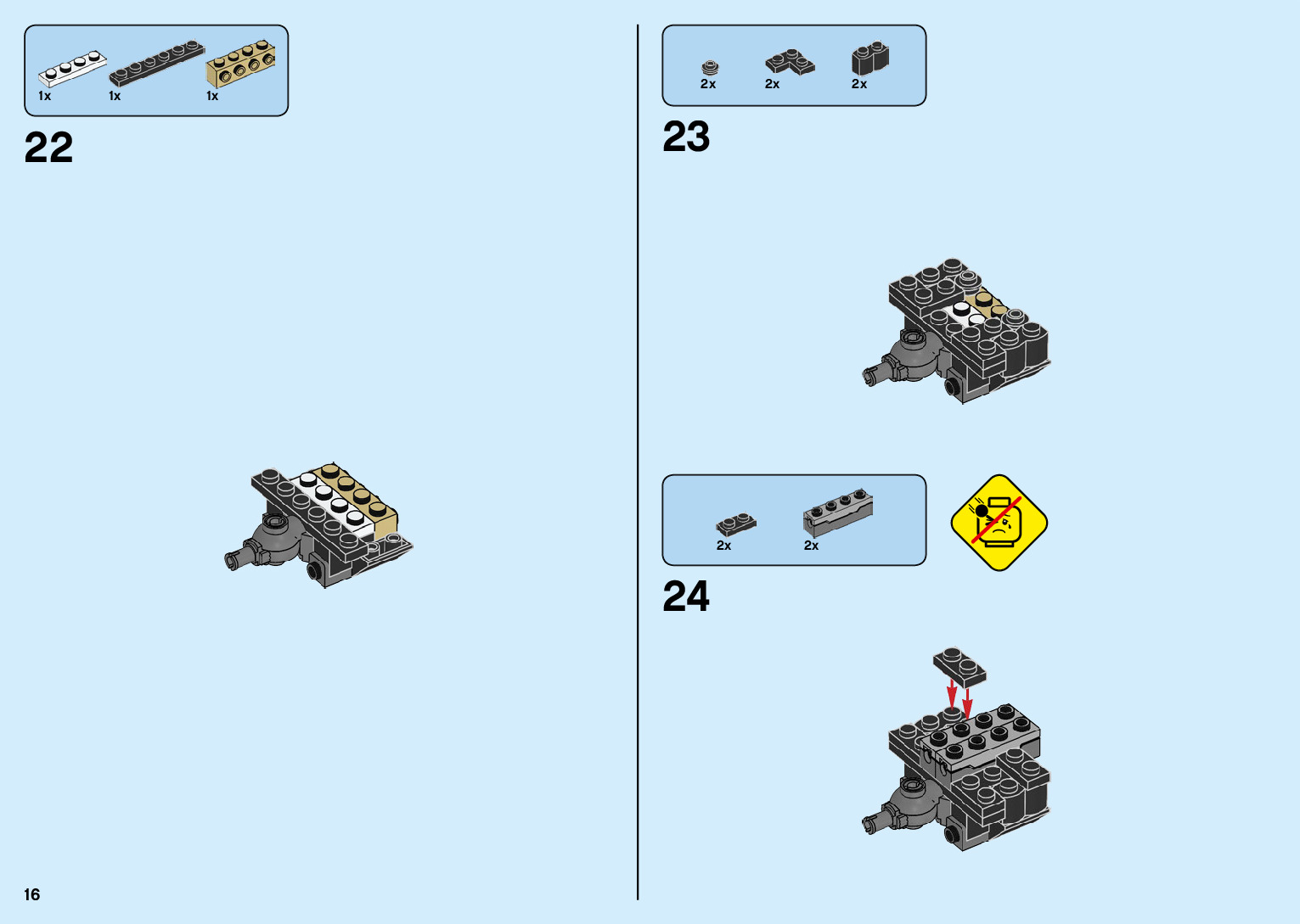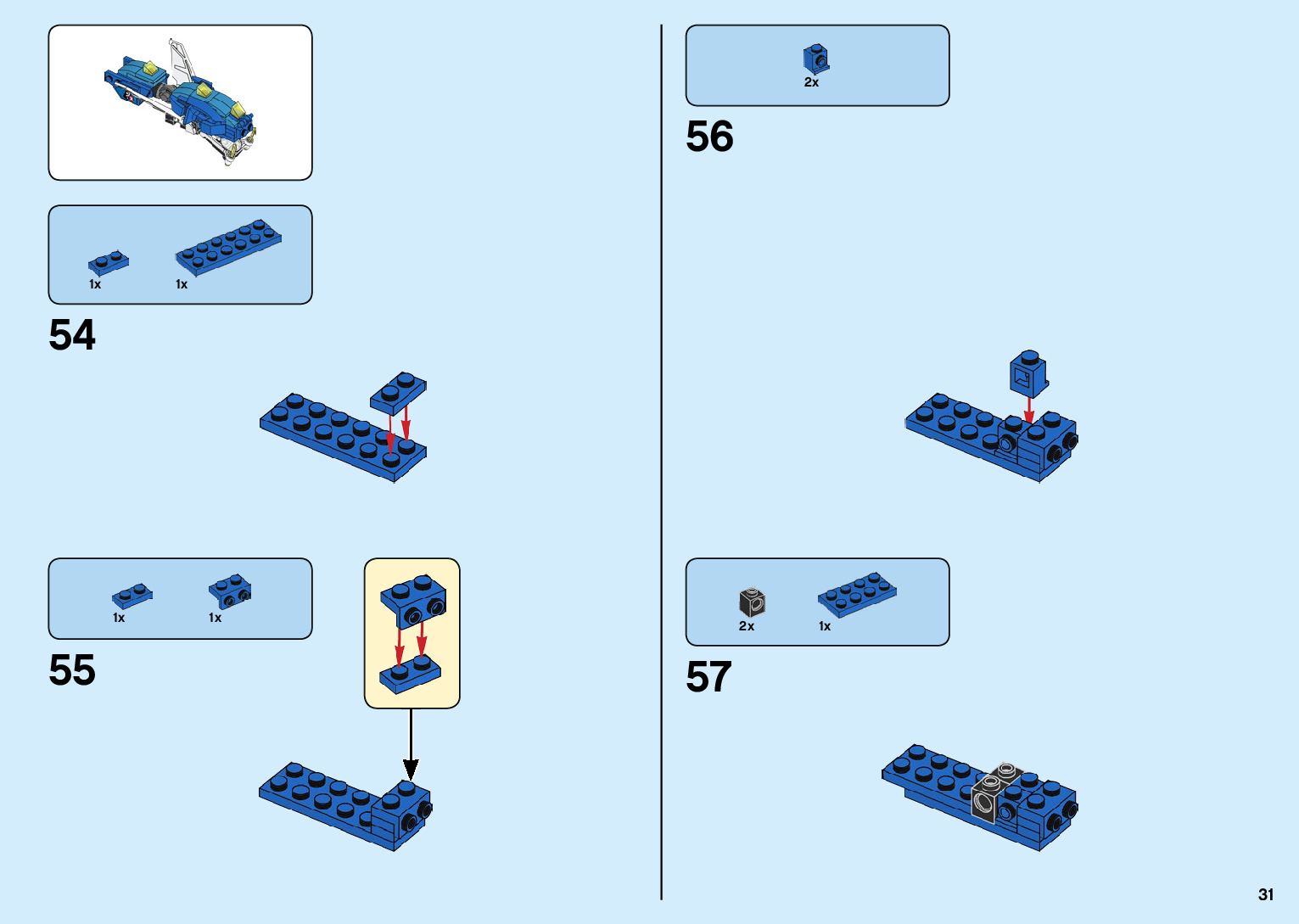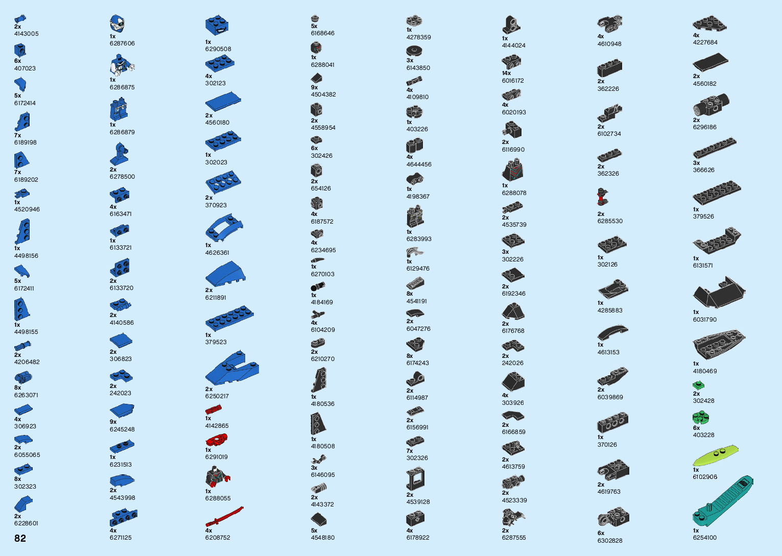 The assembly guide is prepared in a very understandable way for children and adult LEGO enthusiasts. A total of 84 picture galleries are shown, explaining the step-by-step construction stages for 1 different structures.