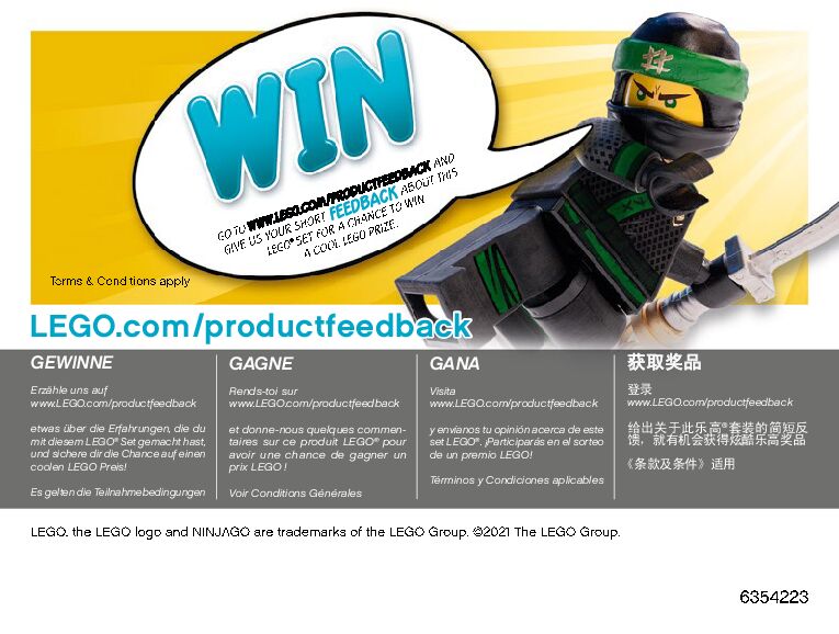 On this page you can find the original construction manual for the LEGO 71733 set. With the assembly manual you can easily learn how to build the 71733 Epic Battle Set - Cole vs. Ghost Warrior step by step. The set was released in 2021.
