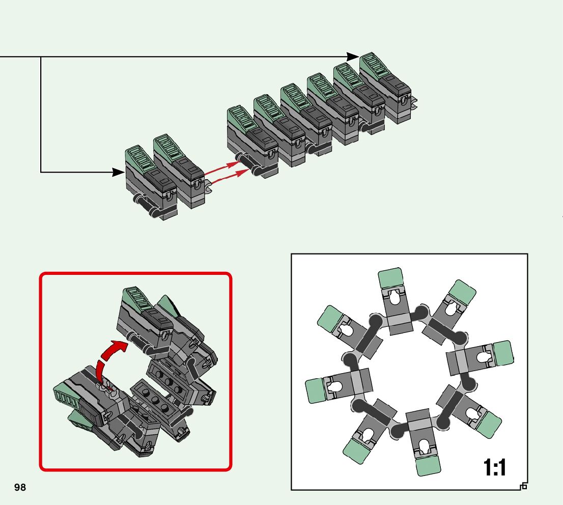 The assembly guide is prepared in a very understandable way for children and adult LEGO enthusiasts. A total of 108 picture galleries are shown, explaining the step-by-step construction stages for 1 different structures.