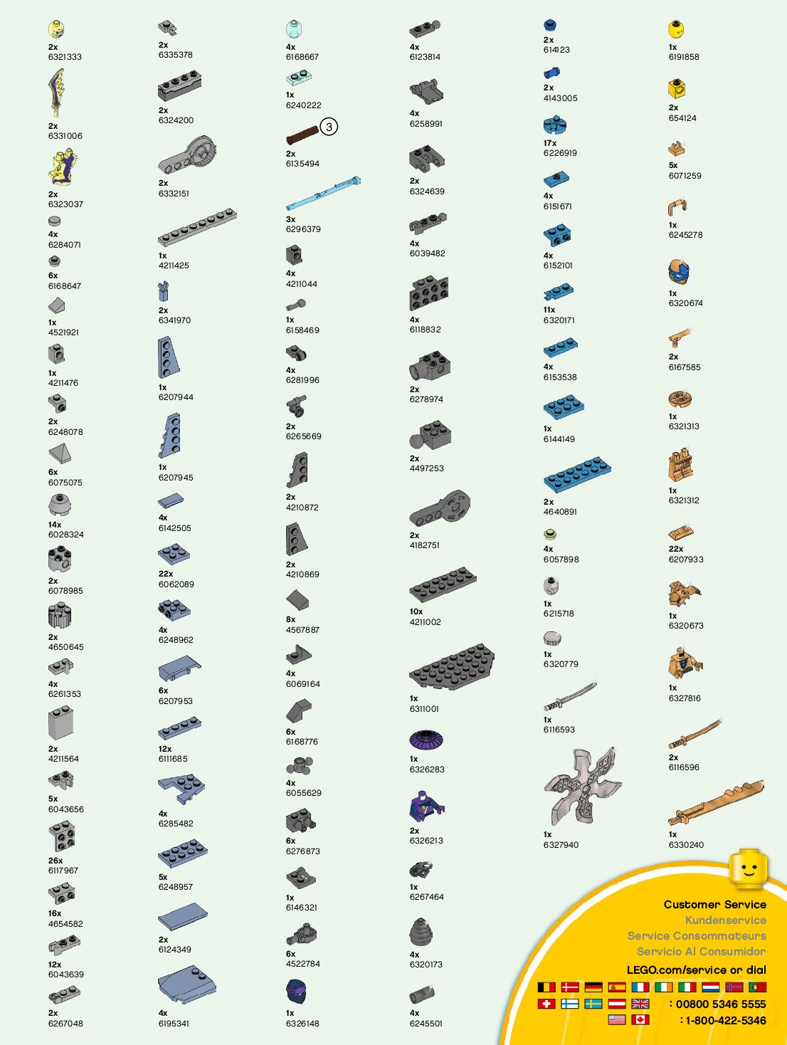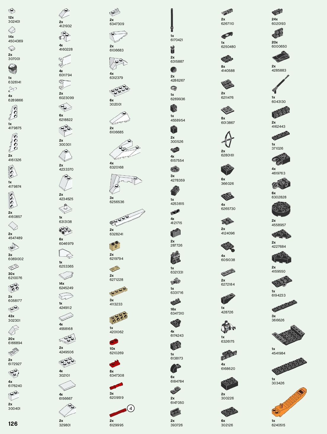 The assembly guide is prepared in a very understandable way for children and adult LEGO enthusiasts. A total of 128 picture galleries are shown, explaining the step-by-step construction stages for 1 different structures.