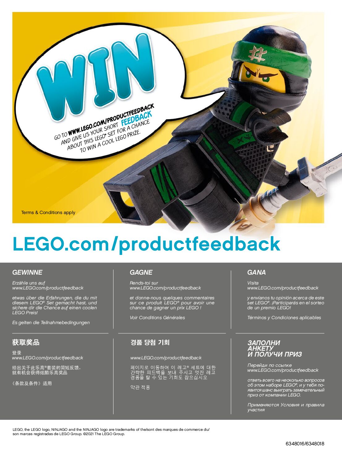 On this page you can find the original construction manual for the LEGO 71738 set. With the assembly manual you can easily learn how to build the 71738 Zane's Titan Mech Battle step by step. The set was released in 2021.