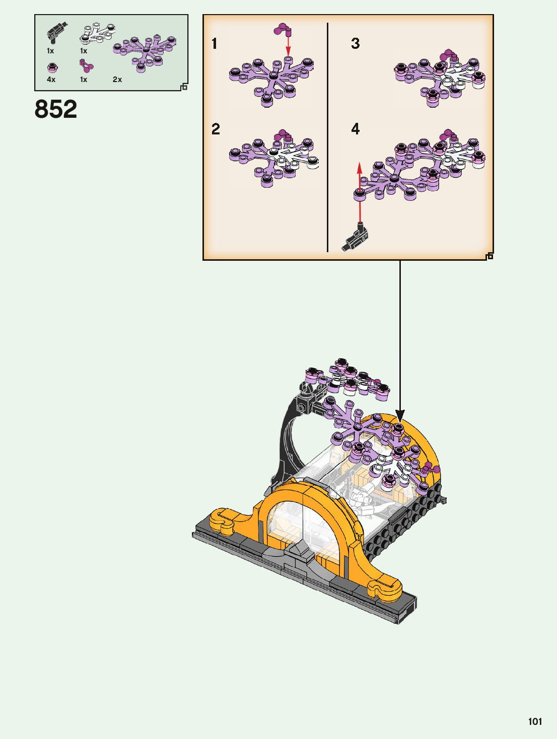 The assembly guide is prepared in a very understandable way for children and adult LEGO enthusiasts. A total of 560 picture galleries are shown, explaining the step-by-step construction stages for 3 different structures.