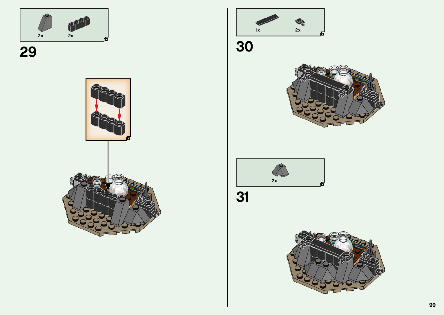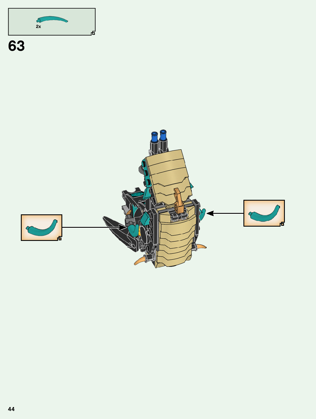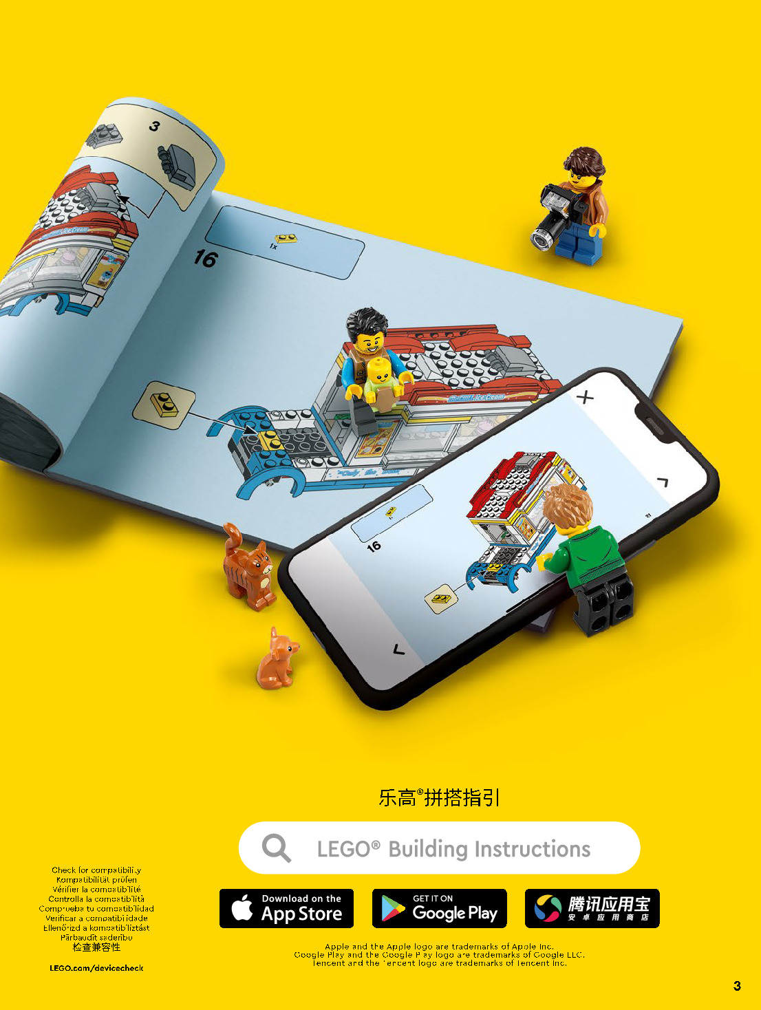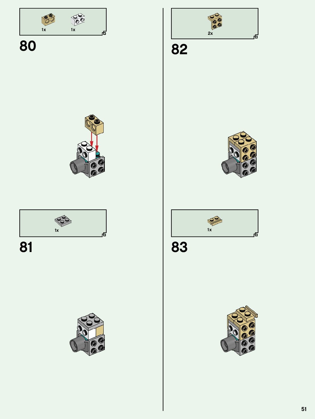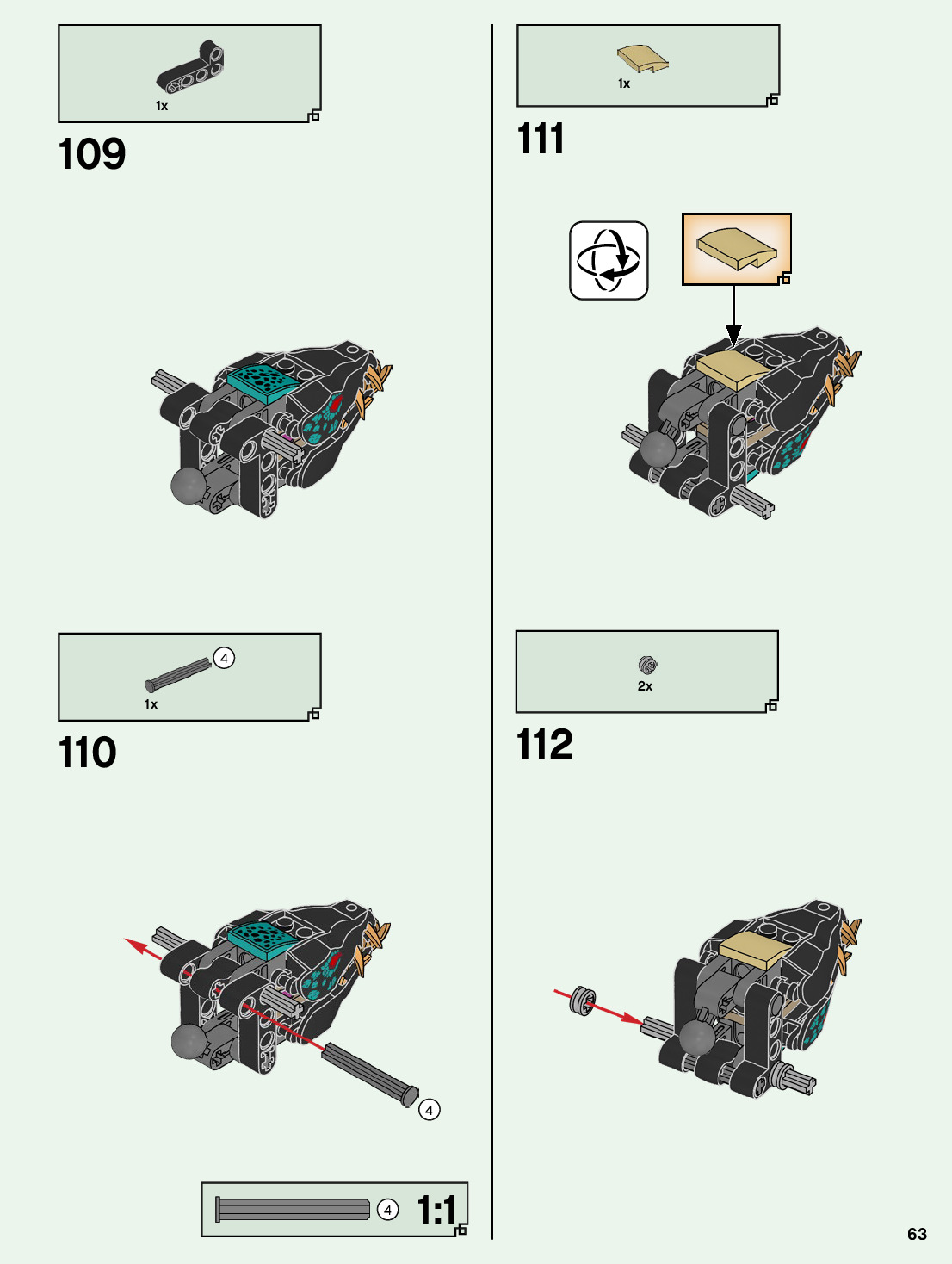 The assembly guide is prepared in a very understandable way for children and adult LEGO enthusiasts. A total of 208 picture galleries are shown, explaining the step-by-step construction stages for 2 different structures.