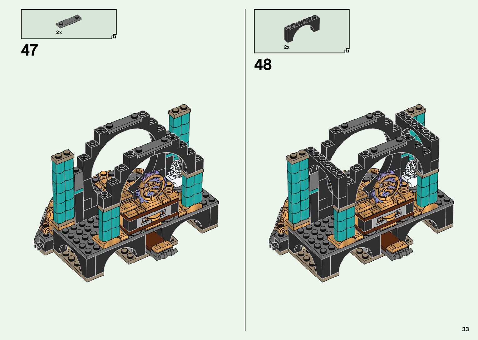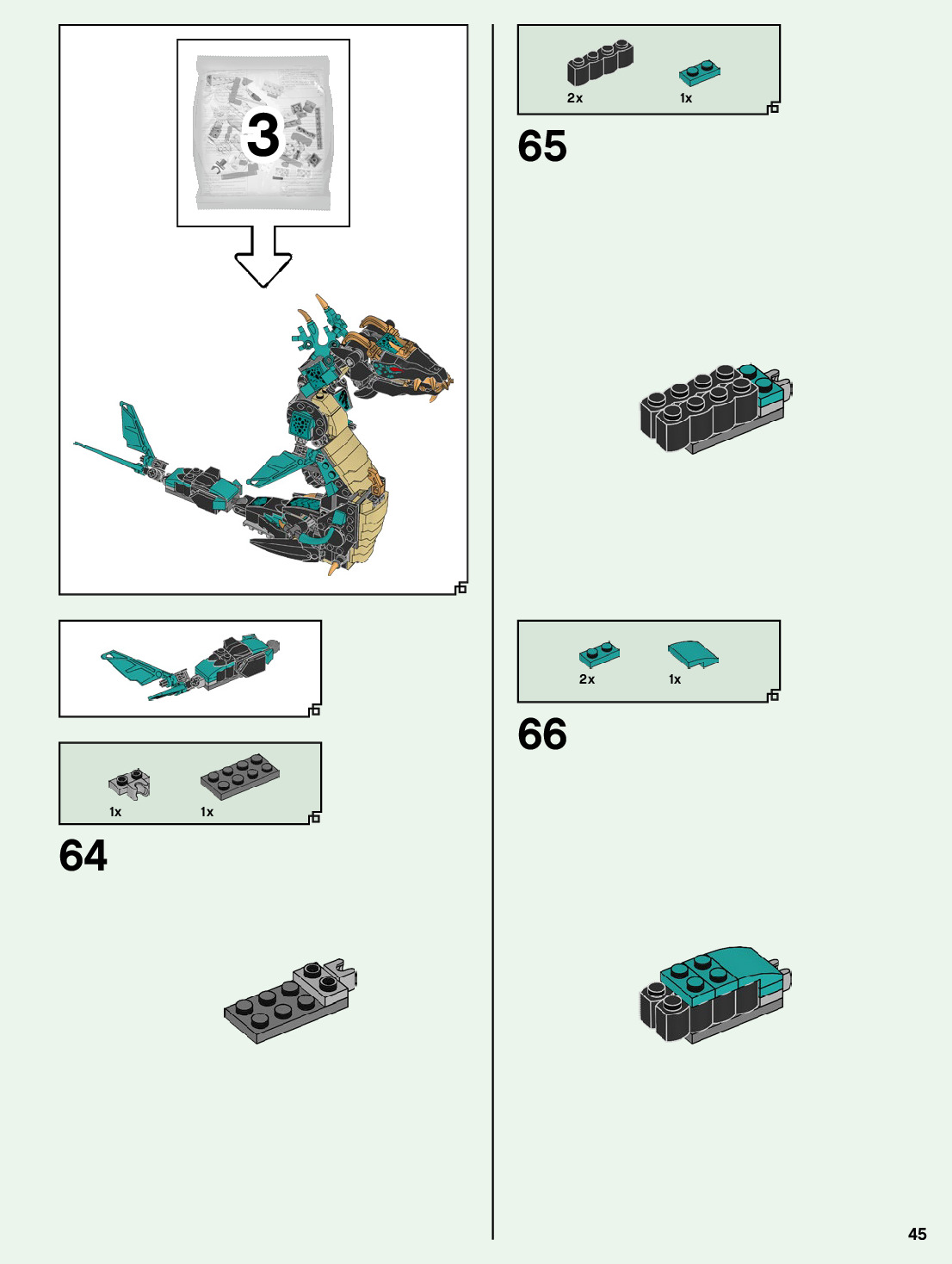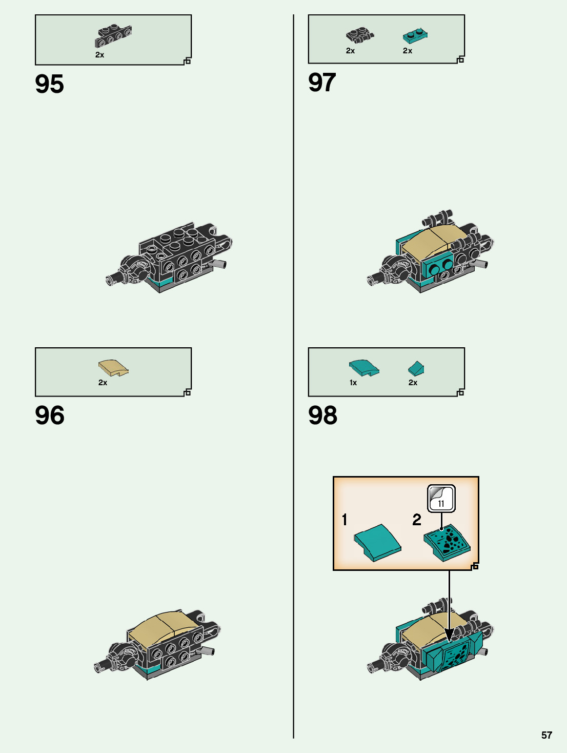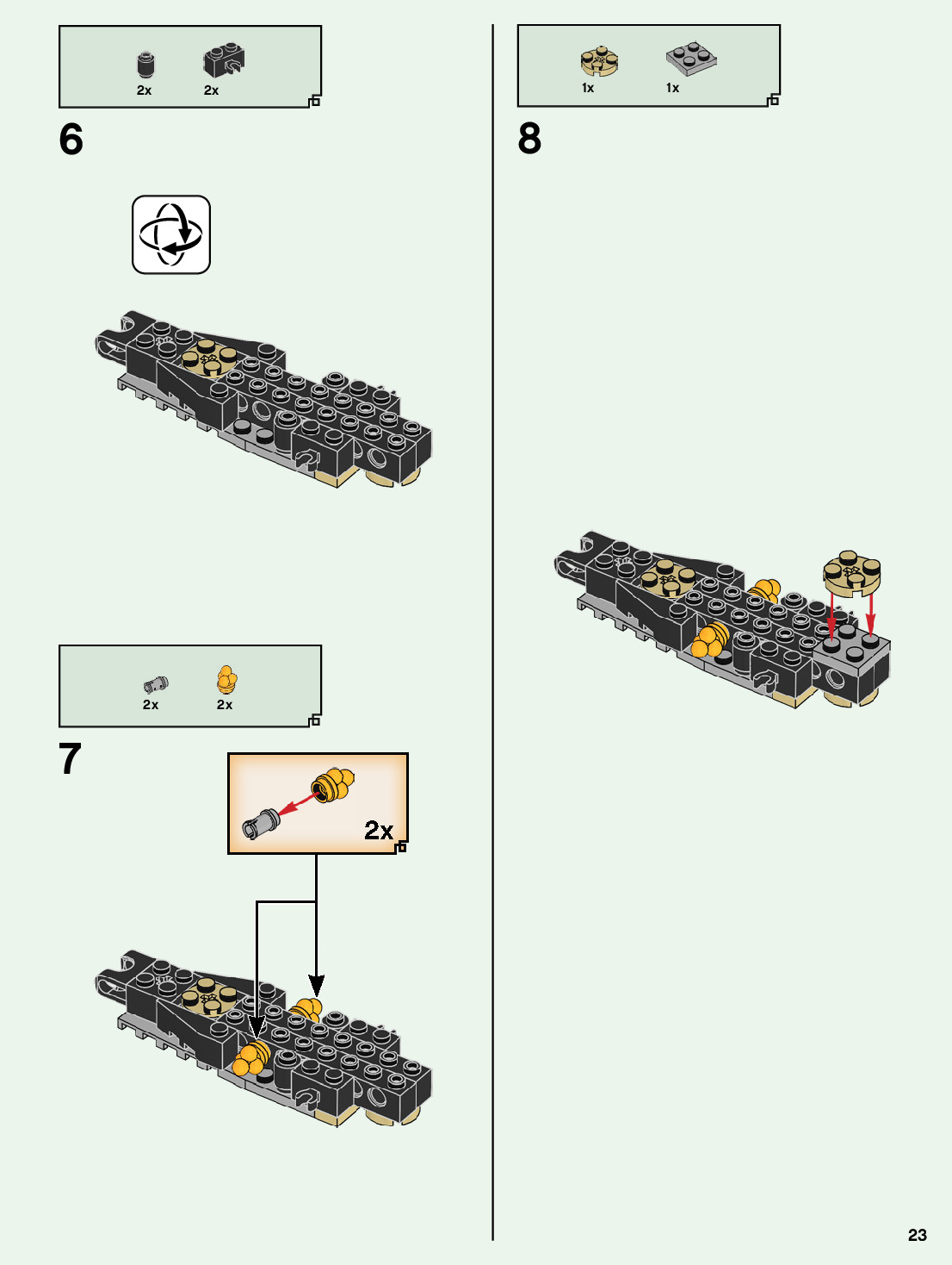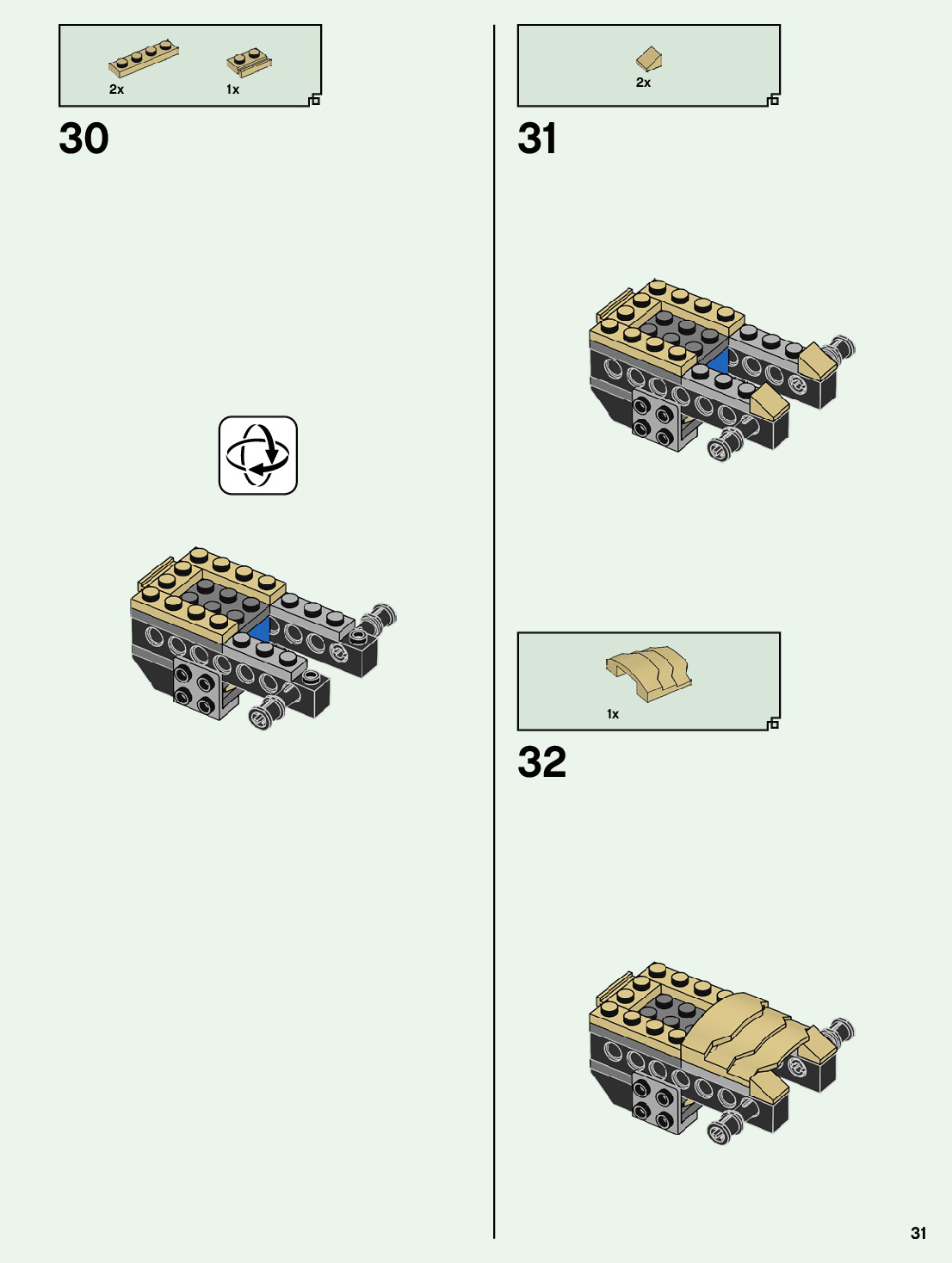 The assembly guide is prepared in a very understandable way for children and adult LEGO enthusiasts. A total of 208 picture galleries are shown, explaining the step-by-step construction stages for 2 different structures.