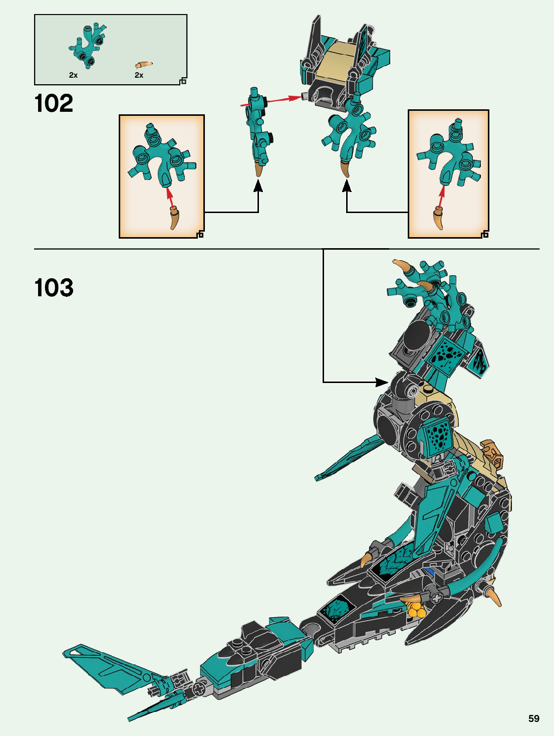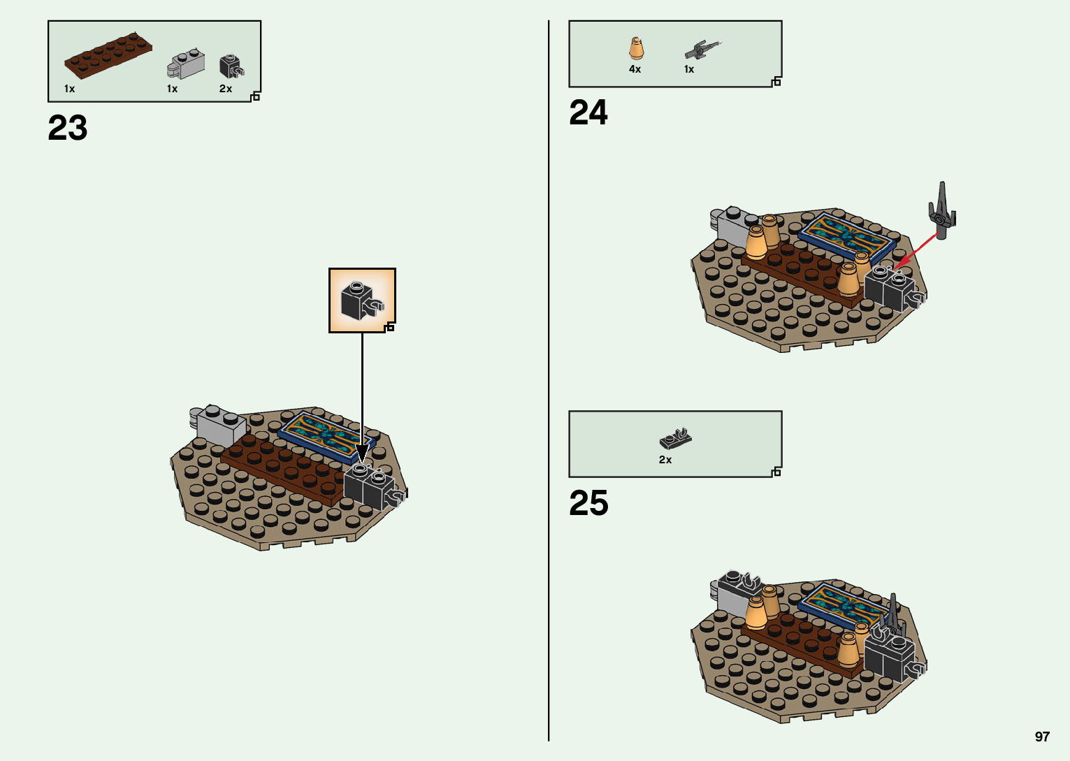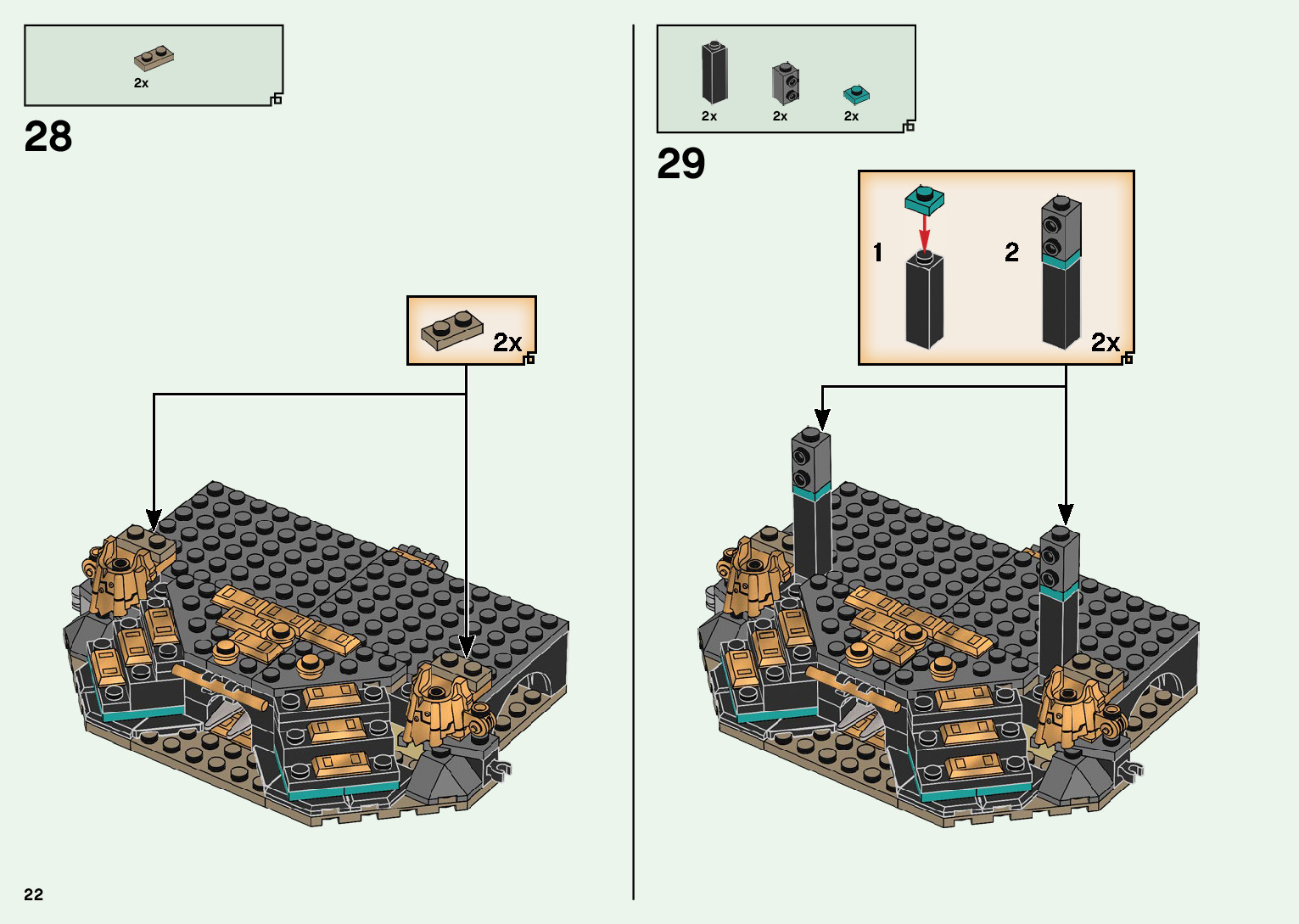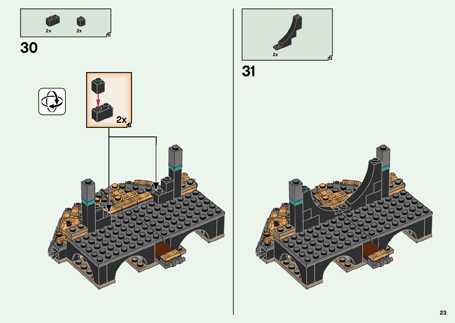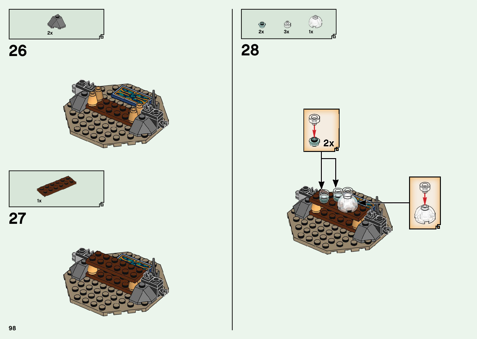 The assembly guide is prepared in a very understandable way for children and adult LEGO enthusiasts. A total of 208 picture galleries are shown, explaining the step-by-step construction stages for 2 different structures.