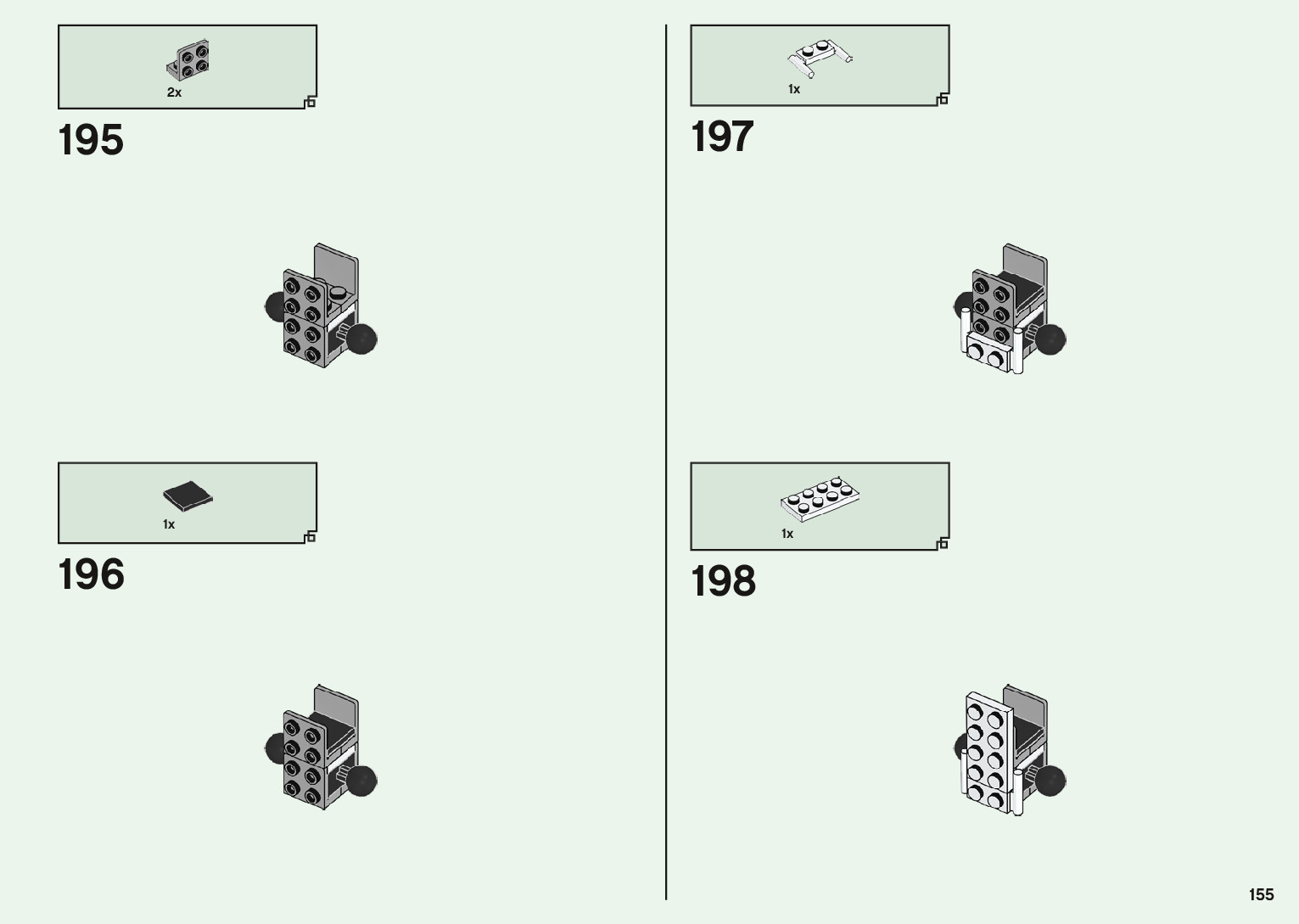 The assembly guide is prepared in a very understandable way for children and adult LEGO enthusiasts. A total of 180 picture galleries are shown, explaining the step-by-step construction stages for 1 different structures.