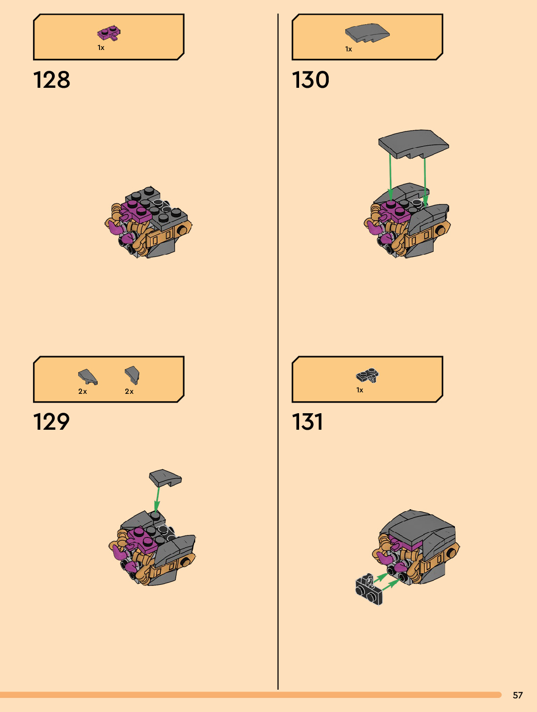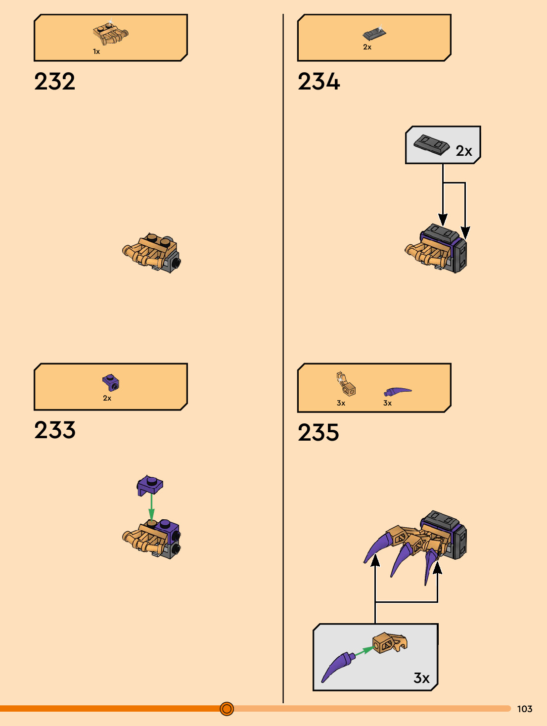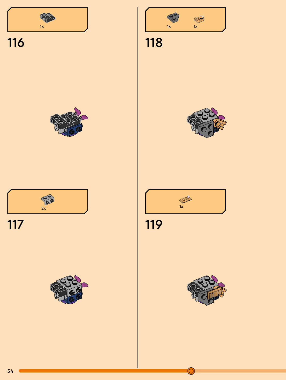 The assembly guide is prepared in a very understandable way for children and adult LEGO enthusiasts. A total of 148 picture galleries are shown, explaining the step-by-step construction stages for 1 different structures.