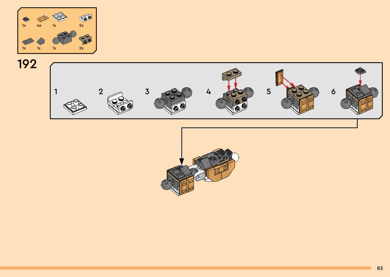 The assembly guide is prepared in a very understandable way for children and adult LEGO enthusiasts. A total of 168 picture galleries are shown, explaining the step-by-step construction stages for 1 different structures.