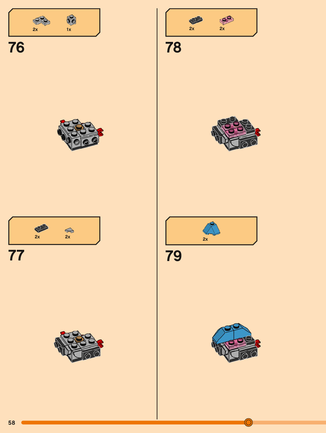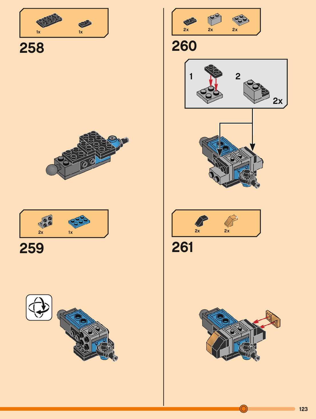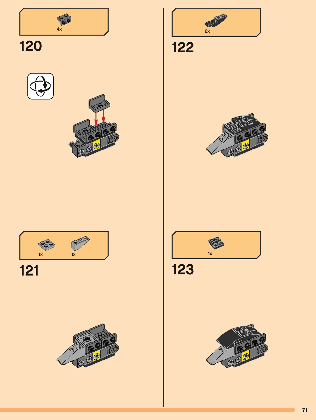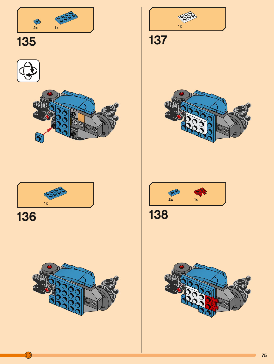 The assembly guide is prepared in a very understandable way for children and adult LEGO enthusiasts. A total of 144 picture galleries are shown, explaining the step-by-step construction stages for 1 different structures.