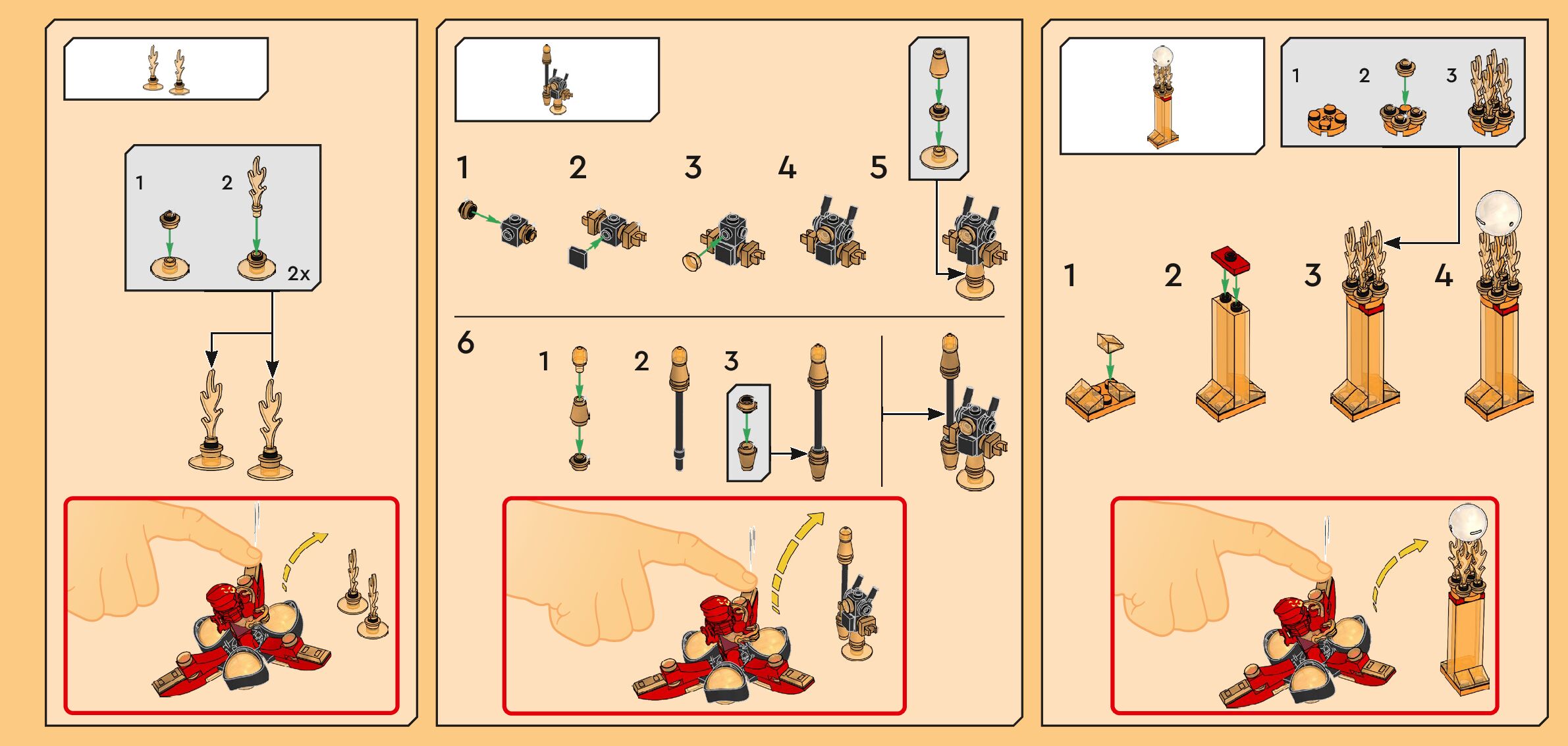 The assembly guide is prepared in a very understandable way for children and adult LEGO enthusiasts. A total of 2 picture galleries are shown, explaining the step-by-step construction stages for 1 different structures.