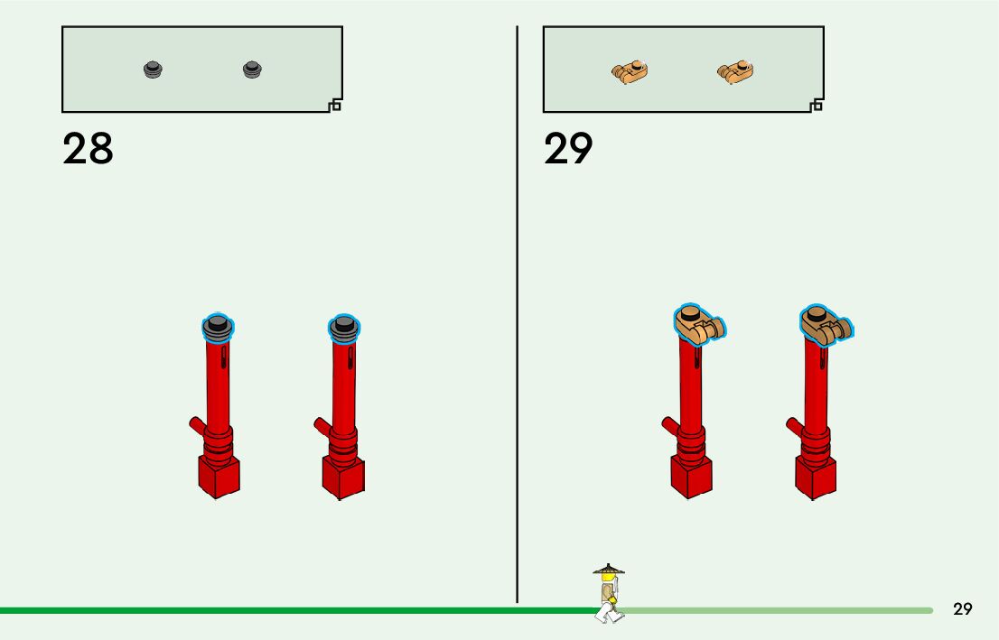 The assembly guide is prepared in a very understandable way for children and adult LEGO enthusiasts. A total of 280 picture galleries are shown, explaining the step-by-step construction stages for 7 different structures.