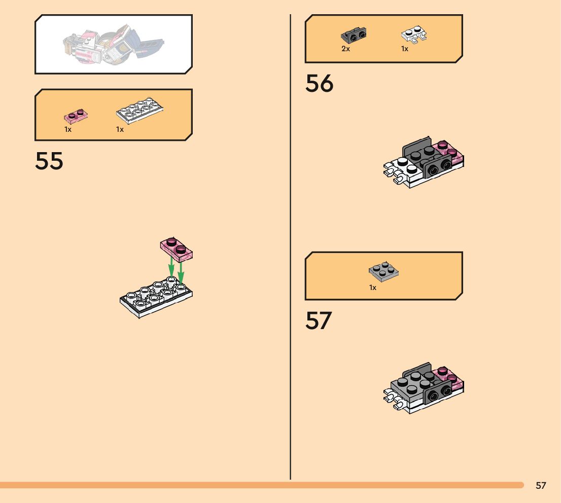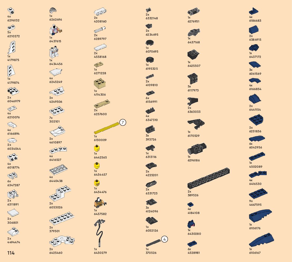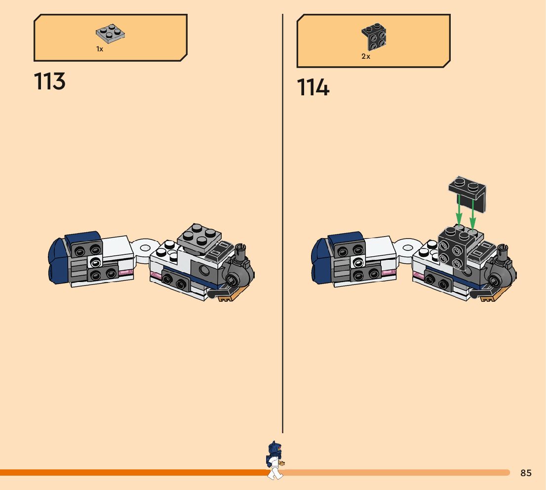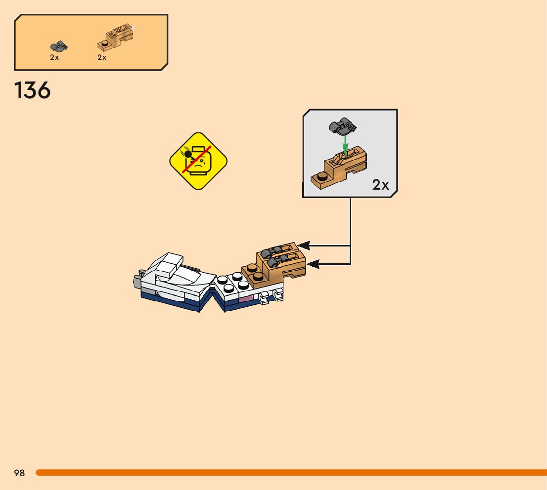 The assembly guide is prepared in a very understandable way for children and adult LEGO enthusiasts. A total of 116 picture galleries are shown, explaining the step-by-step construction stages for 1 different structures.