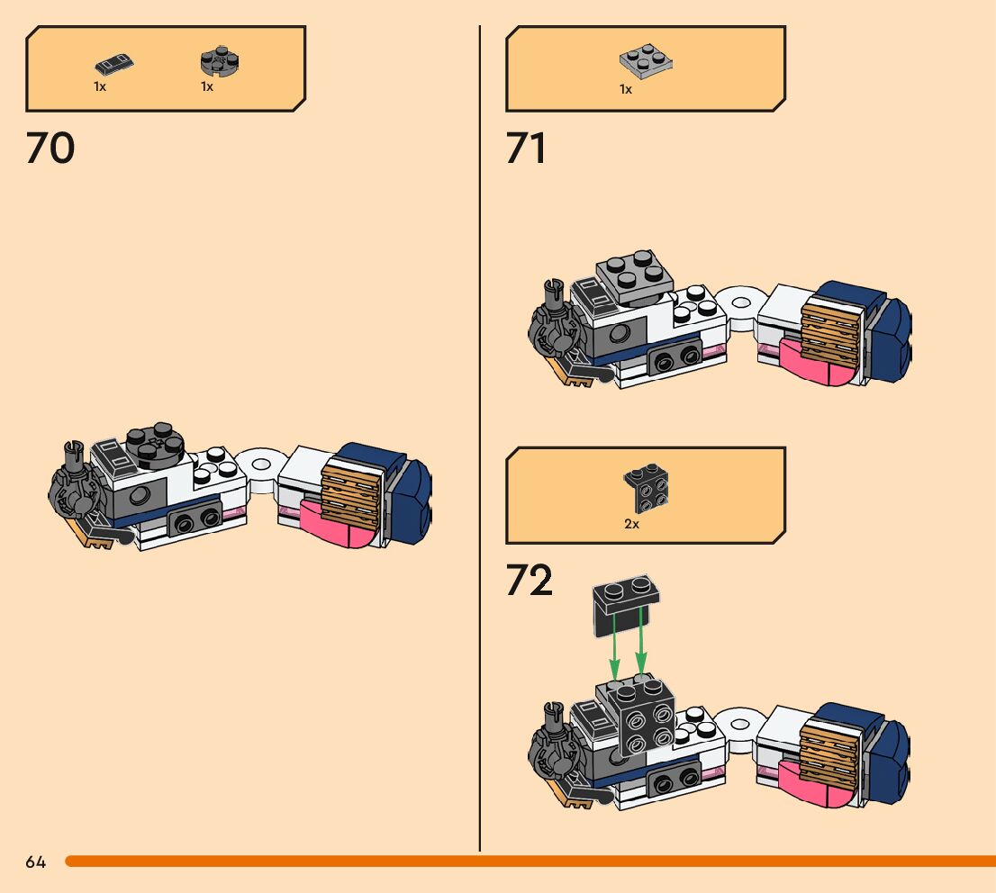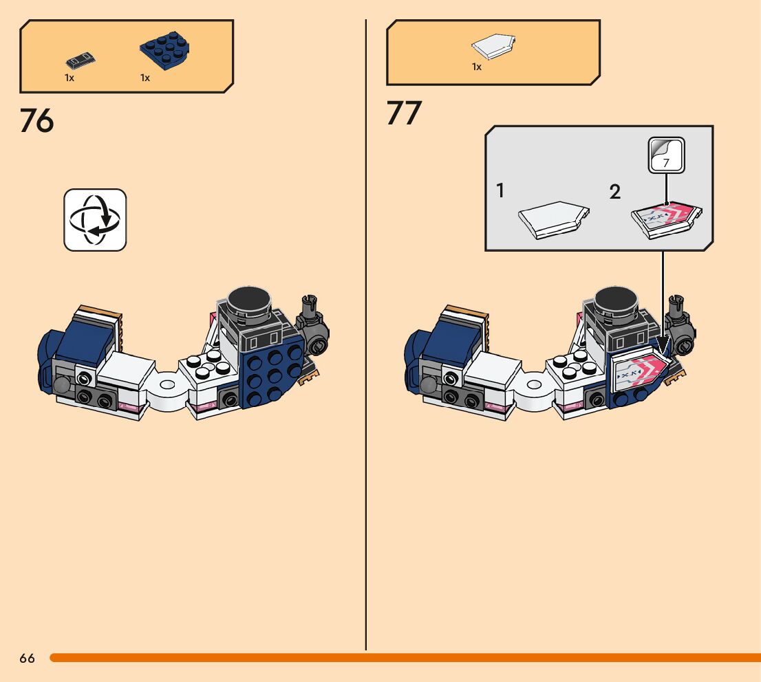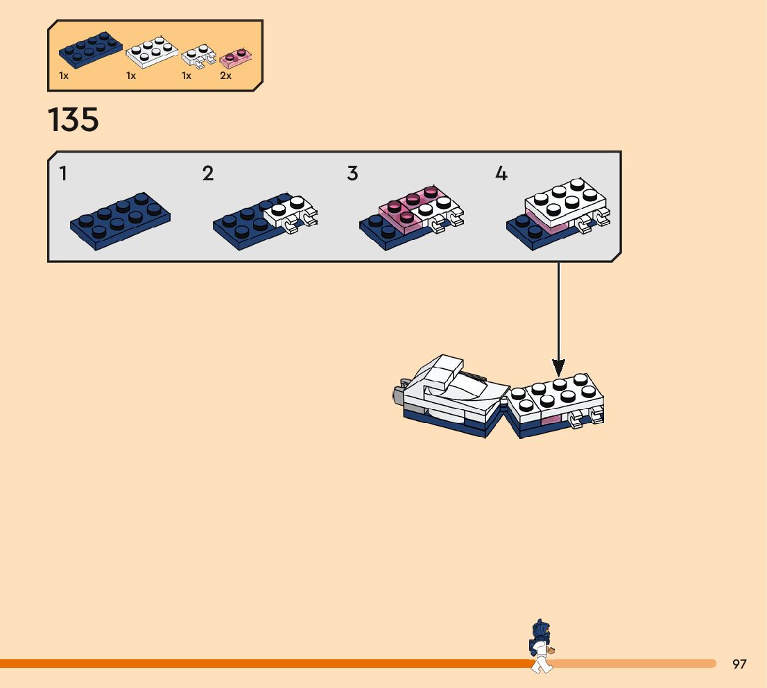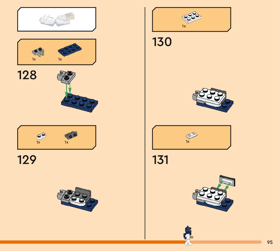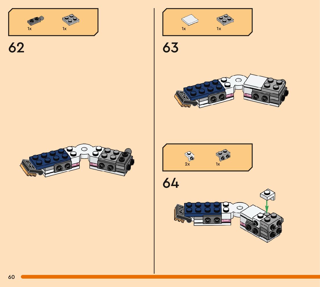 The assembly guide is prepared in a very understandable way for children and adult LEGO enthusiasts. A total of 116 picture galleries are shown, explaining the step-by-step construction stages for 1 different structures.