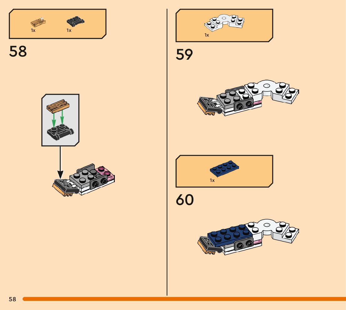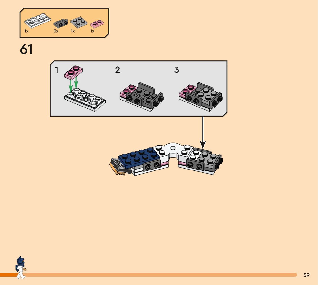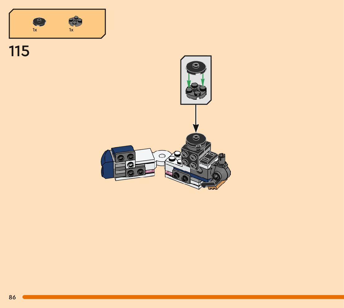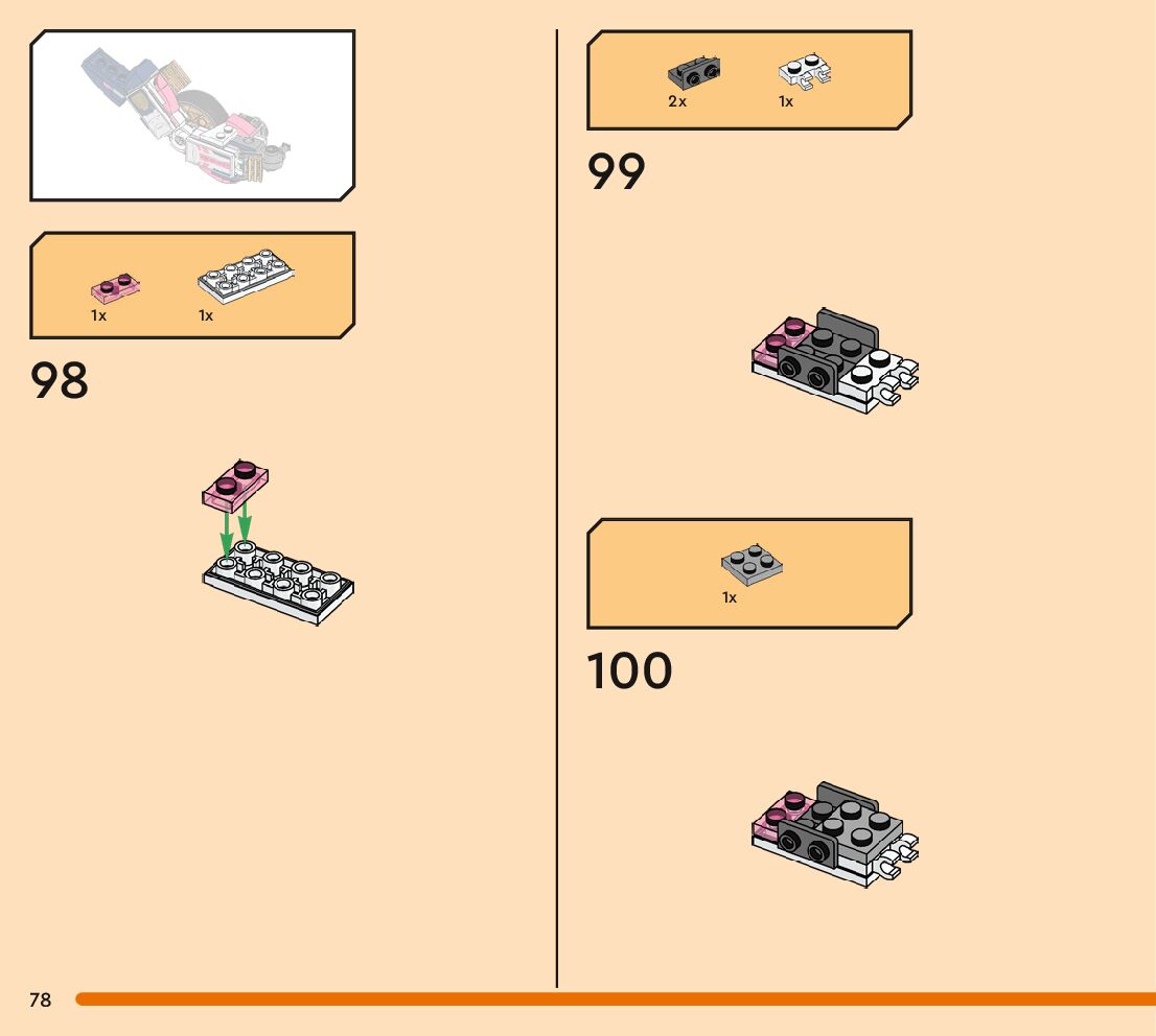 The assembly guide is prepared in a very understandable way for children and adult LEGO enthusiasts. A total of 116 picture galleries are shown, explaining the step-by-step construction stages for 1 different structures.