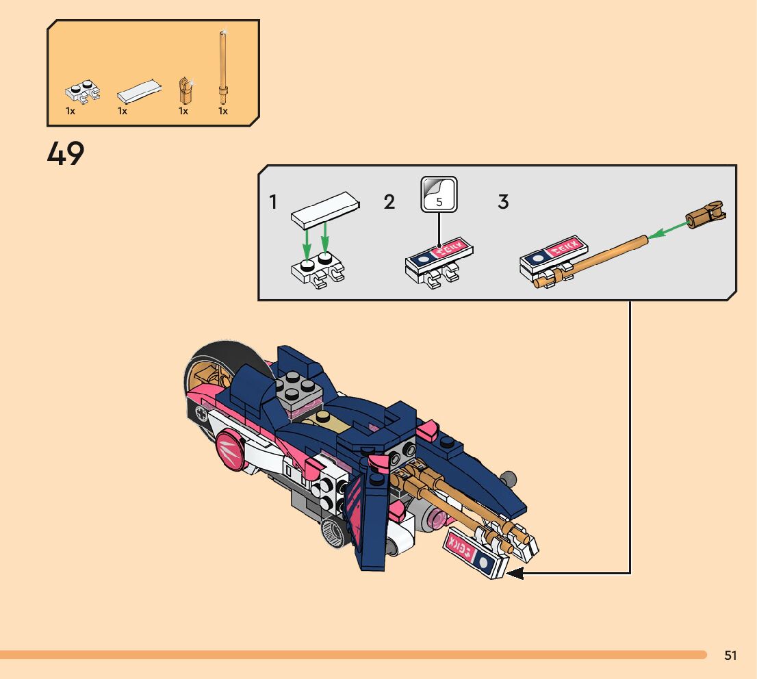 On this page you can find the original construction manual for the LEGO 71792 set. With the assembly manual you can easily learn how to build the 71792 Sora's Transforming Mech Bike Racer step by step. The set was released in 2023.