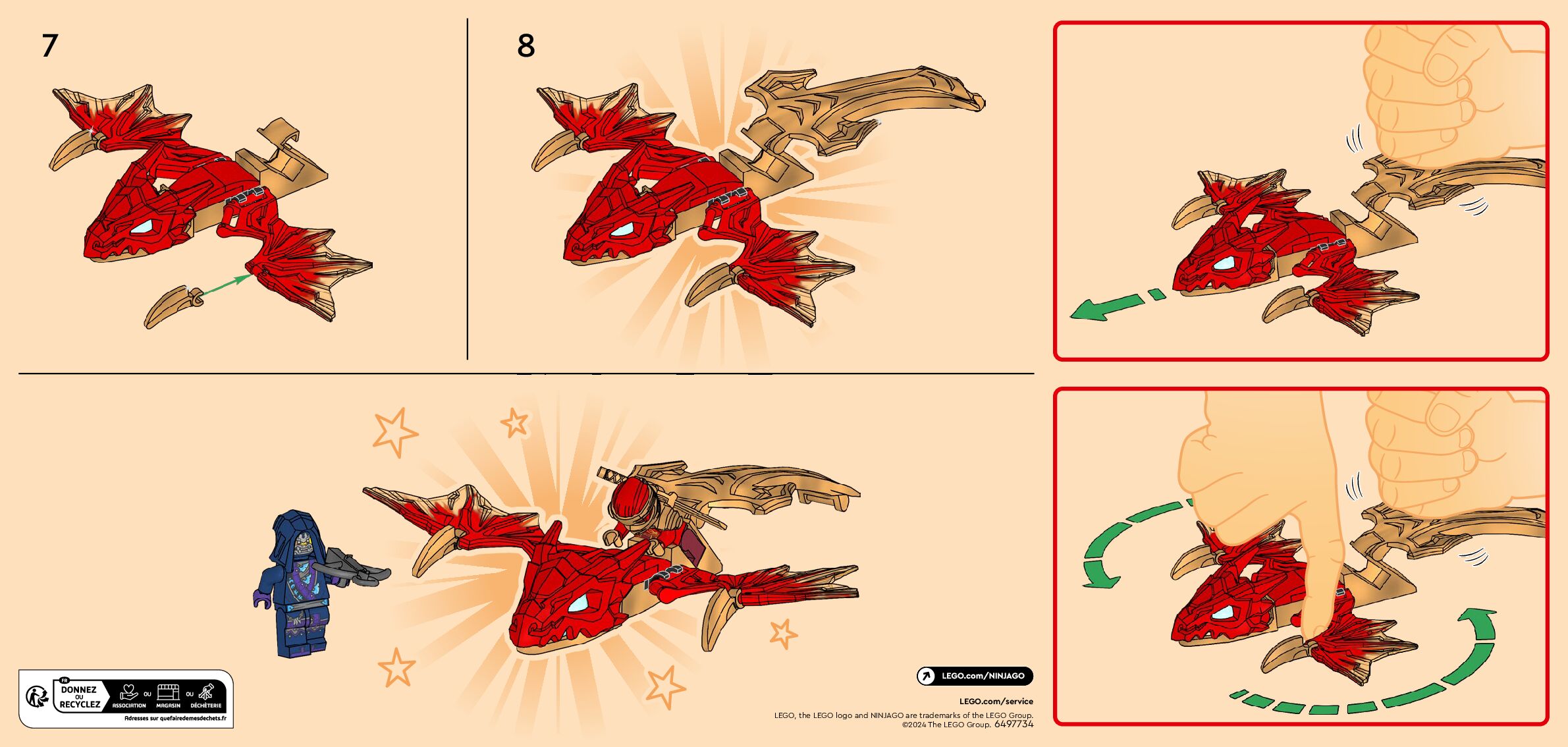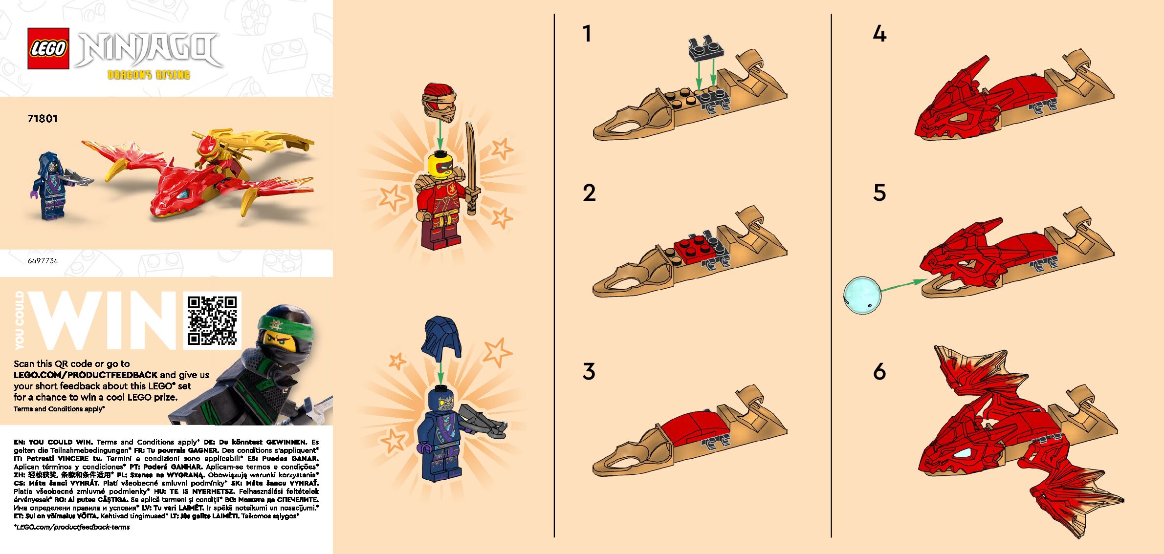 On this page you can find the original construction manual for the LEGO 71801 set. With the assembly manual you can easily learn how to build the 71801 Kai's Rising Dragon Strike step by step. The set was released in 2024.