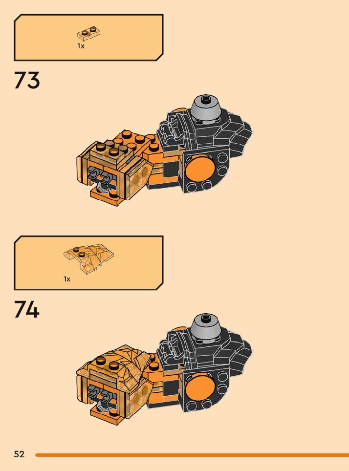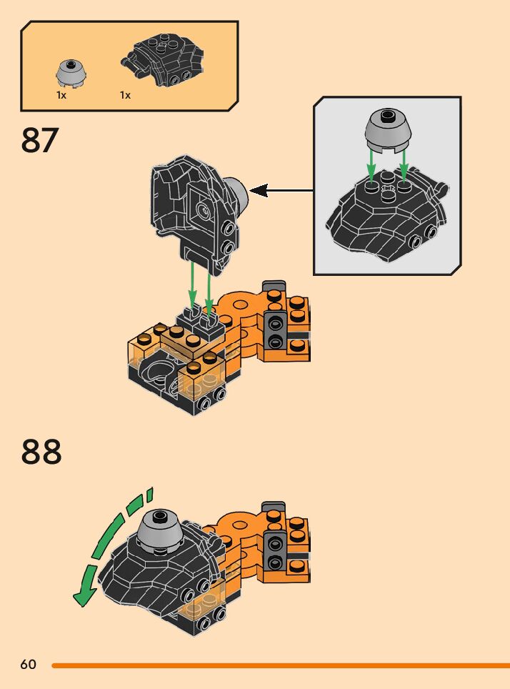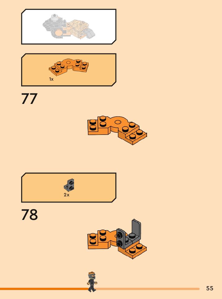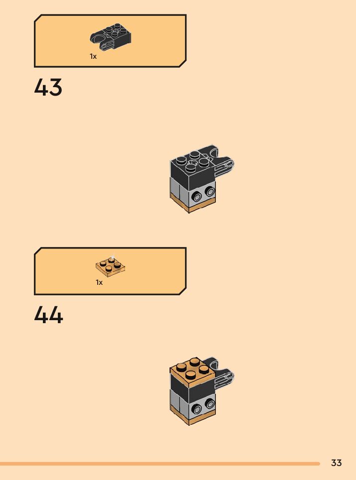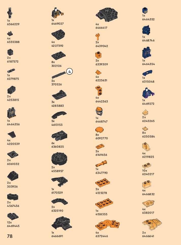 The assembly guide is prepared in a very understandable way for children and adult LEGO enthusiasts. A total of 80 picture galleries are shown, explaining the step-by-step construction stages for 1 different structures.
