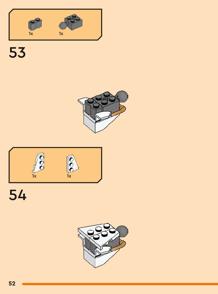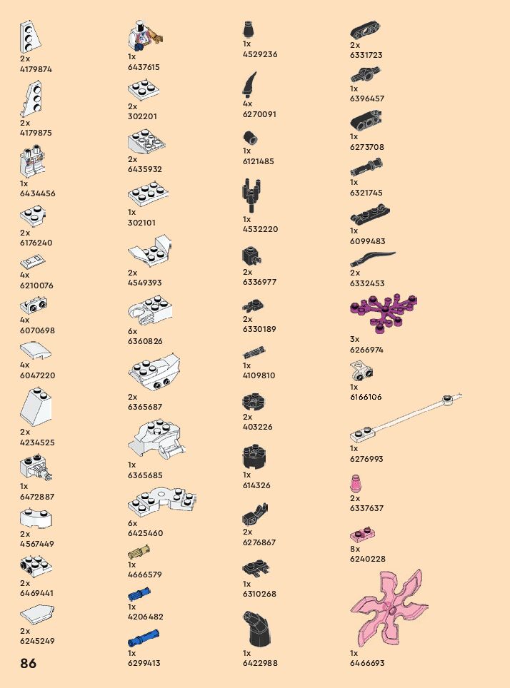 The assembly guide is prepared in a very understandable way for children and adult LEGO enthusiasts. A total of 88 picture galleries are shown, explaining the step-by-step construction stages for 1 different structures.