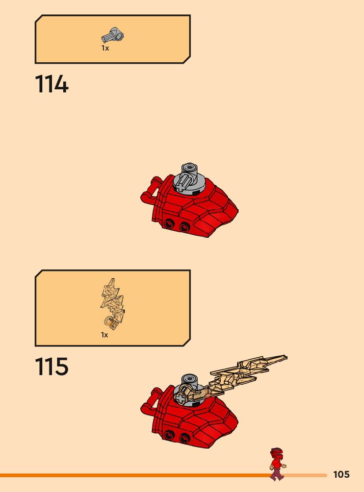 On this page you can find the original construction manual for the LEGO 71808 set. With the assembly manual you can easily learn how to build the 71808 Kai's Elemental Fire Mech step by step. The set was released in 2024.