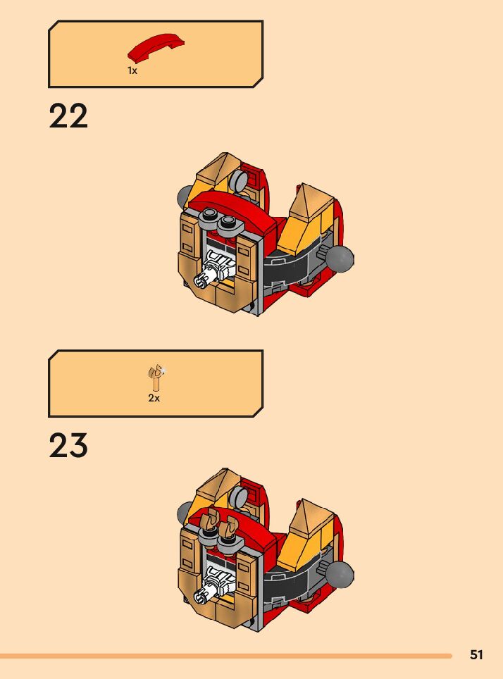 The assembly guide is prepared in a very understandable way for children and adult LEGO enthusiasts. A total of 120 picture galleries are shown, explaining the step-by-step construction stages for 1 different structures.