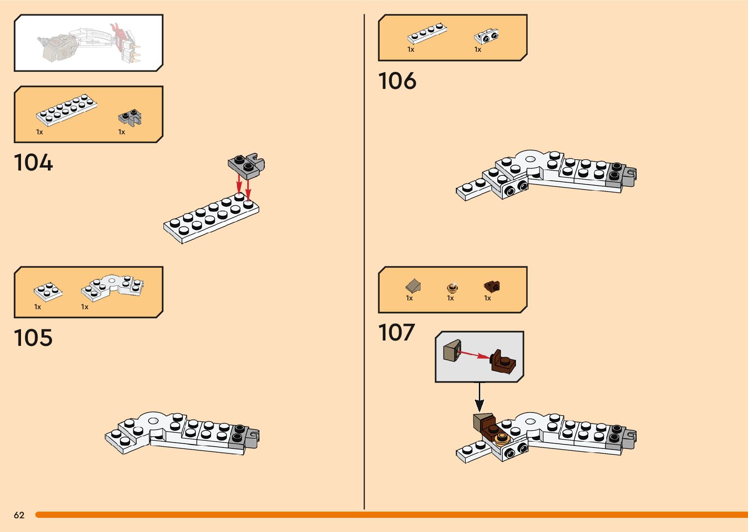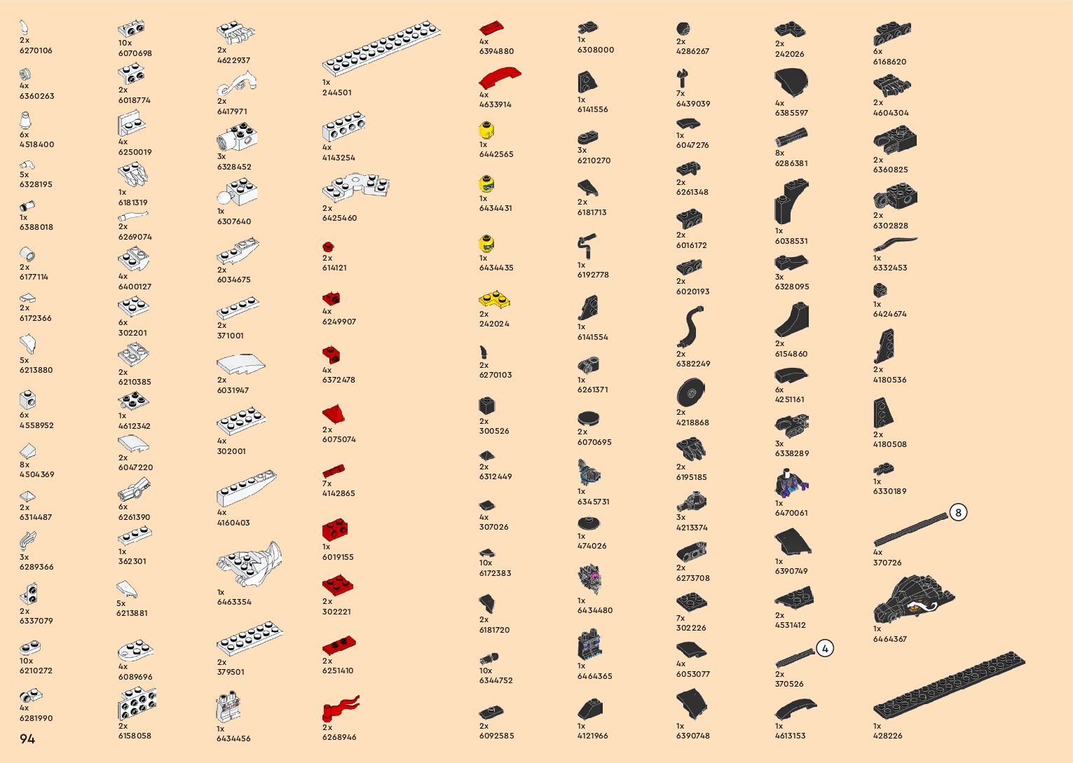 The assembly guide is prepared in a very understandable way for children and adult LEGO enthusiasts. A total of 96 picture galleries are shown, explaining the step-by-step construction stages for 1 different structures.