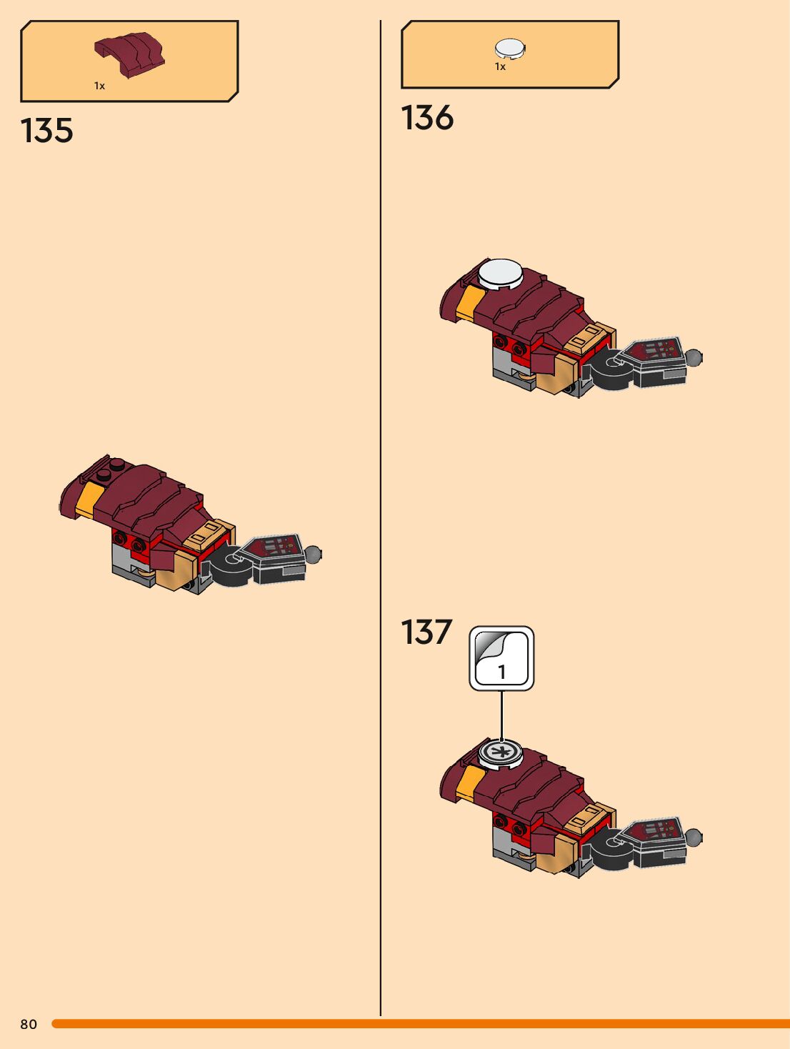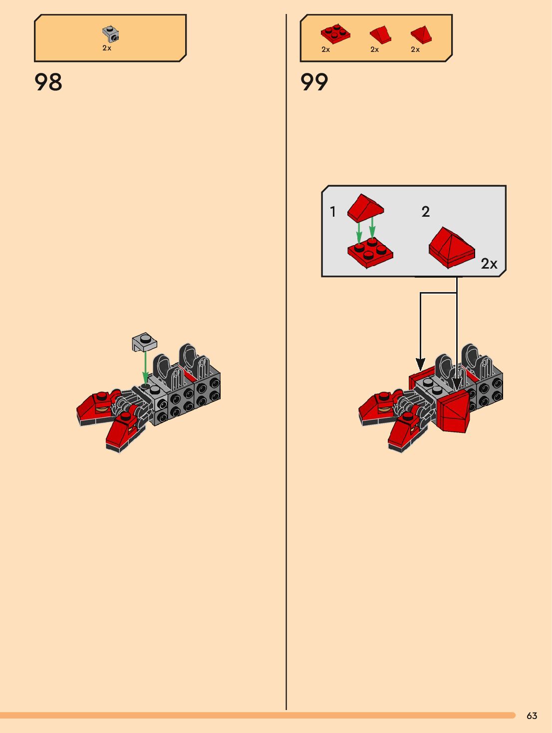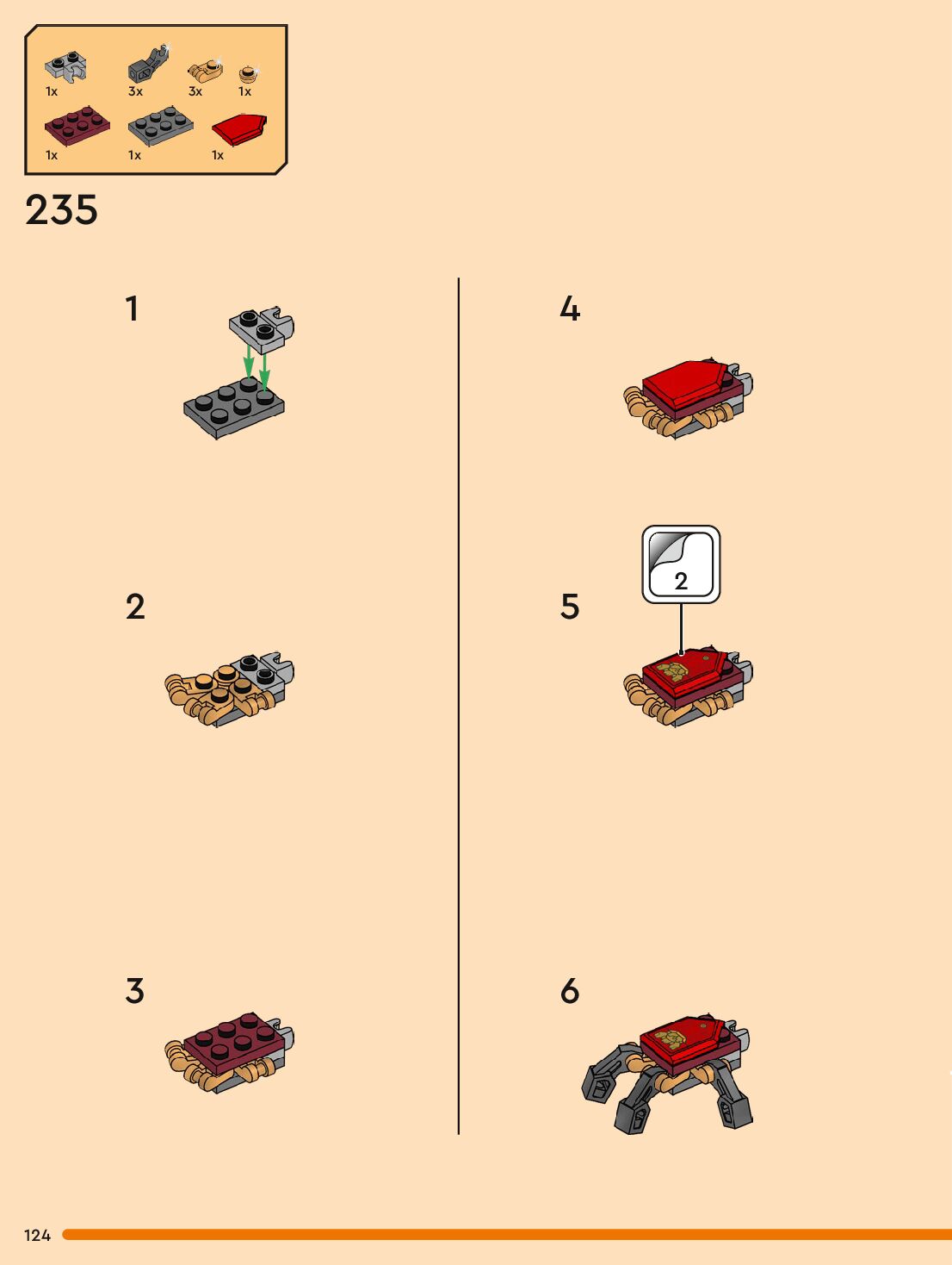 The assembly guide is prepared in a very understandable way for children and adult LEGO enthusiasts. A total of 132 picture galleries are shown, explaining the step-by-step construction stages for 1 different structures.