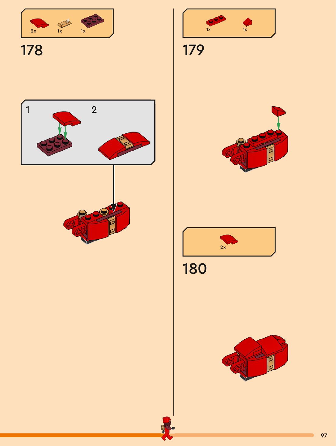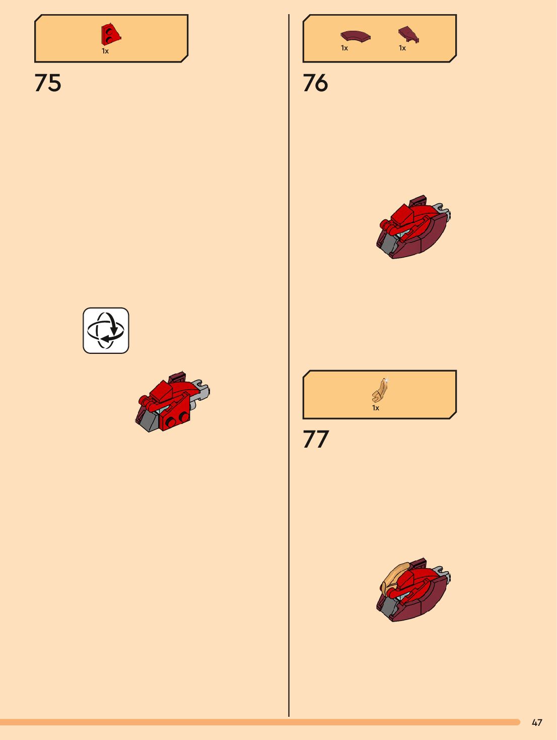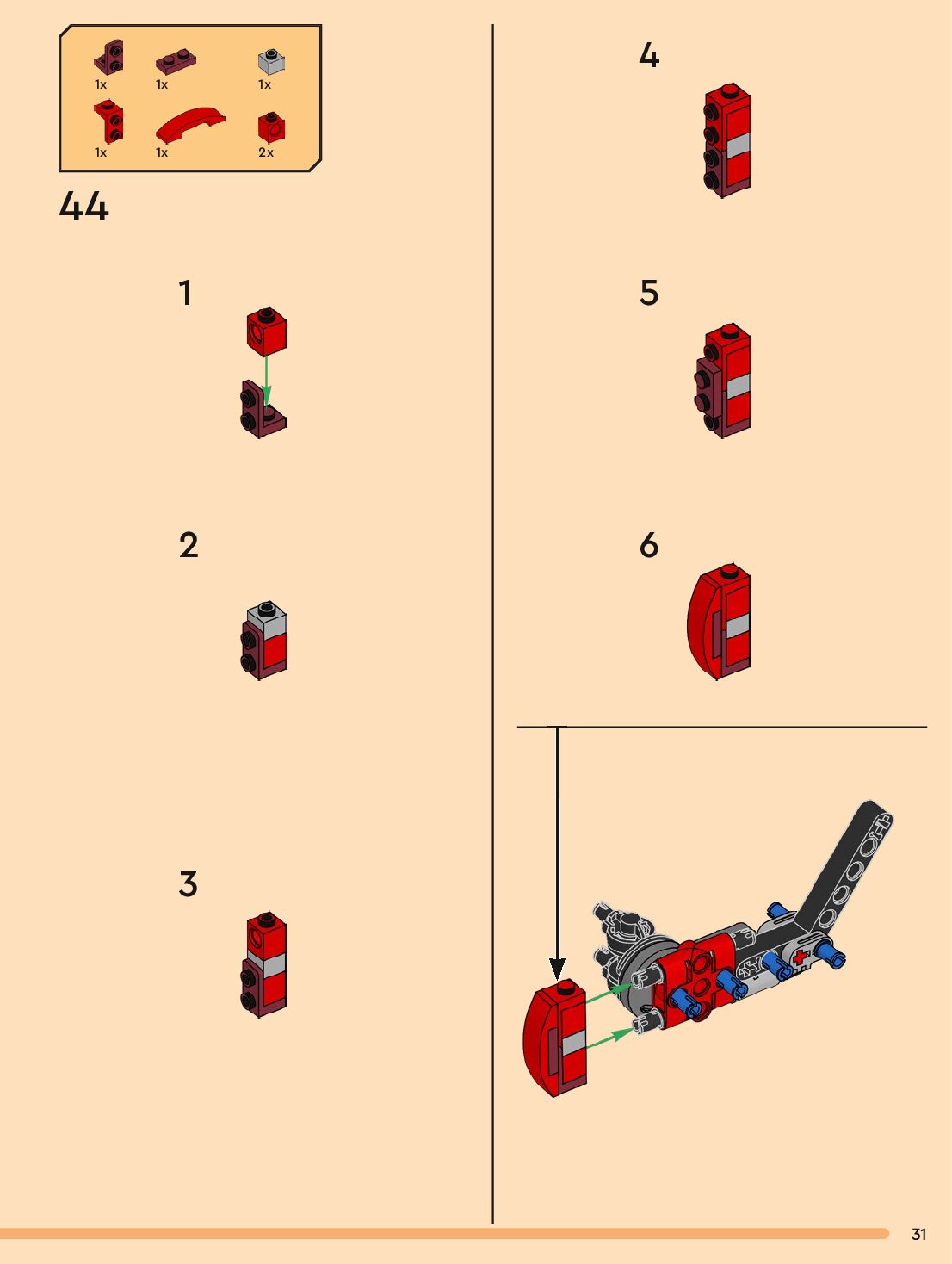 The assembly guide is prepared in a very understandable way for children and adult LEGO enthusiasts. A total of 132 picture galleries are shown, explaining the step-by-step construction stages for 1 different structures.