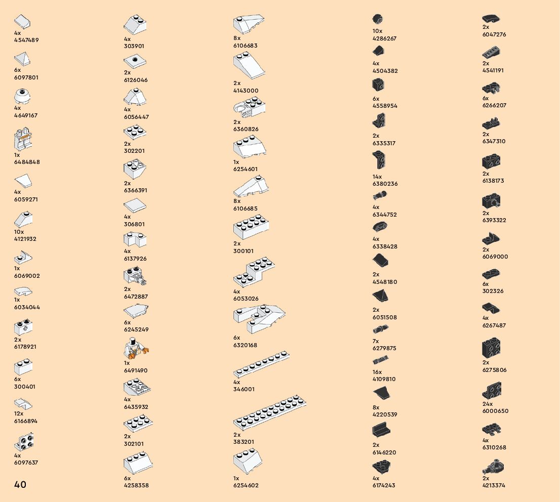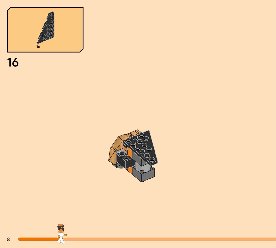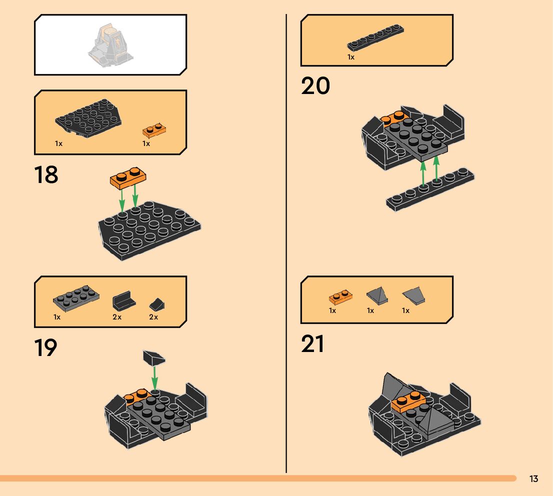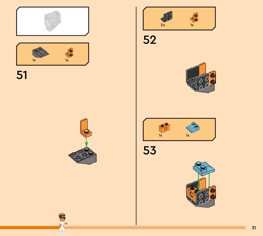 The assembly guide is prepared in a very understandable way for children and adult LEGO enthusiasts. A total of 216 picture galleries are shown, explaining the step-by-step construction stages for 4 different structures.