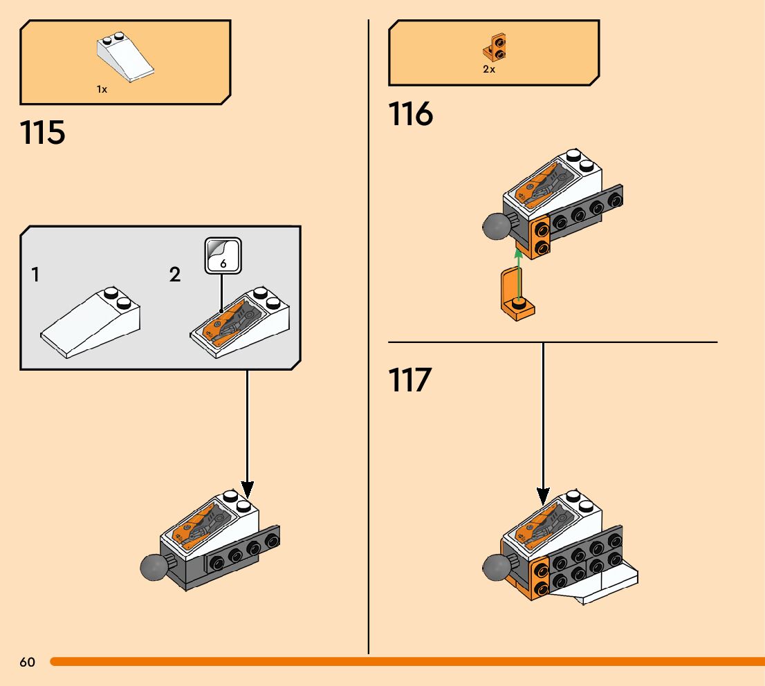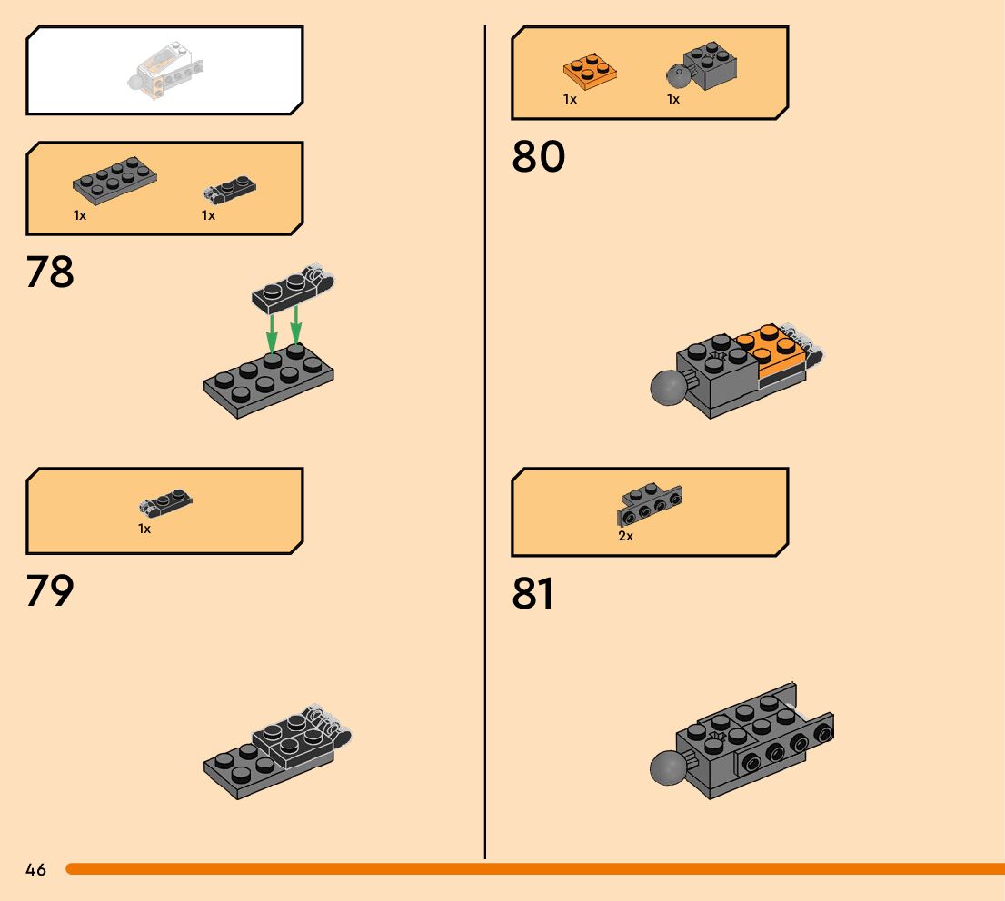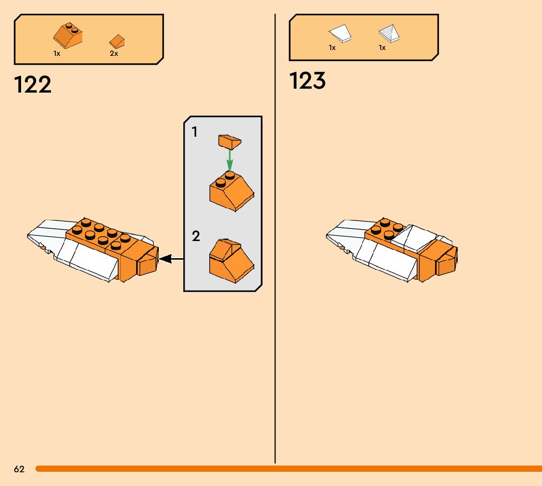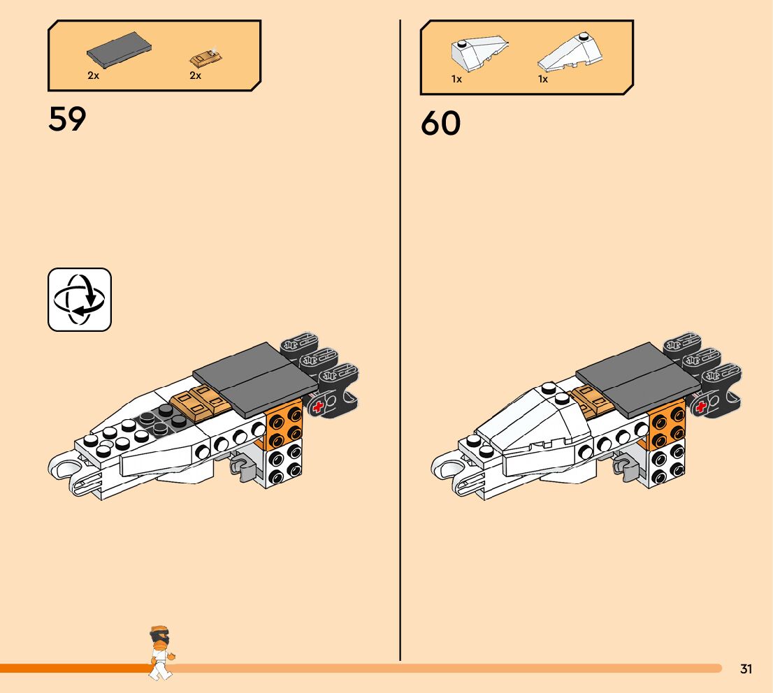 The assembly guide is prepared in a very understandable way for children and adult LEGO enthusiasts. A total of 216 picture galleries are shown, explaining the step-by-step construction stages for 4 different structures.