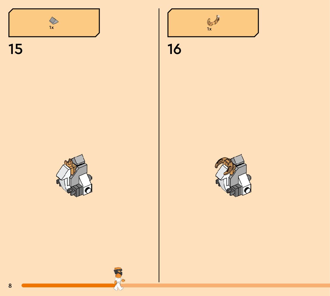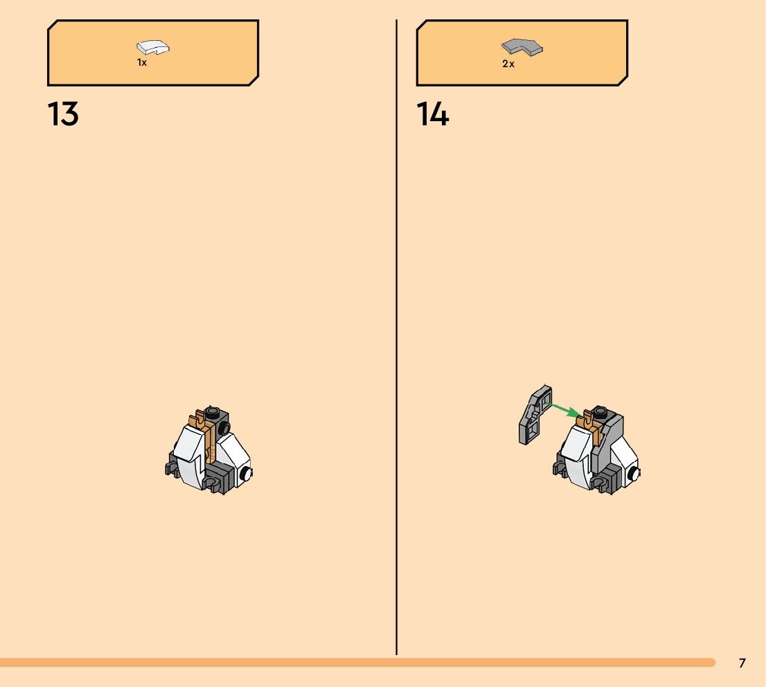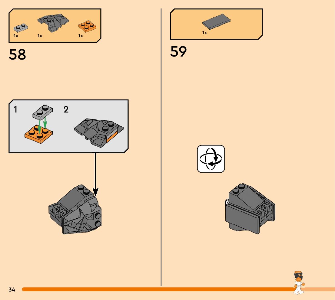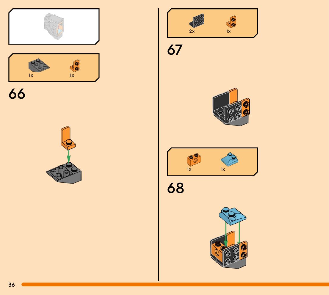 The assembly guide is prepared in a very understandable way for children and adult LEGO enthusiasts. A total of 216 picture galleries are shown, explaining the step-by-step construction stages for 4 different structures.