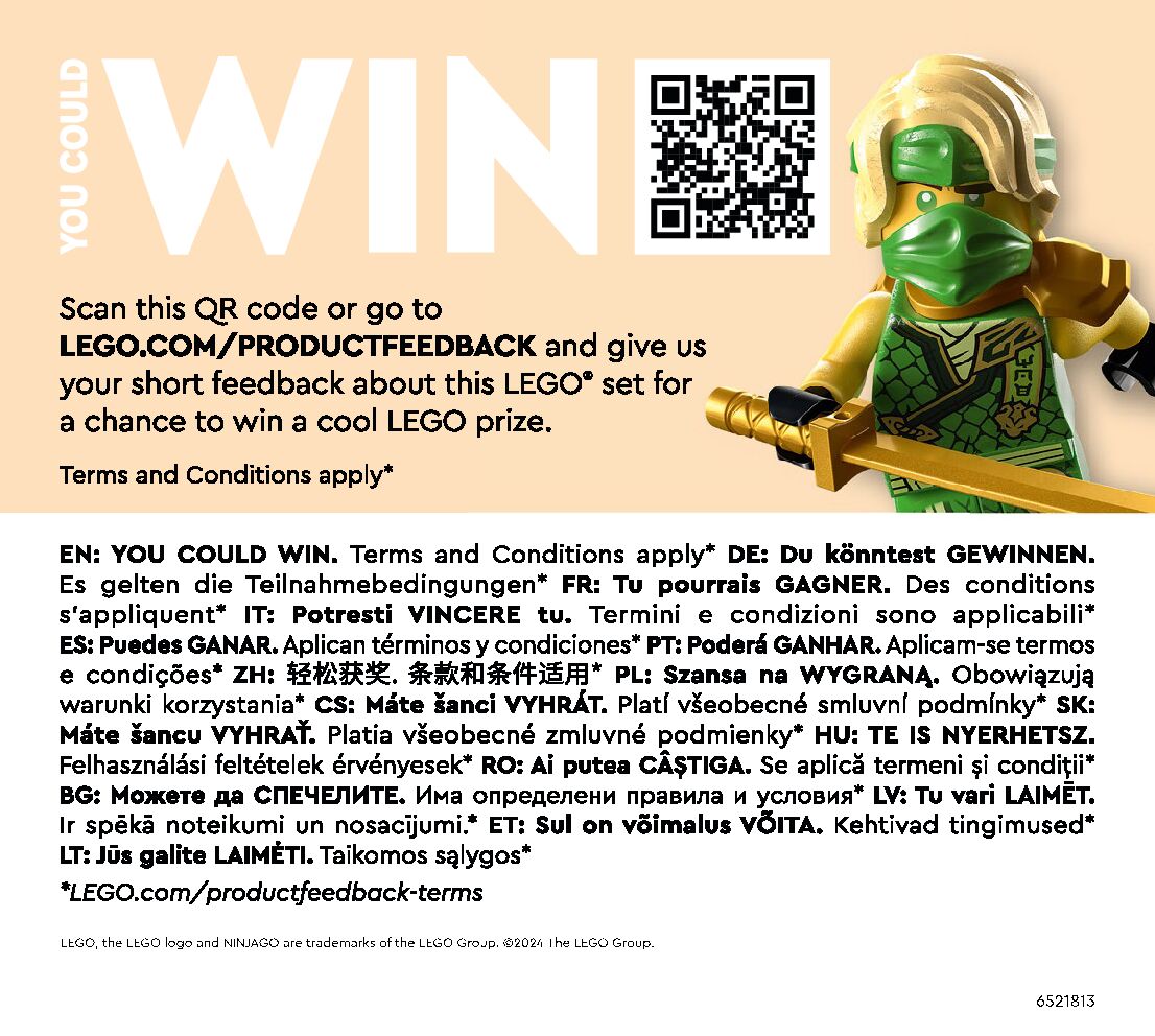 On this page you can find the original construction manual for the LEGO 71821 set. With the assembly manual you can easily learn how to build the 71821 Cole's Titan Dragon Mech step by step. The set was released in 2024.