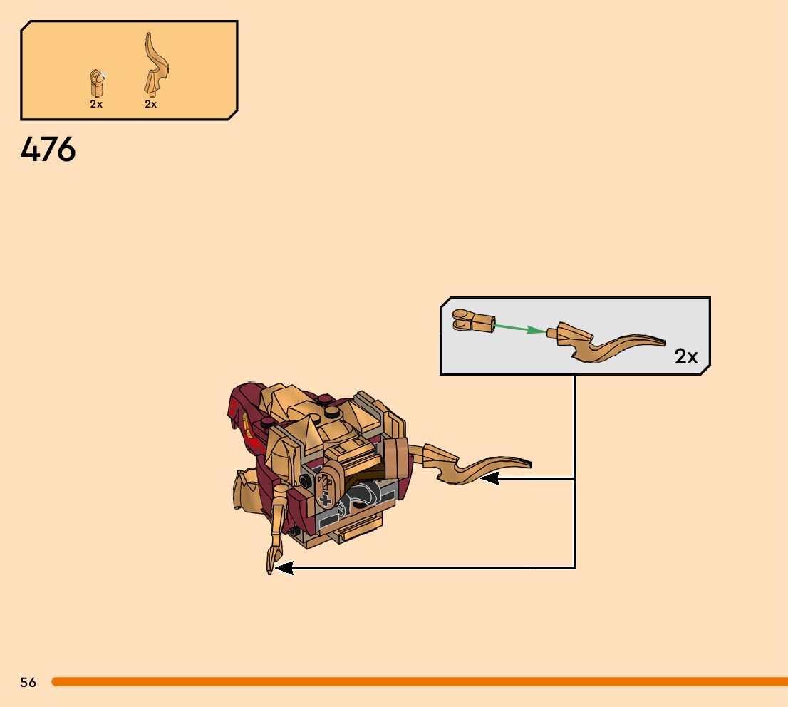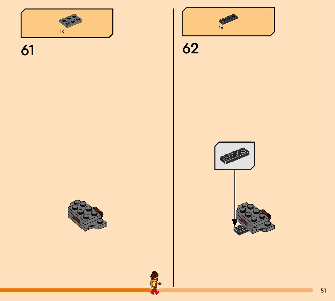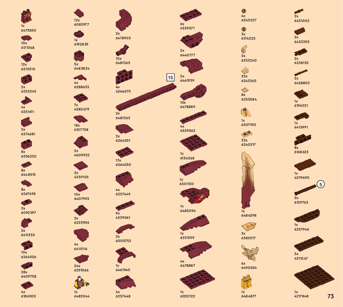 The assembly guide is prepared in a very understandable way for children and adult LEGO enthusiasts. A total of 476 picture galleries are shown, explaining the step-by-step construction stages for 5 different structures.