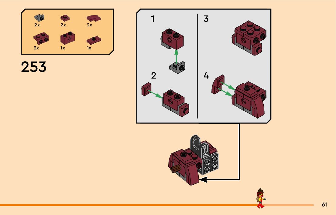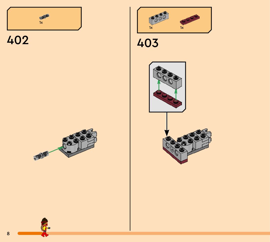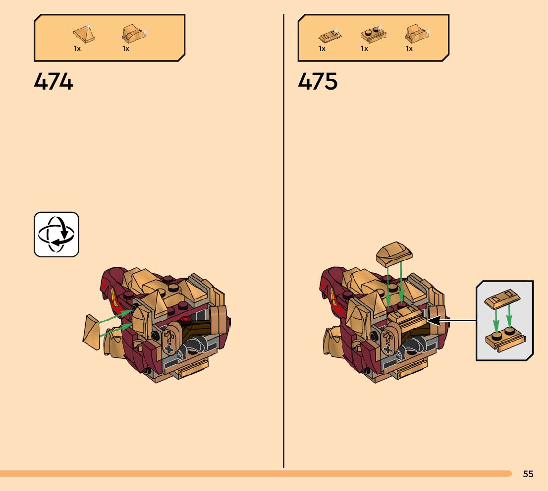 The assembly guide is prepared in a very understandable way for children and adult LEGO enthusiasts. A total of 476 picture galleries are shown, explaining the step-by-step construction stages for 5 different structures.
