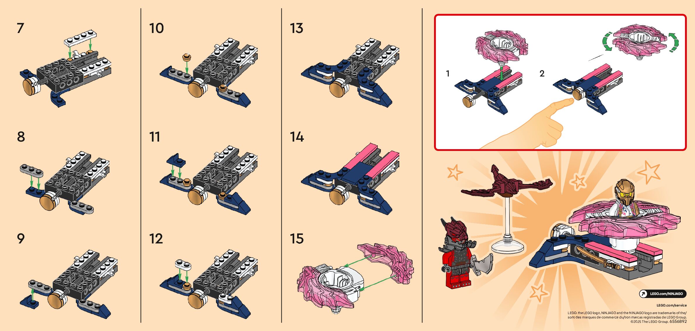 On this page you can find the original construction manual for the LEGO 71824 set. With the assembly manual you can easily learn how to build the Sora's Dragon Spinjitzu Spinner step by step. The set was released in 2025.