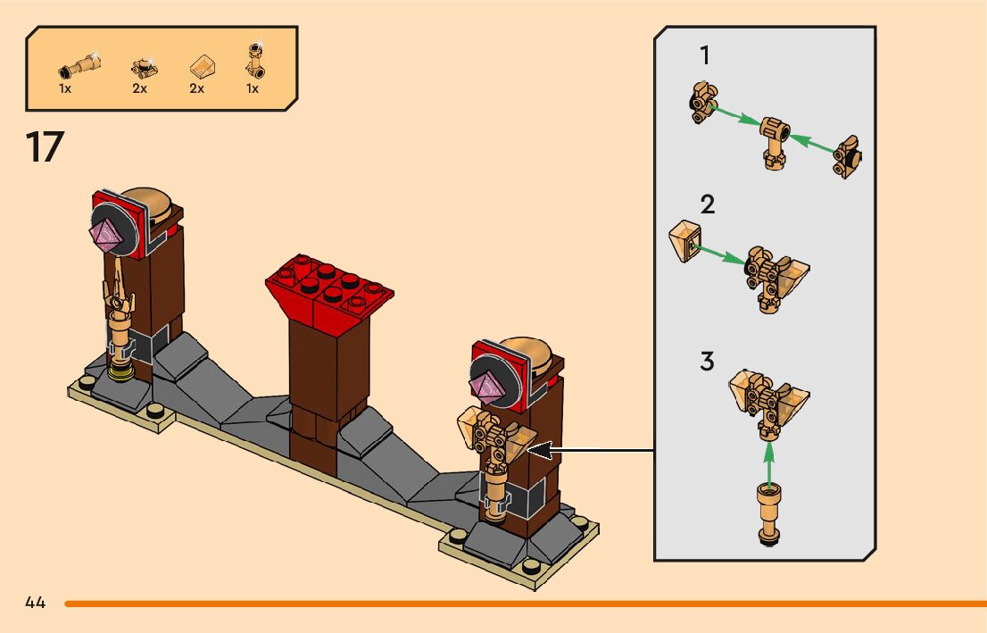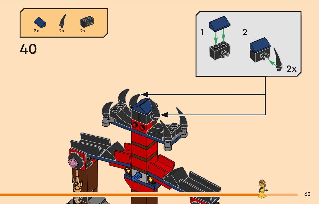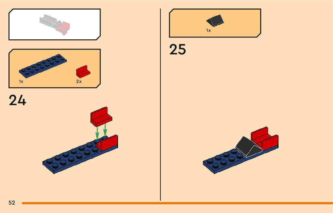 The assembly guide is prepared in a very understandable way for children and adult LEGO enthusiasts. A total of 72 picture galleries are shown, explaining the step-by-step construction stages for 1 different structures.