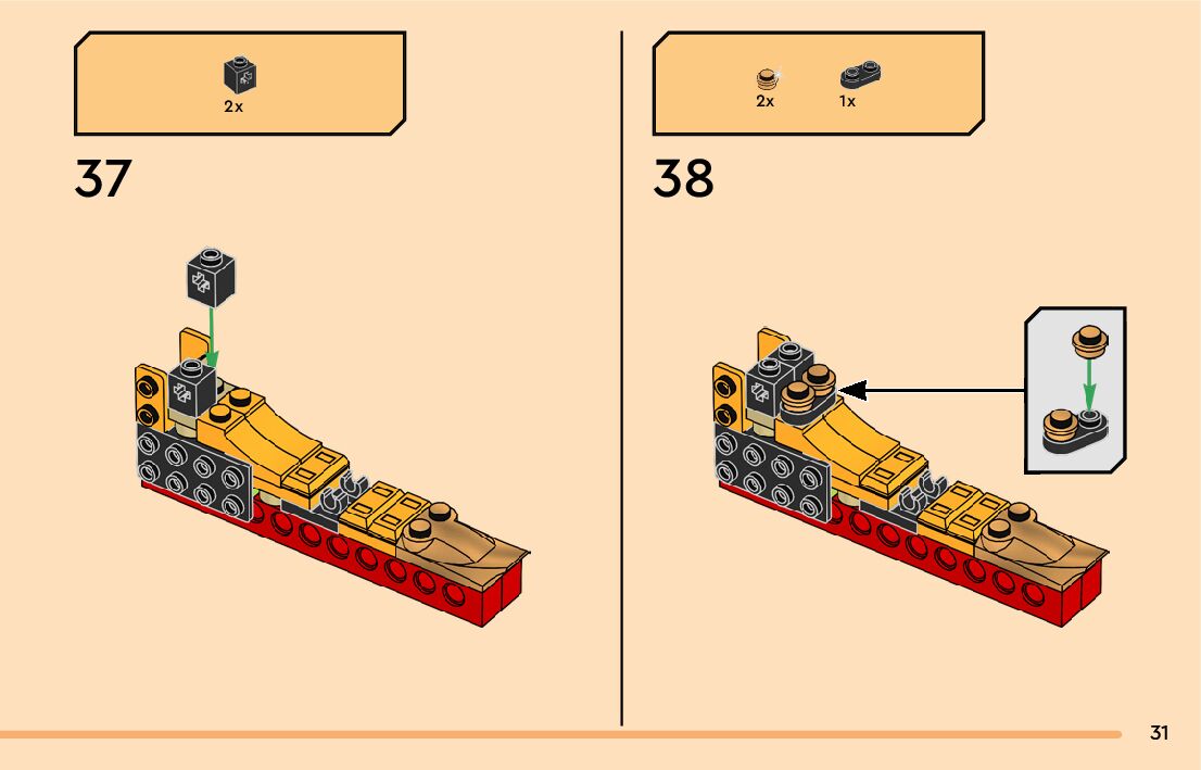 The assembly guide is prepared in a very understandable way for children and adult LEGO enthusiasts. A total of 136 picture galleries are shown, explaining the step-by-step construction stages for 2 different structures.