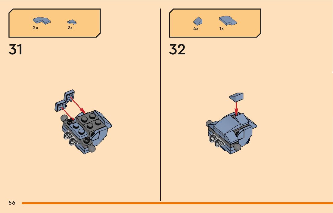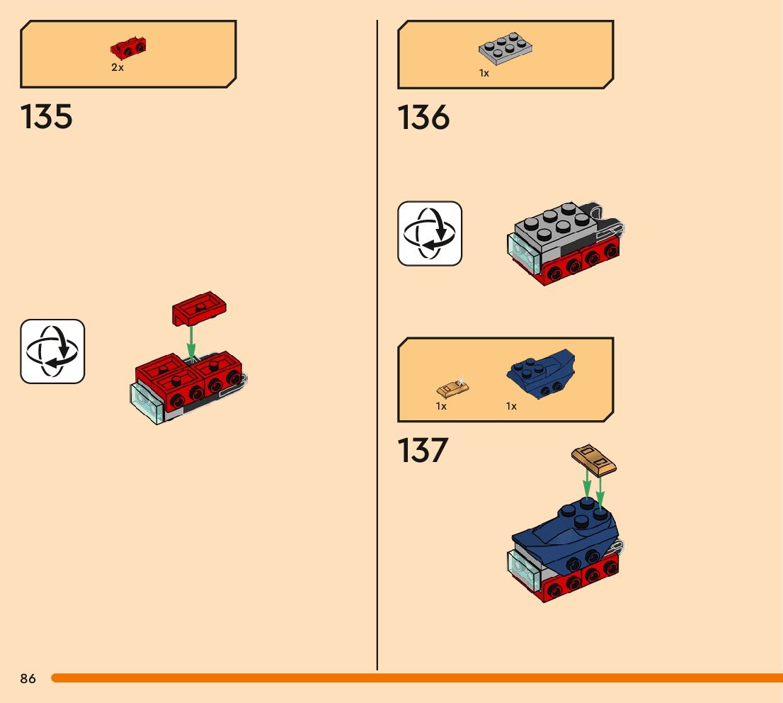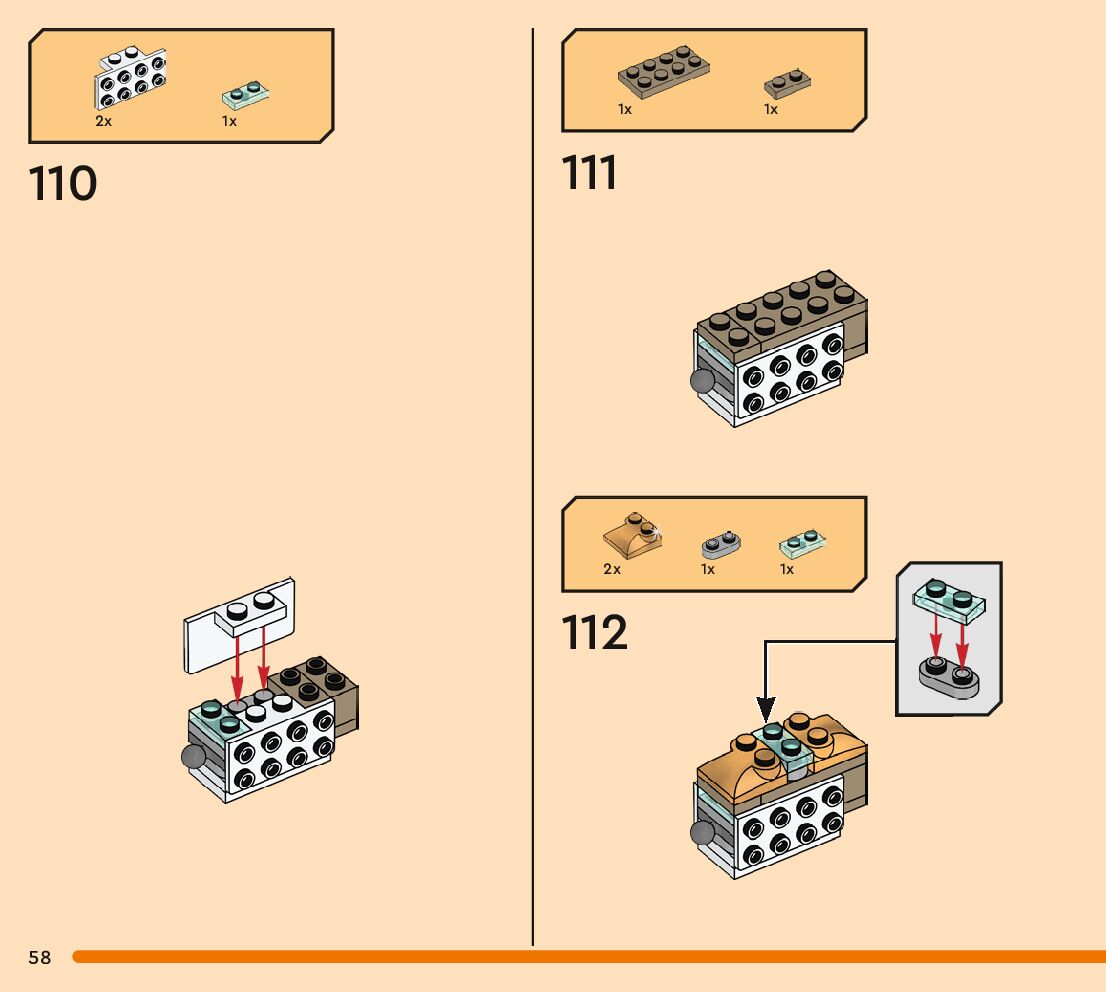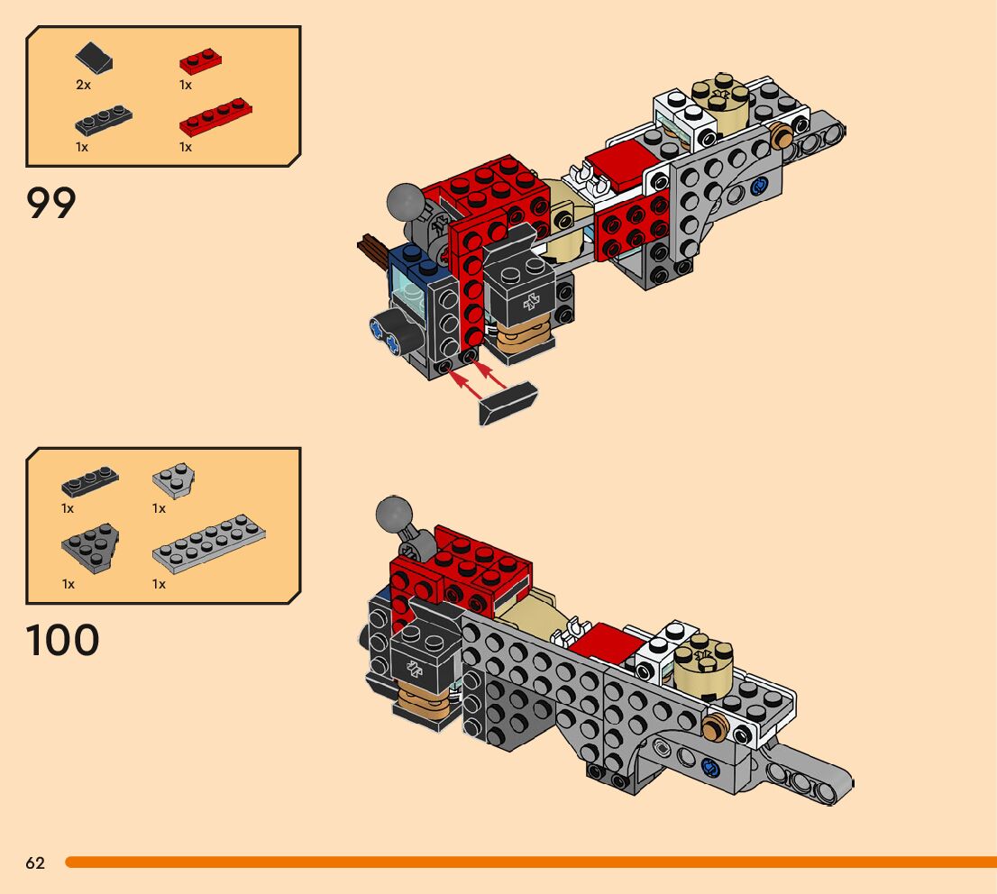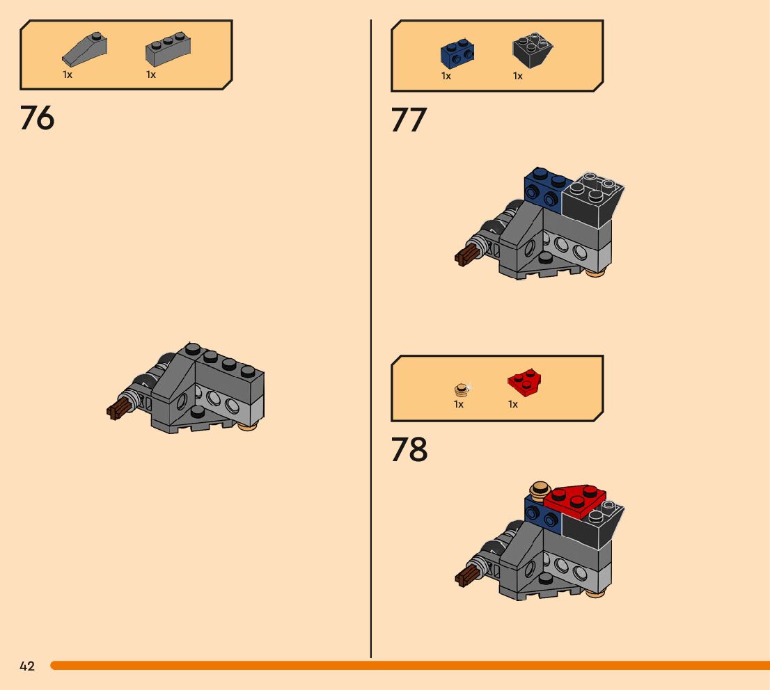 The assembly guide is prepared in a very understandable way for children and adult LEGO enthusiasts. A total of 256 picture galleries are shown, explaining the step-by-step construction stages for 3 different structures.