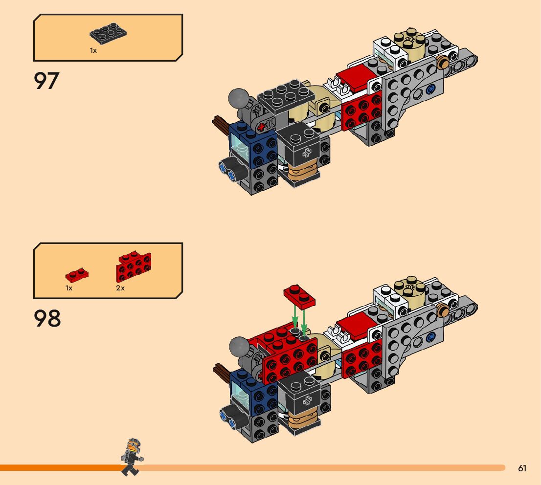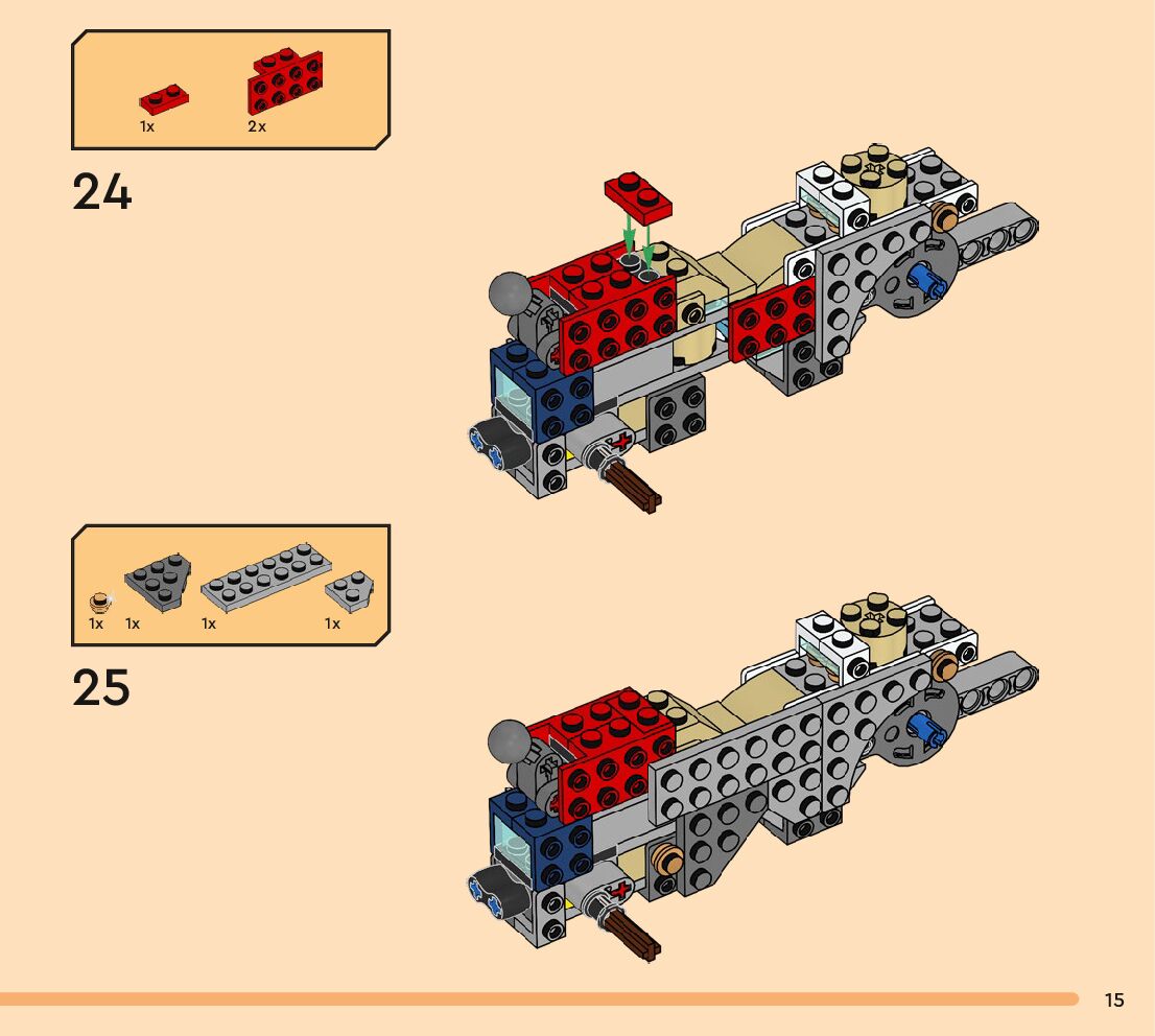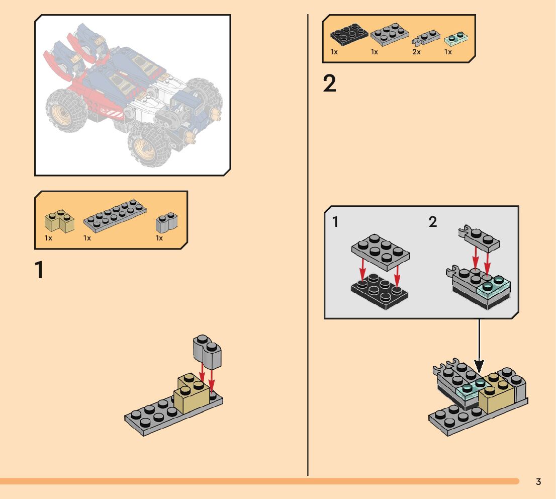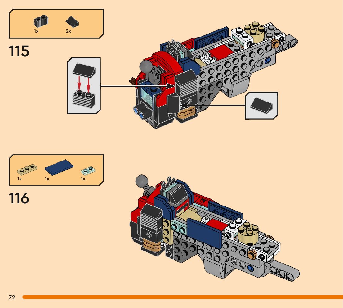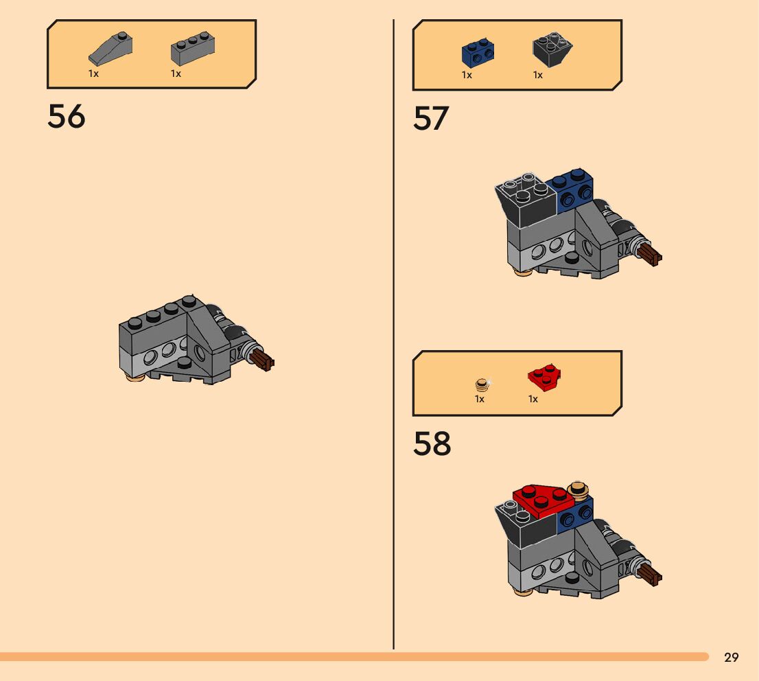 The assembly guide is prepared in a very understandable way for children and adult LEGO enthusiasts. A total of 256 picture galleries are shown, explaining the step-by-step construction stages for 3 different structures.