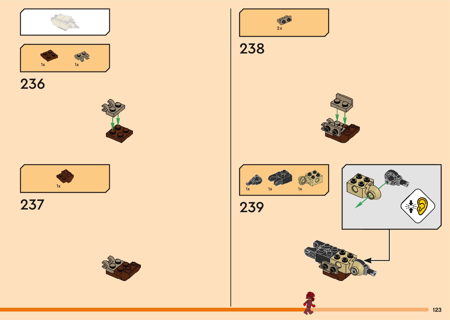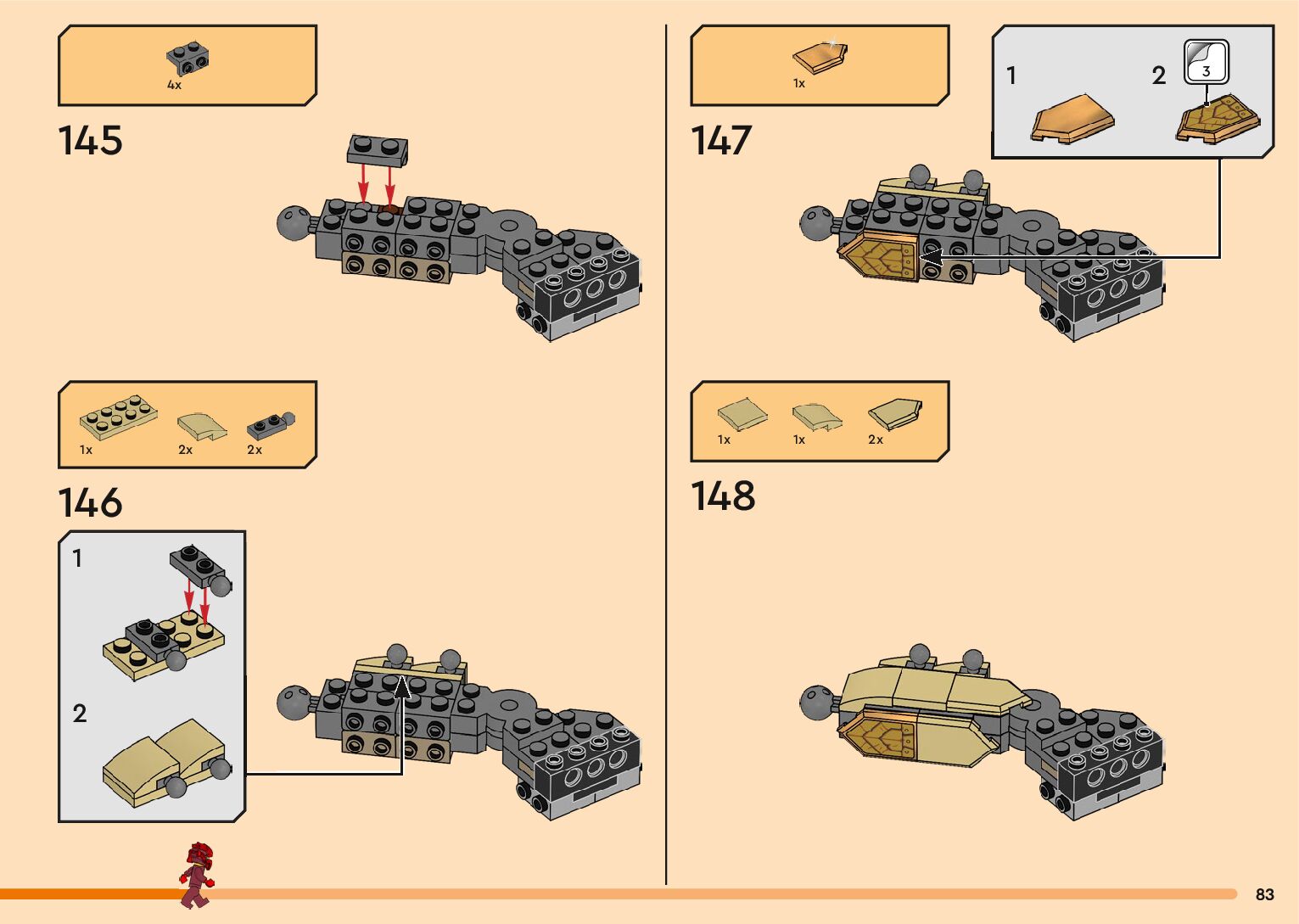 The assembly guide is prepared in a very understandable way for children and adult LEGO enthusiasts. A total of 148 picture galleries are shown, explaining the step-by-step construction stages for 1 different structures.