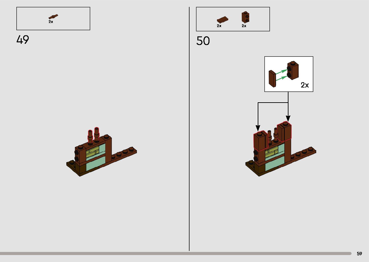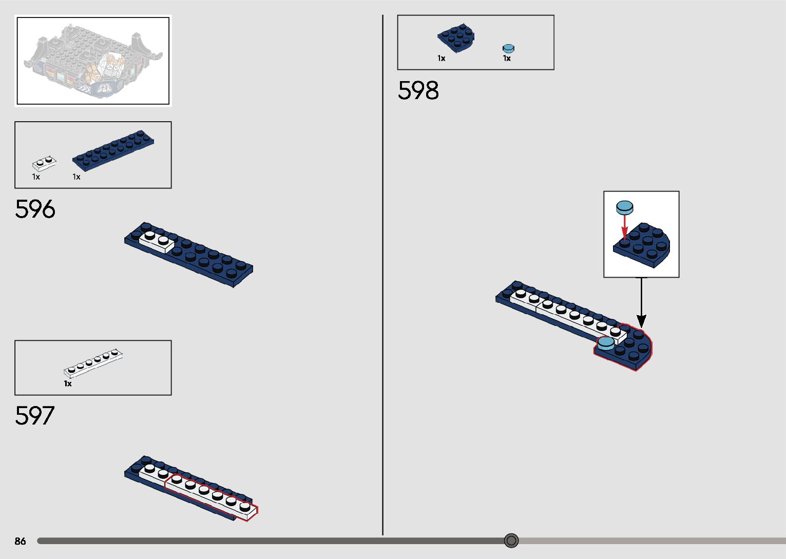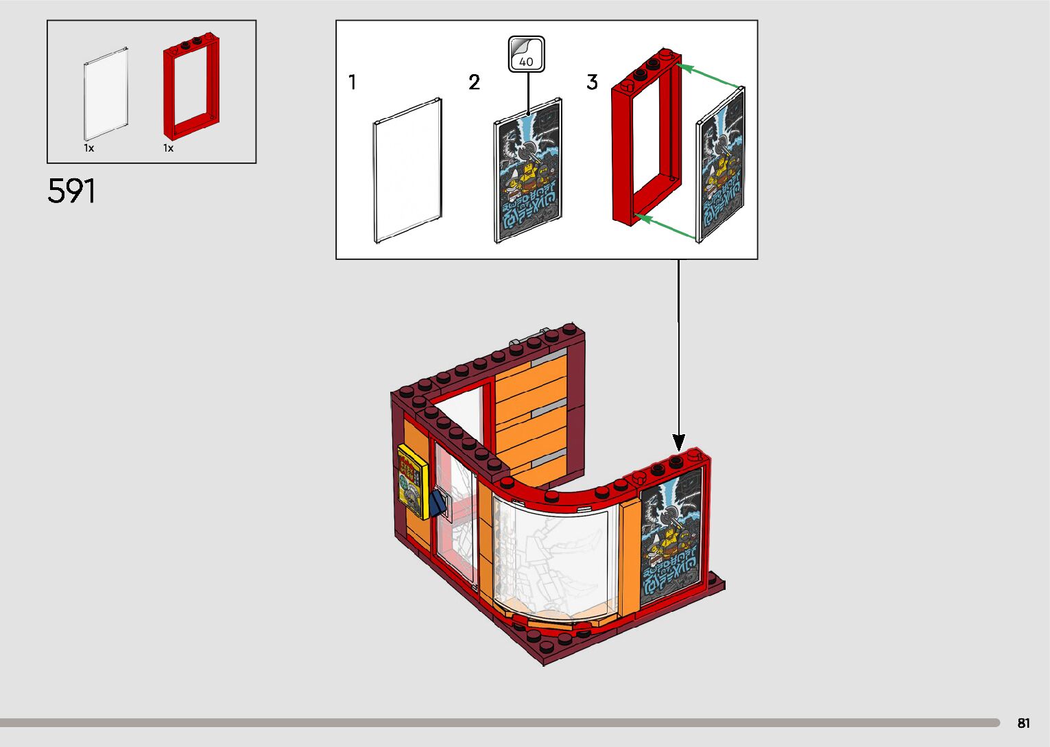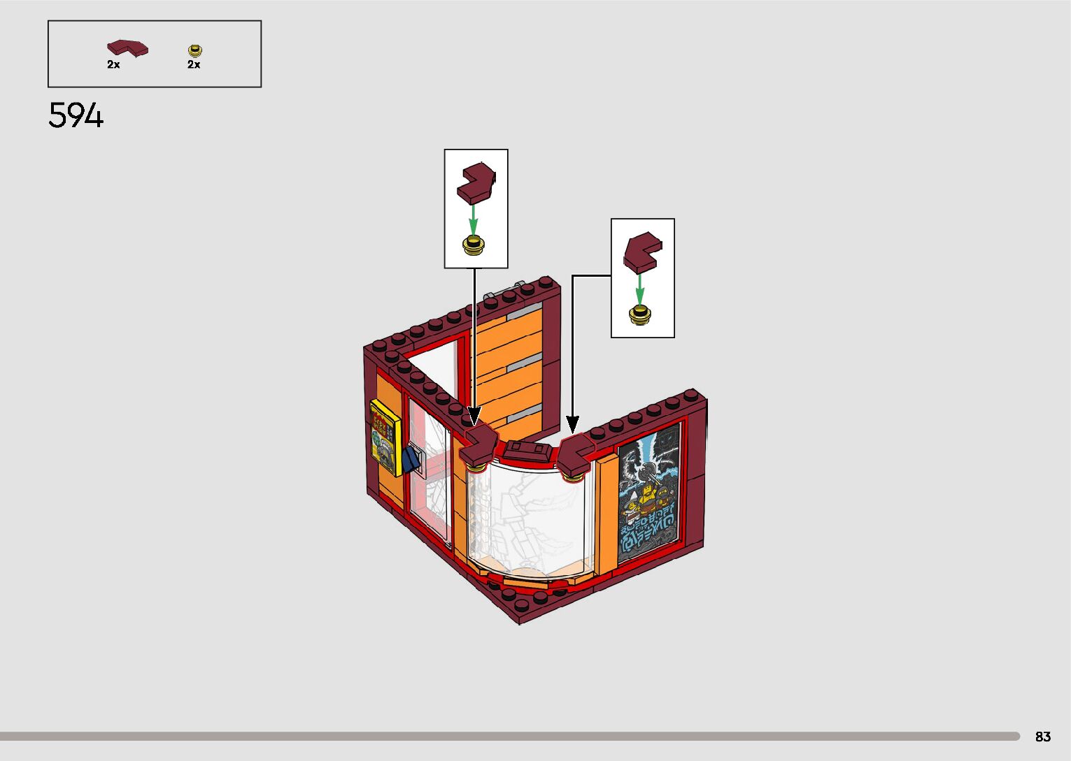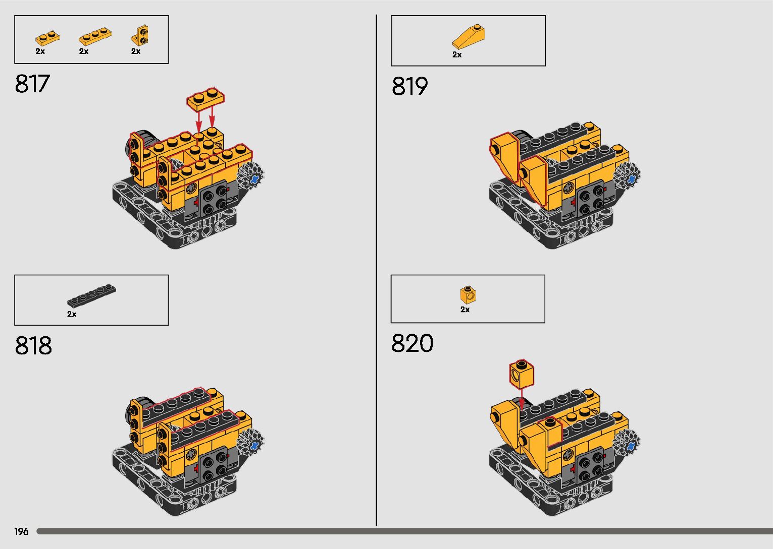 The assembly guide is prepared in a very understandable way for children and adult LEGO enthusiasts. A total of 596 picture galleries are shown, explaining the step-by-step construction stages for 2 different structures.