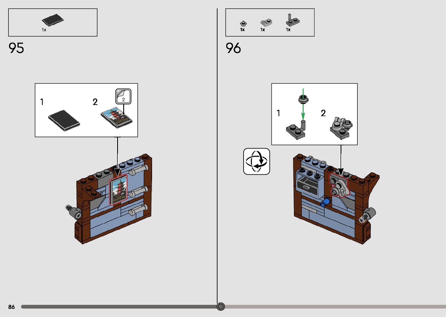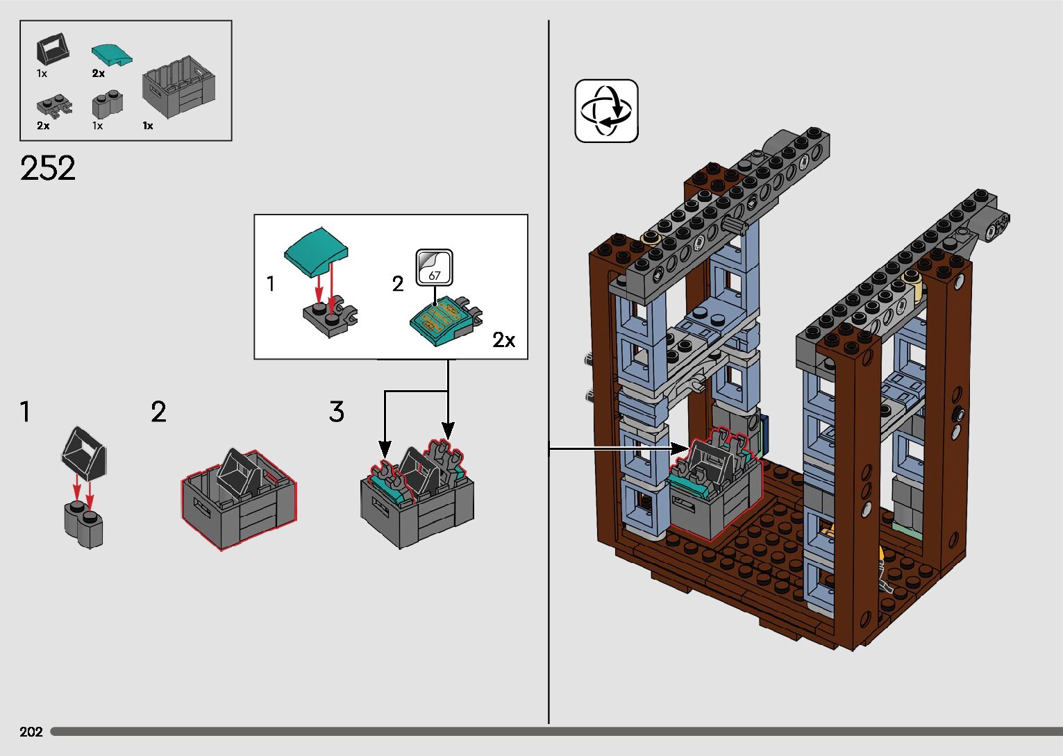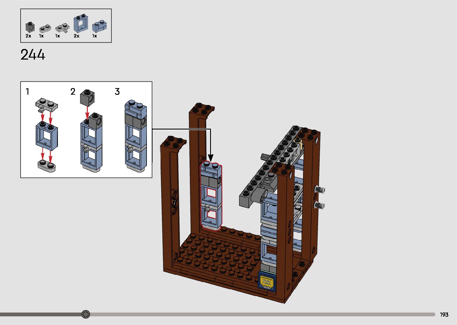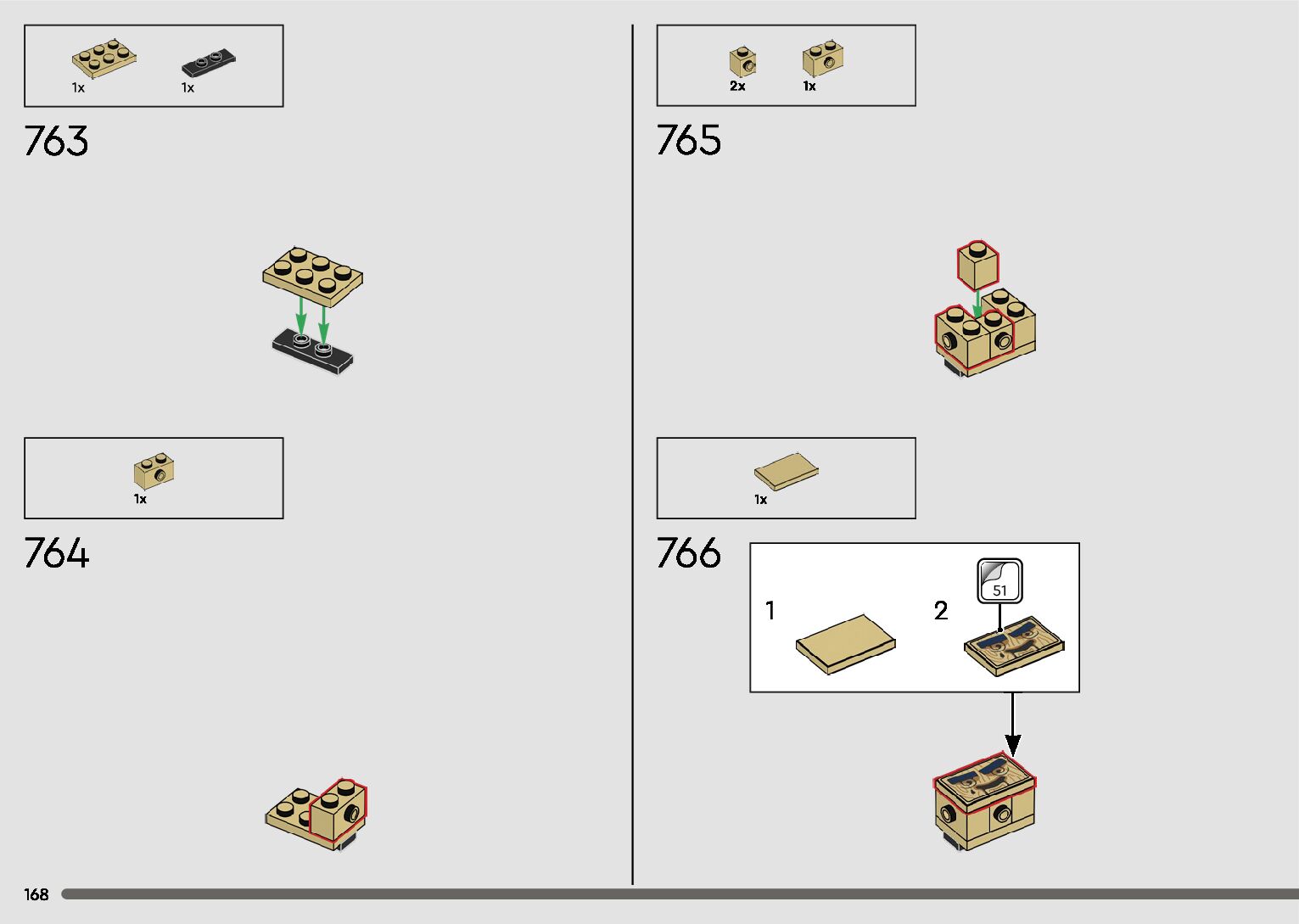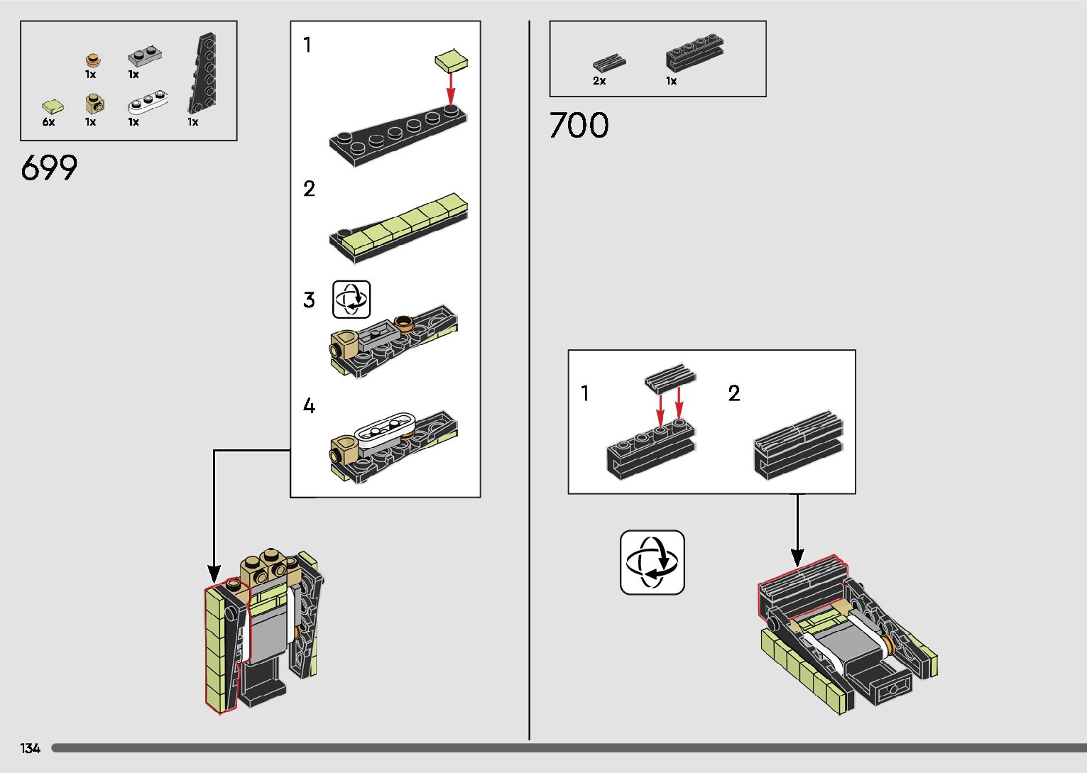 The assembly guide is prepared in a very understandable way for children and adult LEGO enthusiasts. A total of 596 picture galleries are shown, explaining the step-by-step construction stages for 2 different structures.