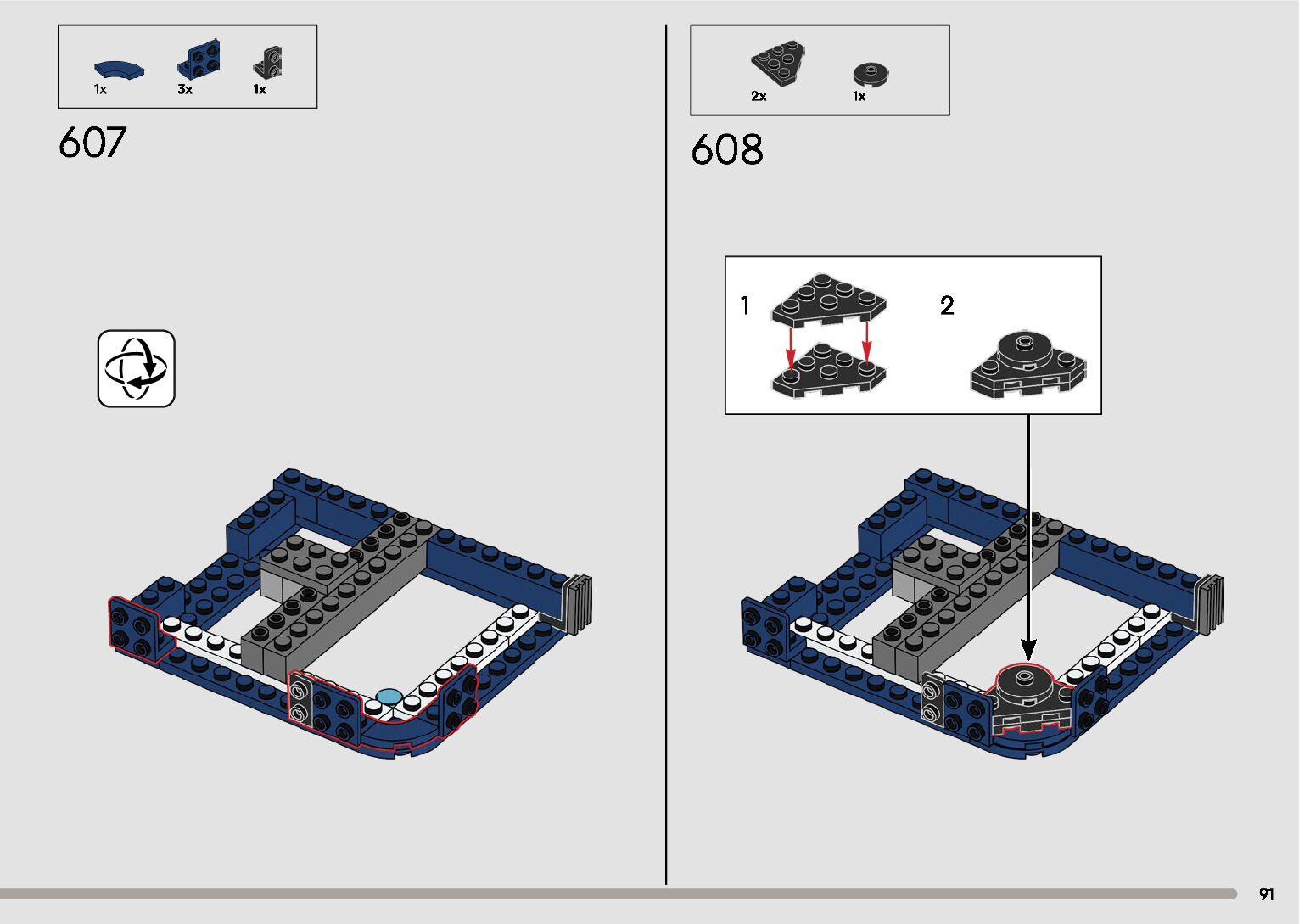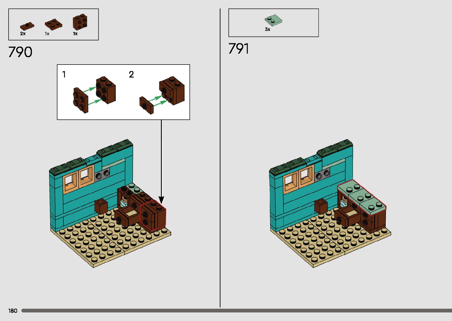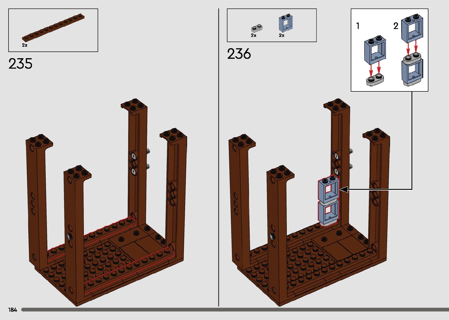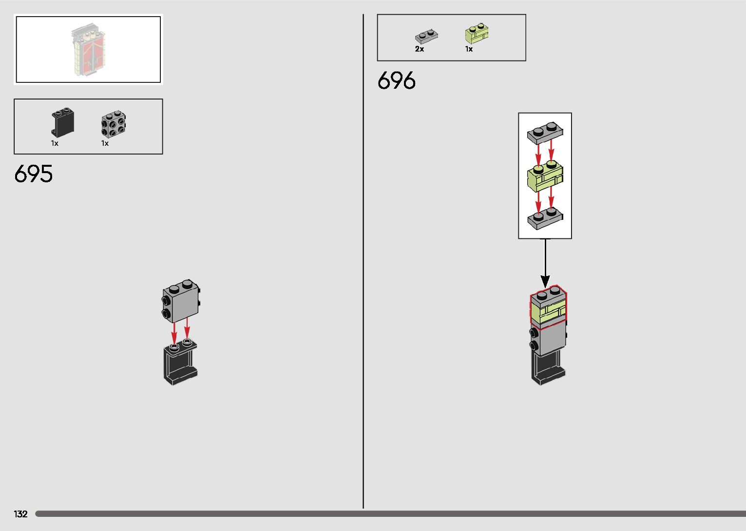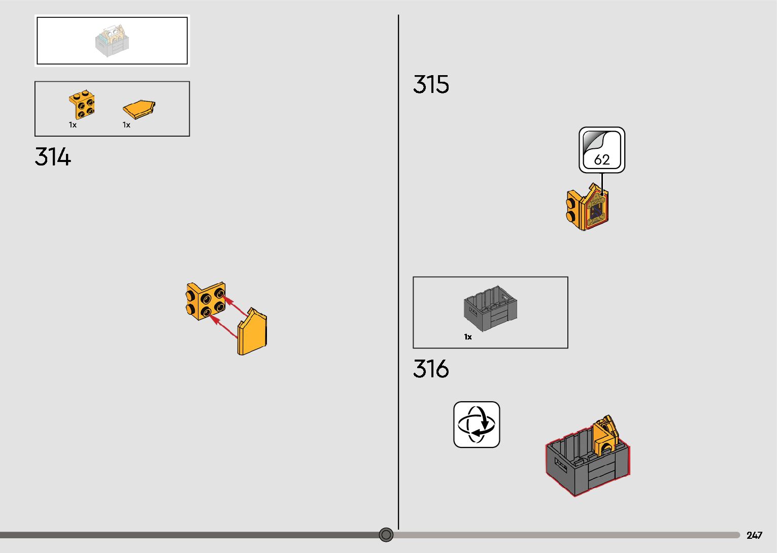 The assembly guide is prepared in a very understandable way for children and adult LEGO enthusiasts. A total of 596 picture galleries are shown, explaining the step-by-step construction stages for 2 different structures.