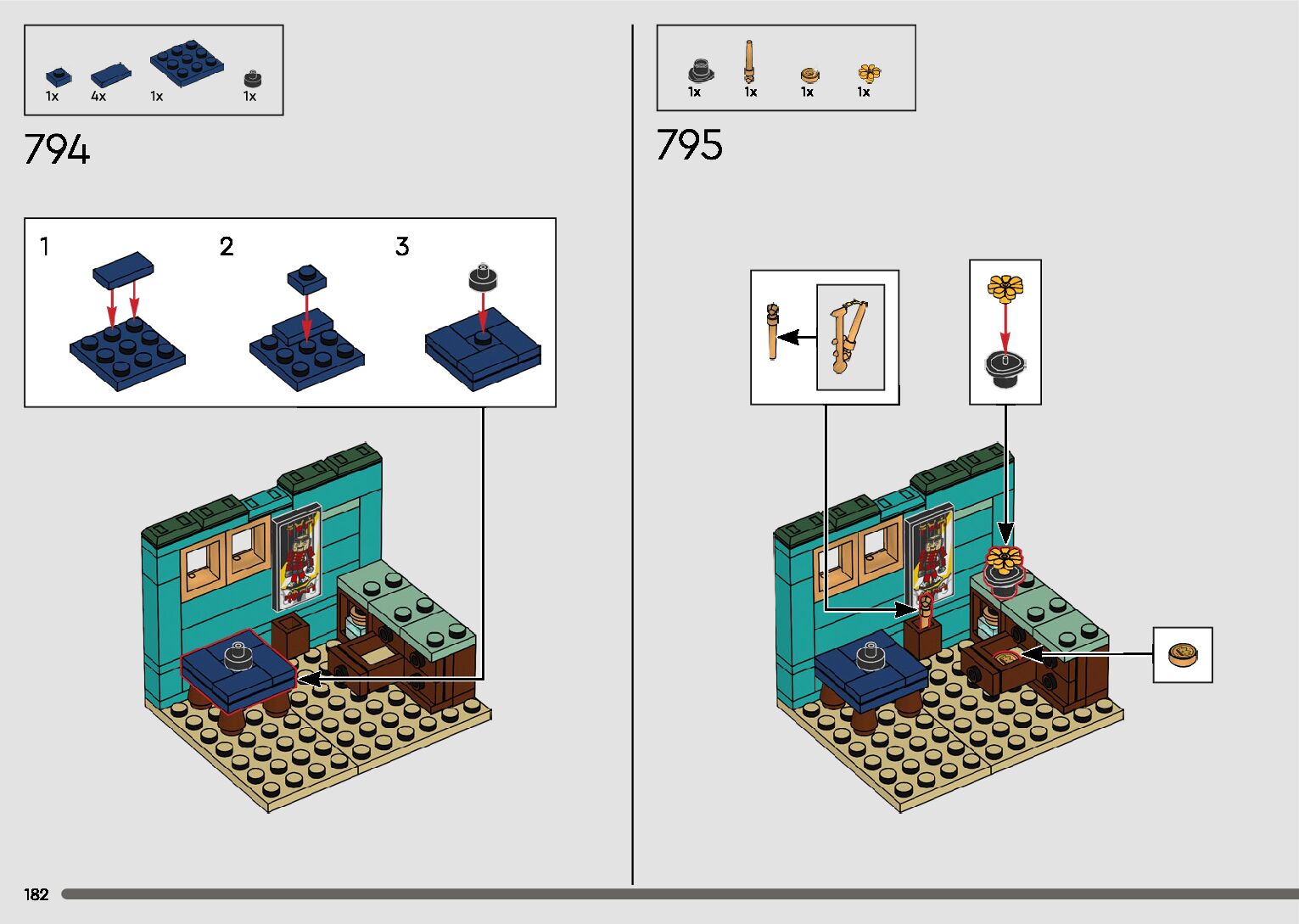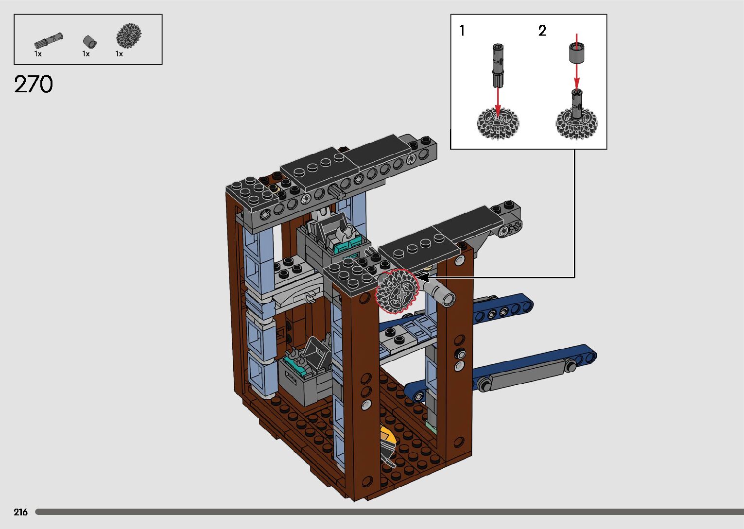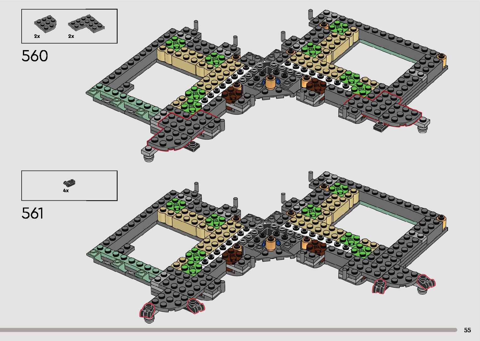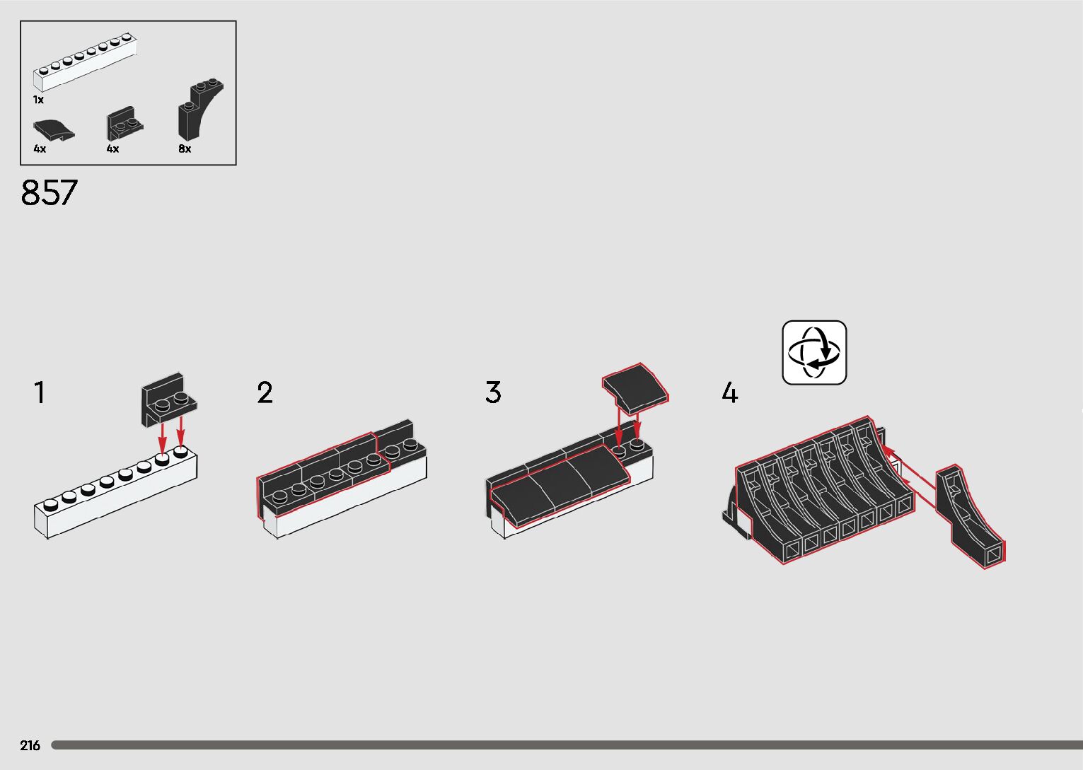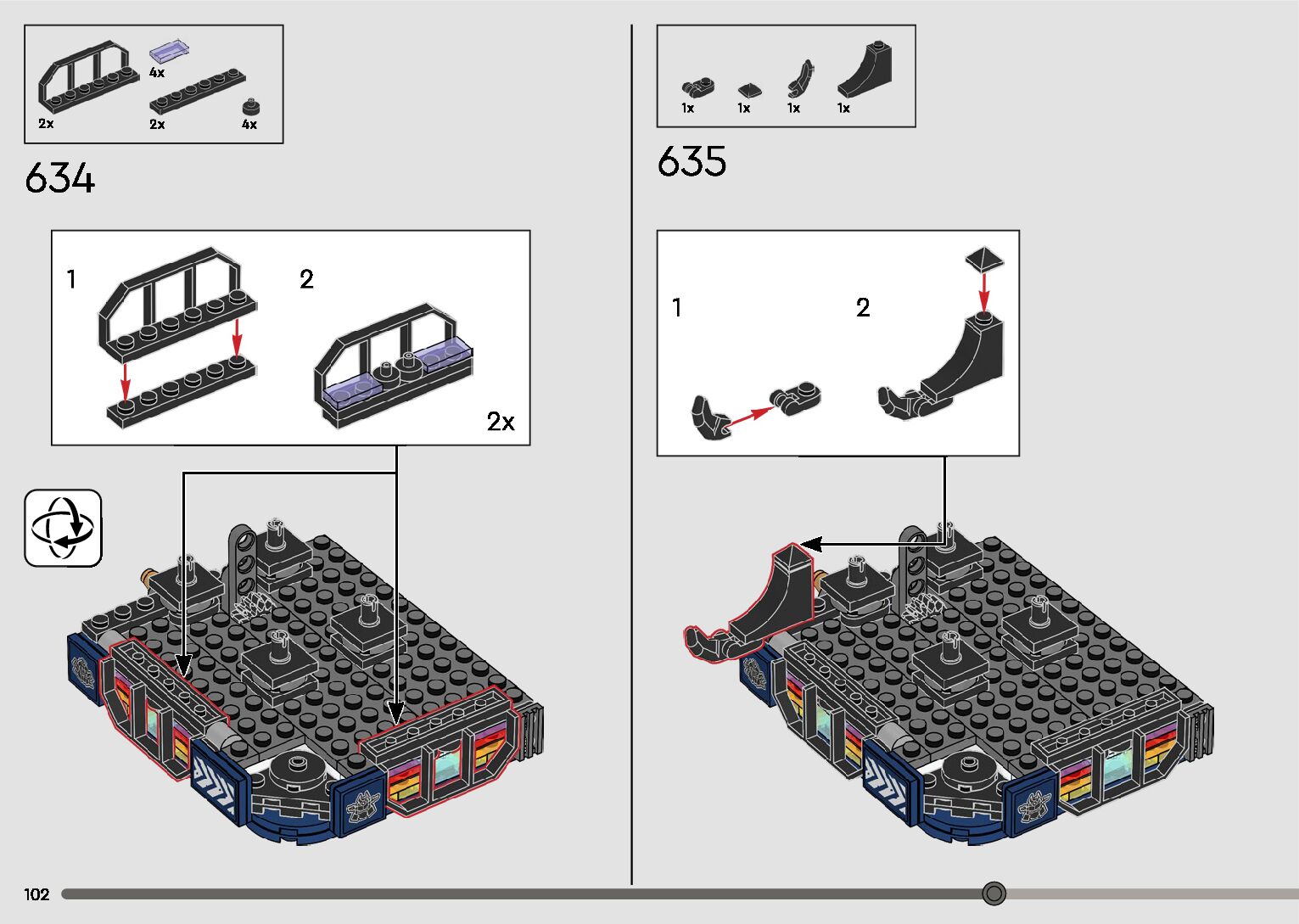 The assembly guide is prepared in a very understandable way for children and adult LEGO enthusiasts. A total of 596 picture galleries are shown, explaining the step-by-step construction stages for 2 different structures.