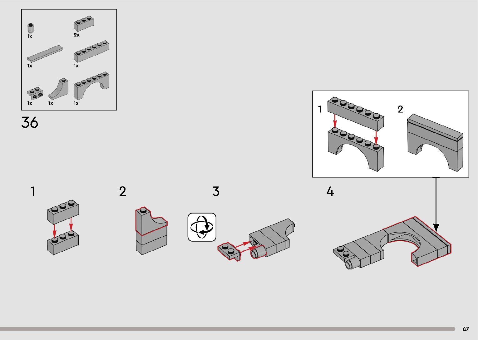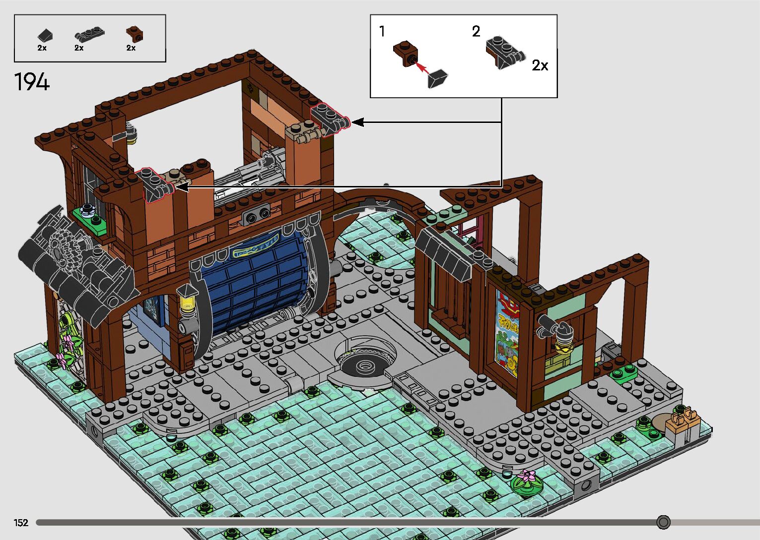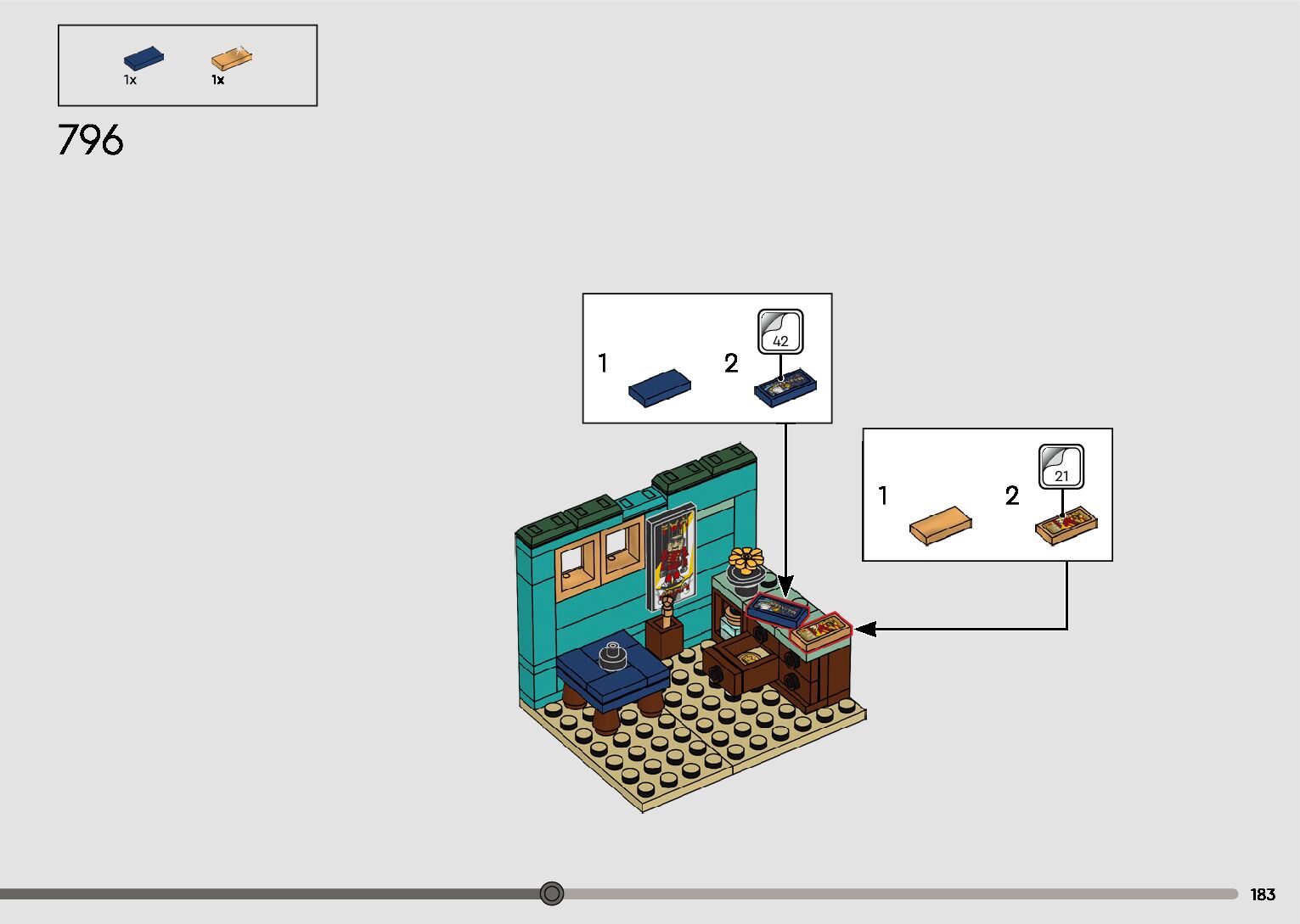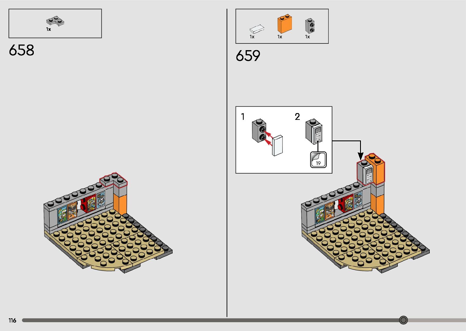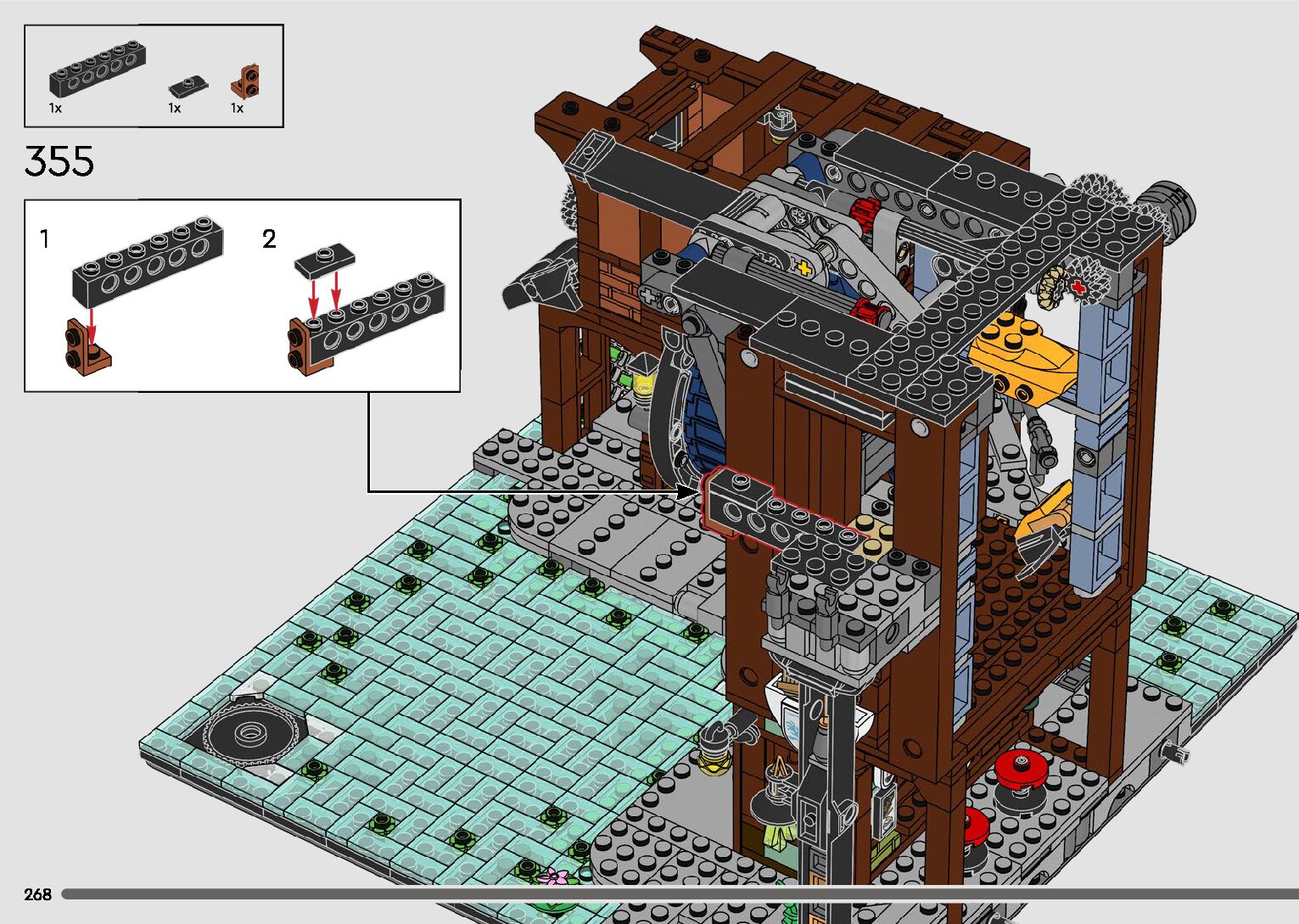 The assembly guide is prepared in a very understandable way for children and adult LEGO enthusiasts. A total of 596 picture galleries are shown, explaining the step-by-step construction stages for 2 different structures.