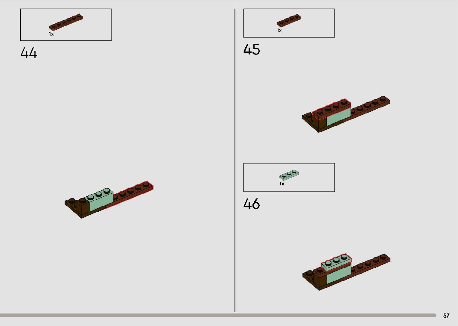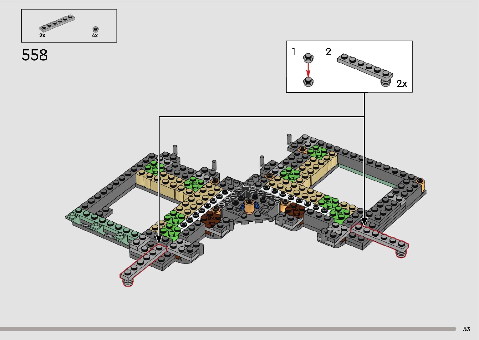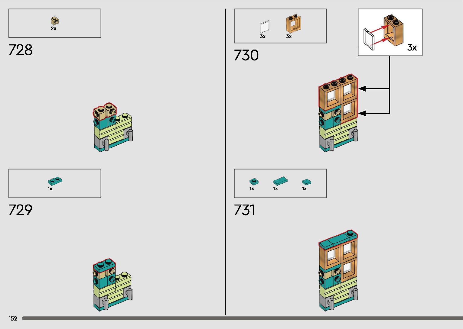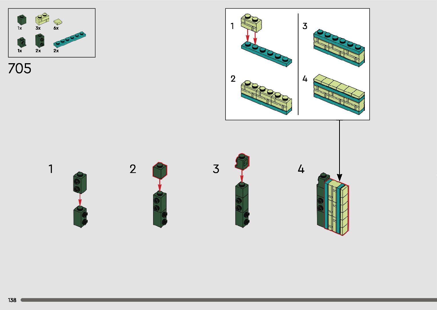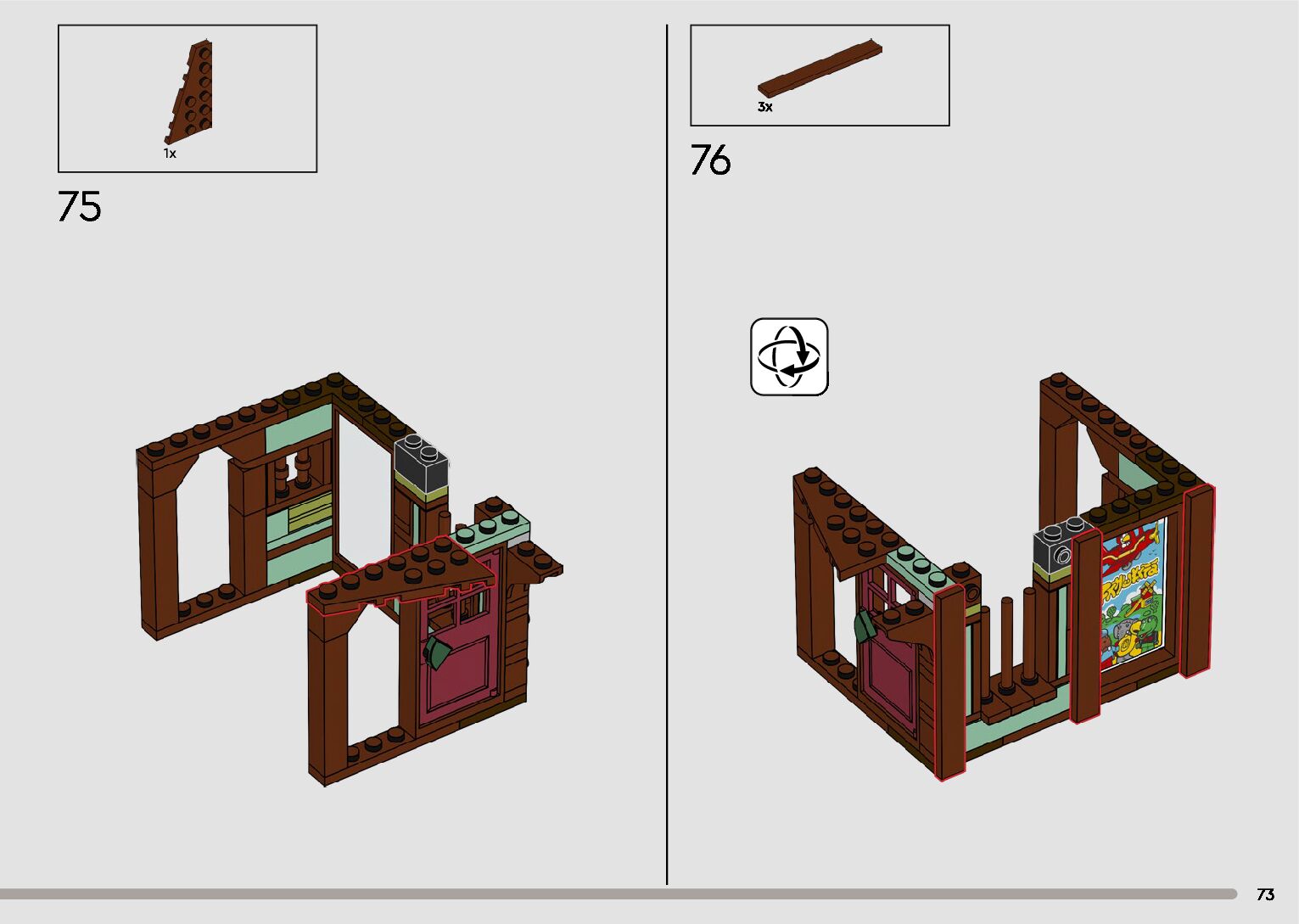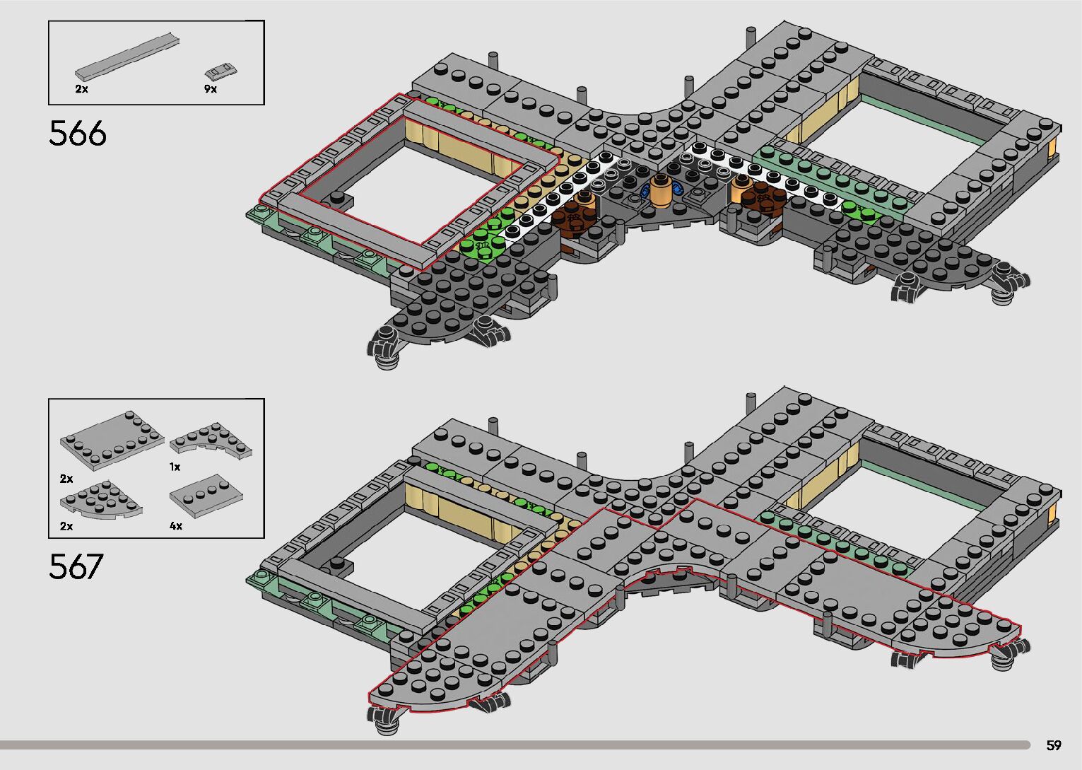 The assembly guide is prepared in a very understandable way for children and adult LEGO enthusiasts. A total of 596 picture galleries are shown, explaining the step-by-step construction stages for 2 different structures.