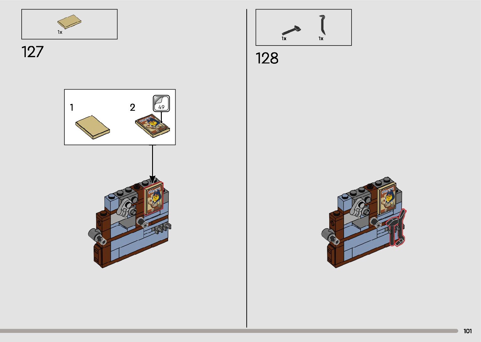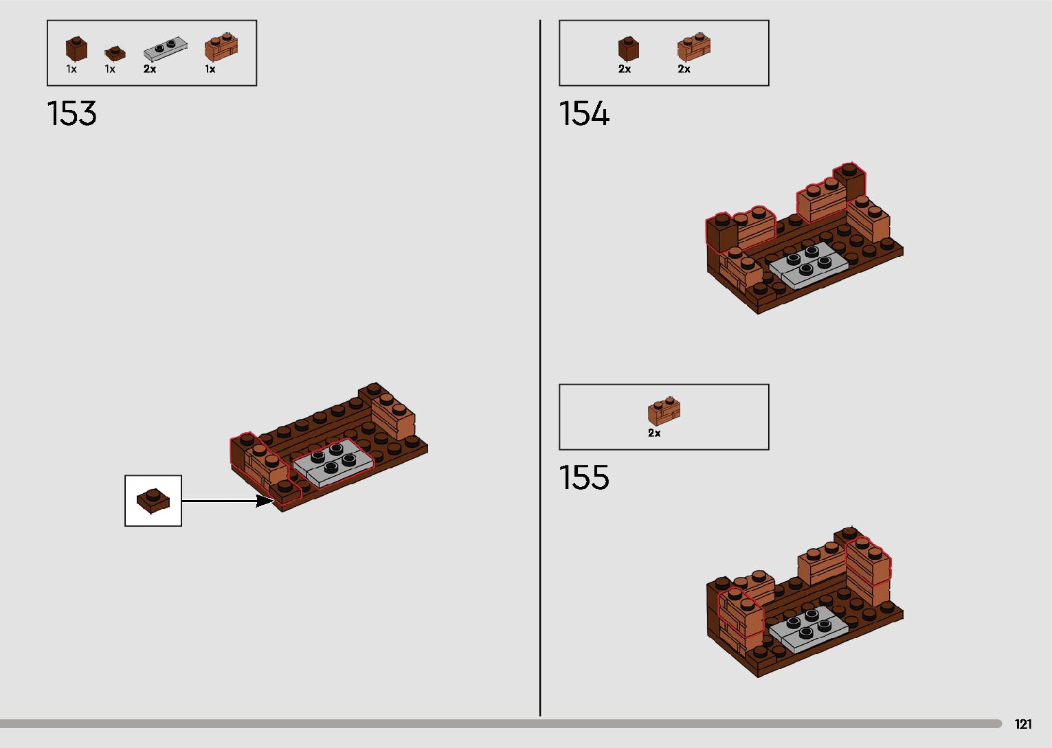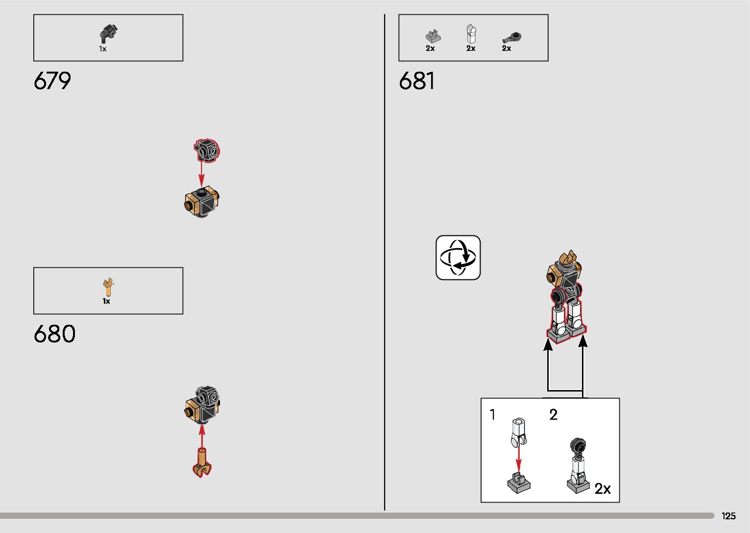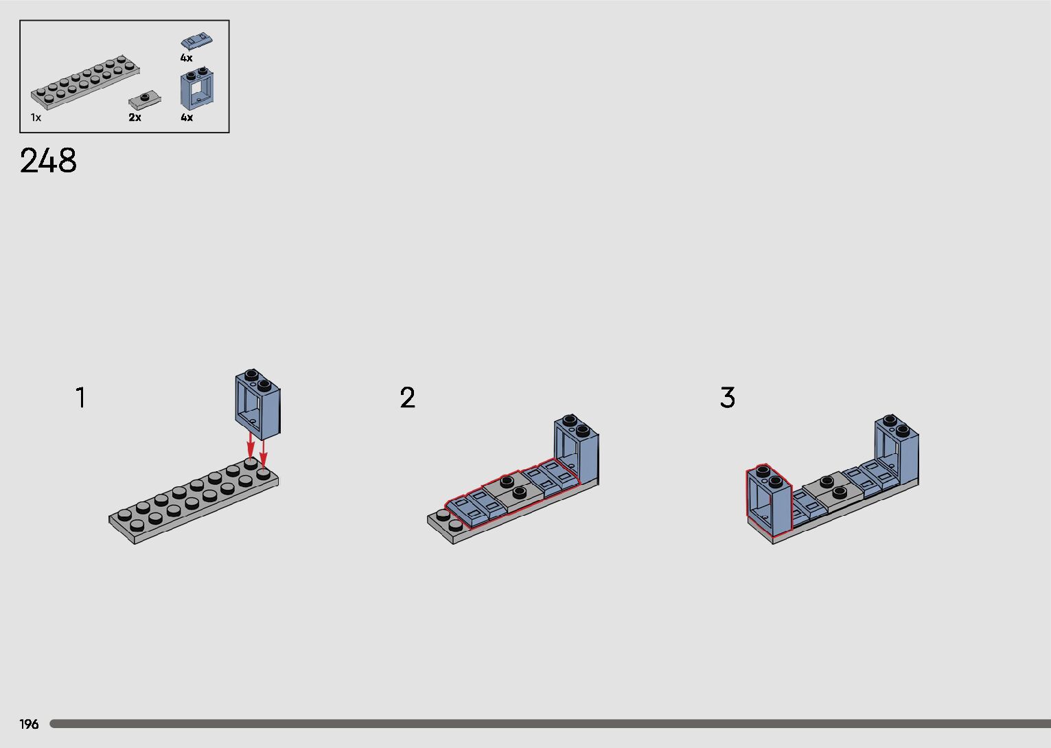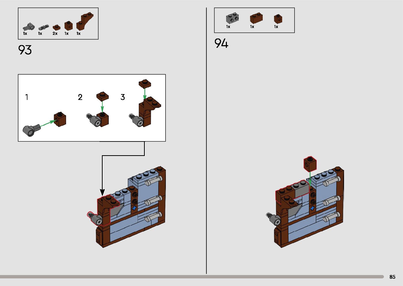The assembly guide is prepared in a very understandable way for children and adult LEGO enthusiasts. A total of 596 picture galleries are shown, explaining the step-by-step construction stages for 2 different structures.