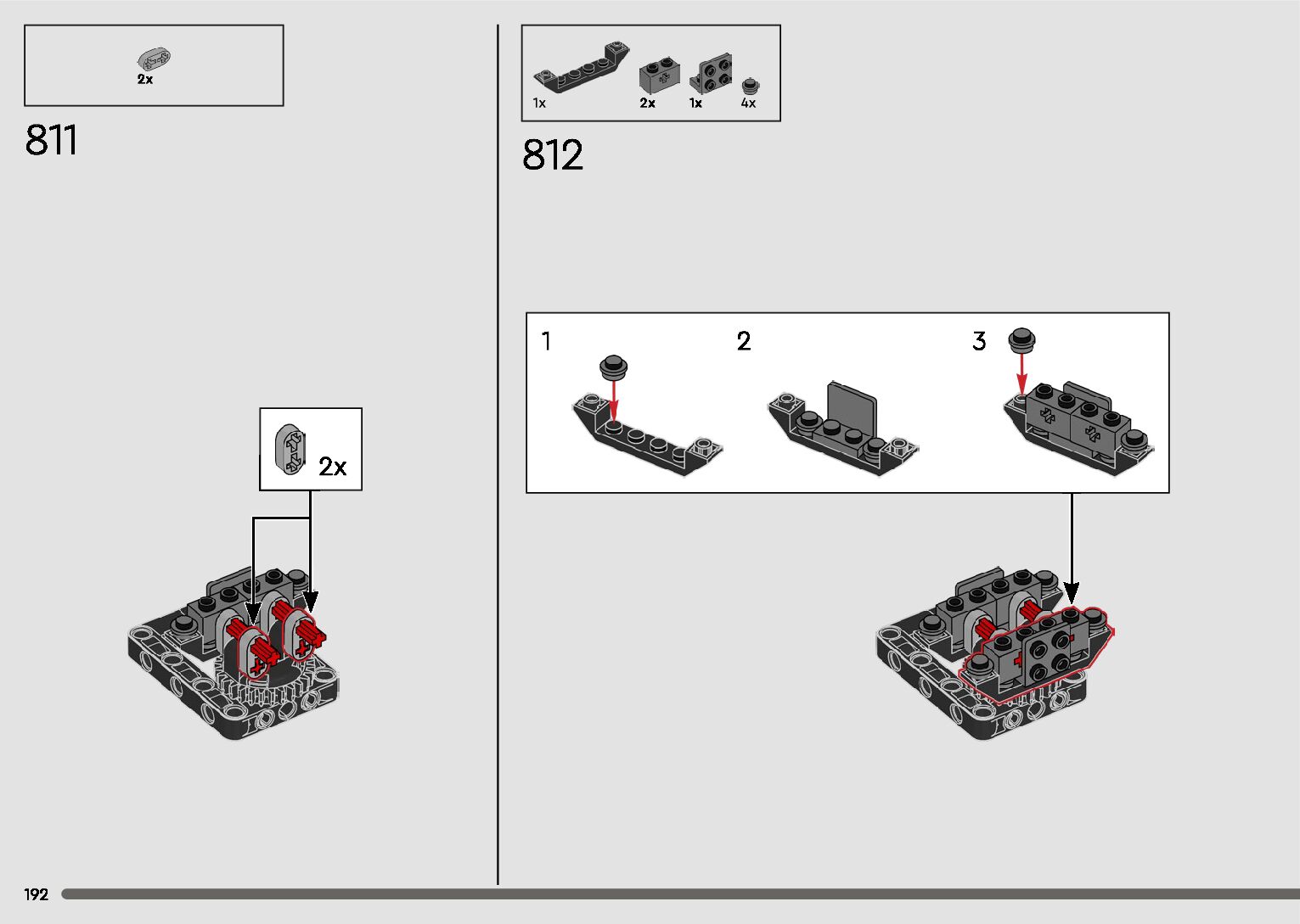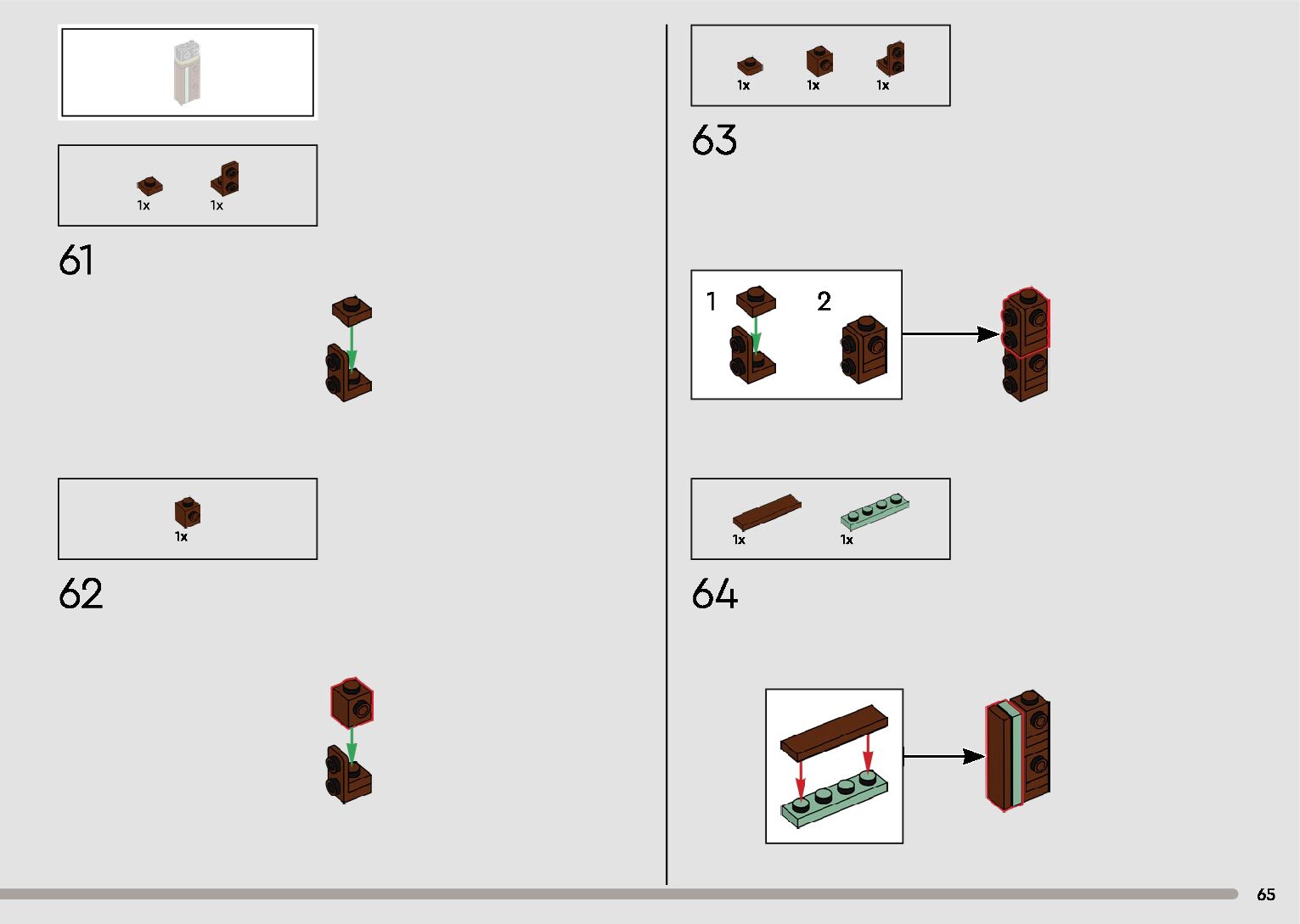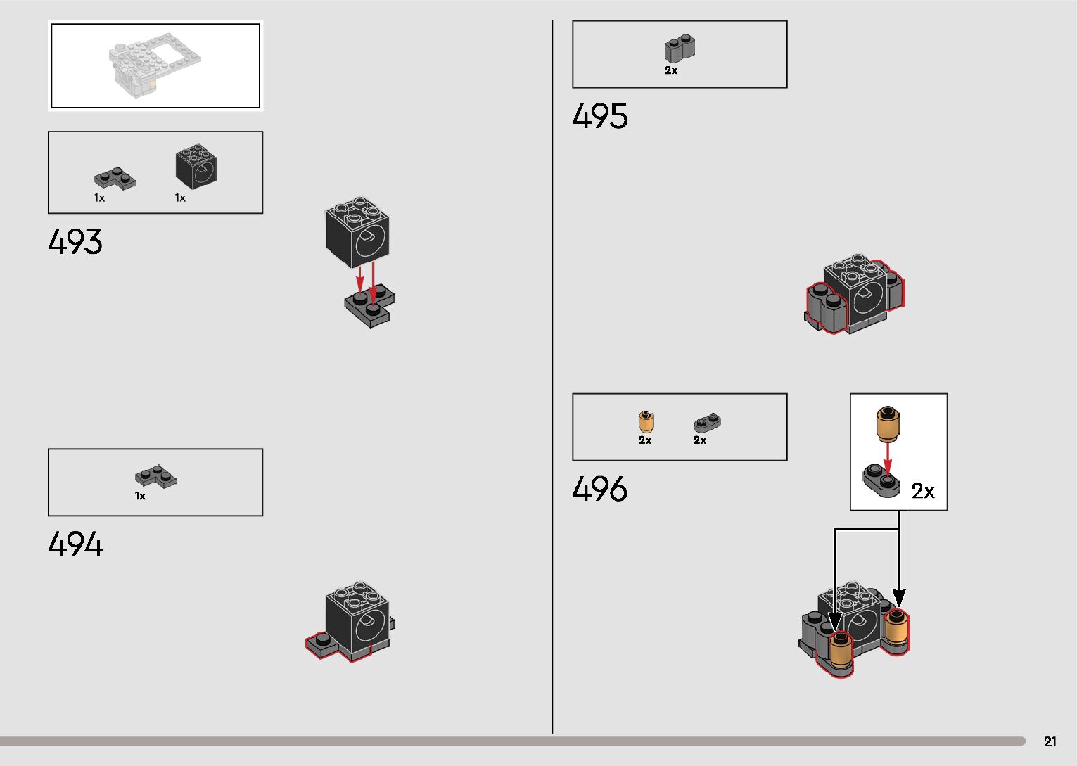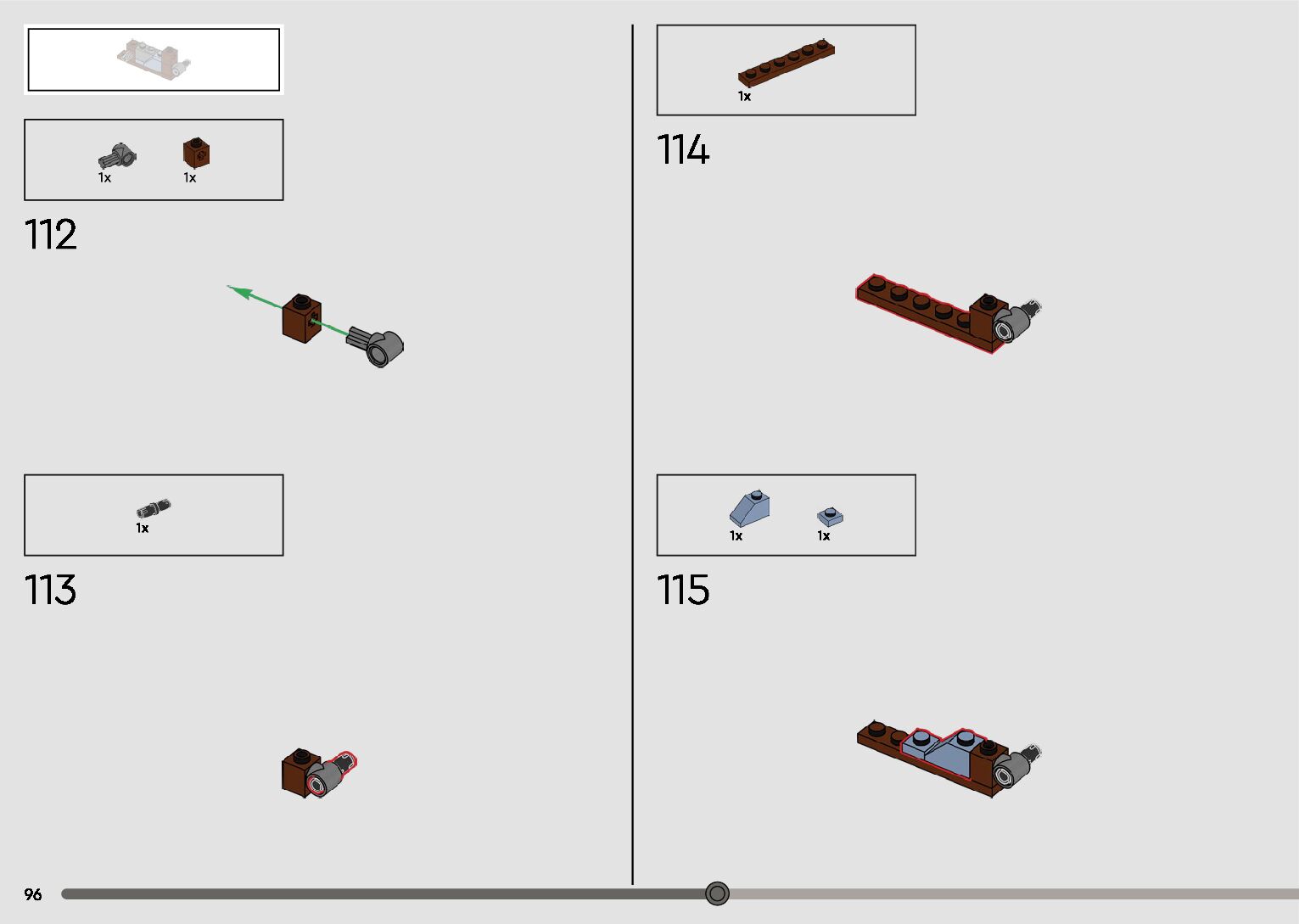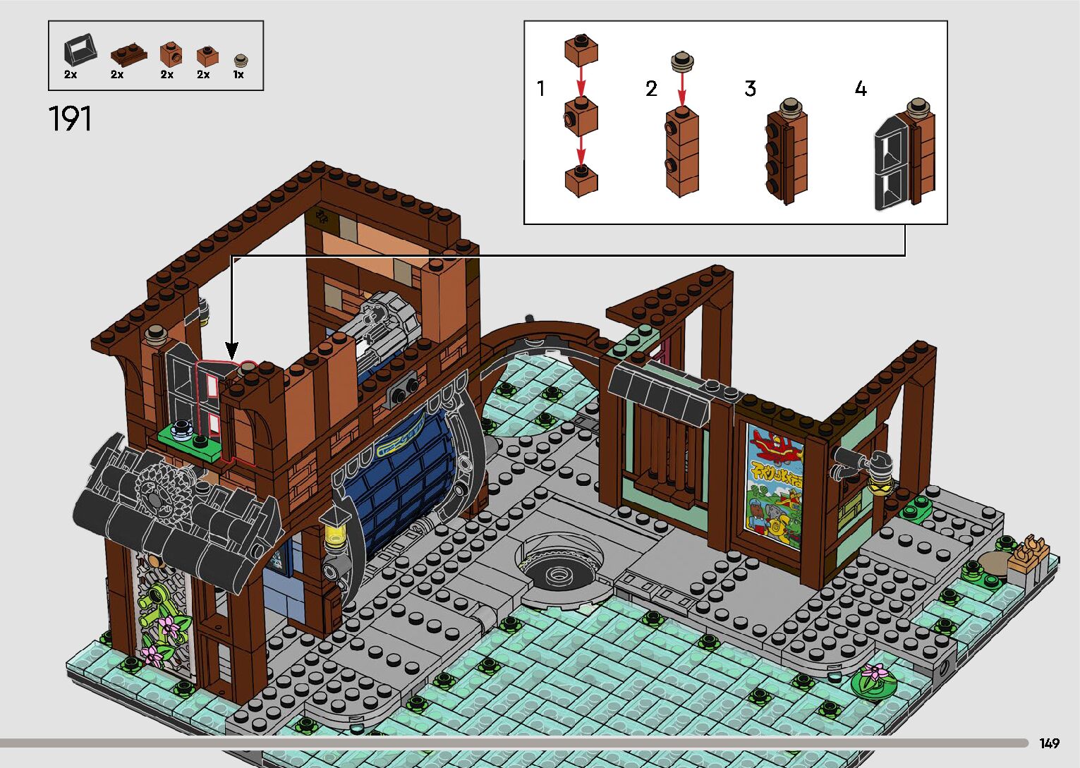The assembly guide is prepared in a very understandable way for children and adult LEGO enthusiasts. A total of 596 picture galleries are shown, explaining the step-by-step construction stages for 2 different structures.
