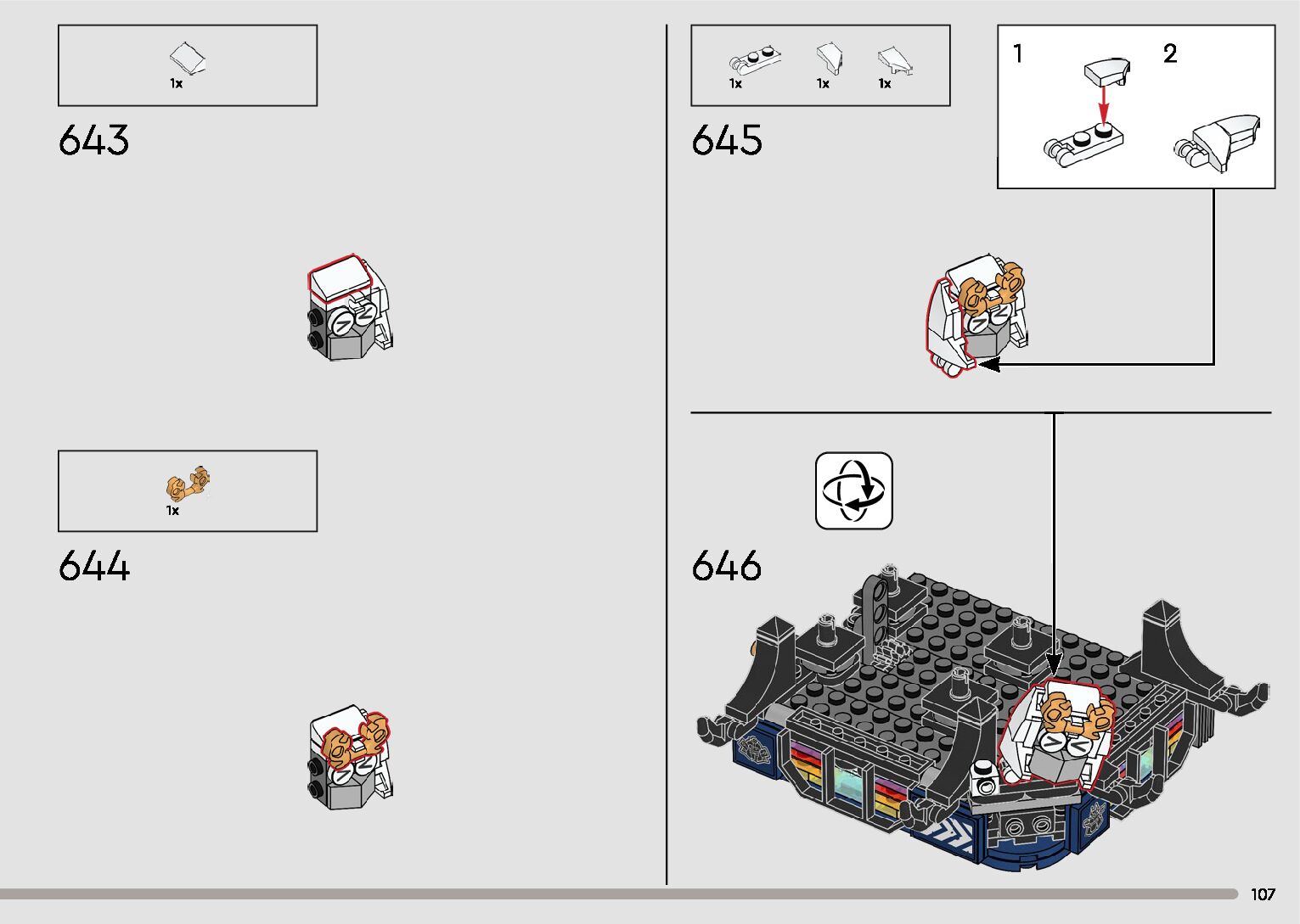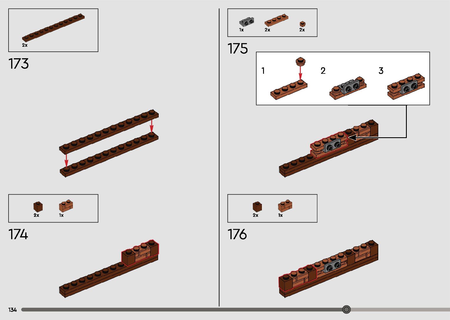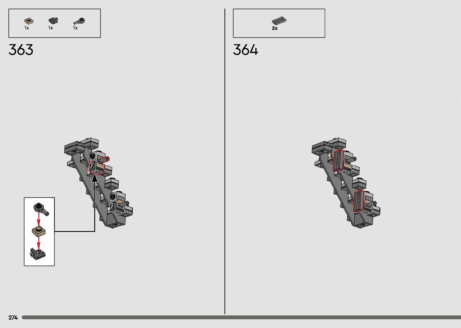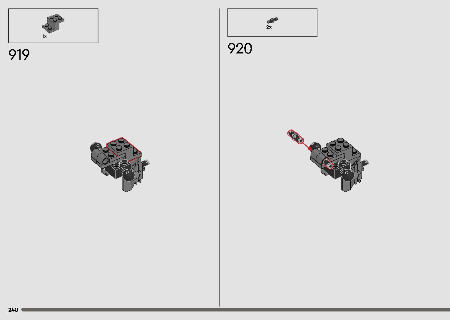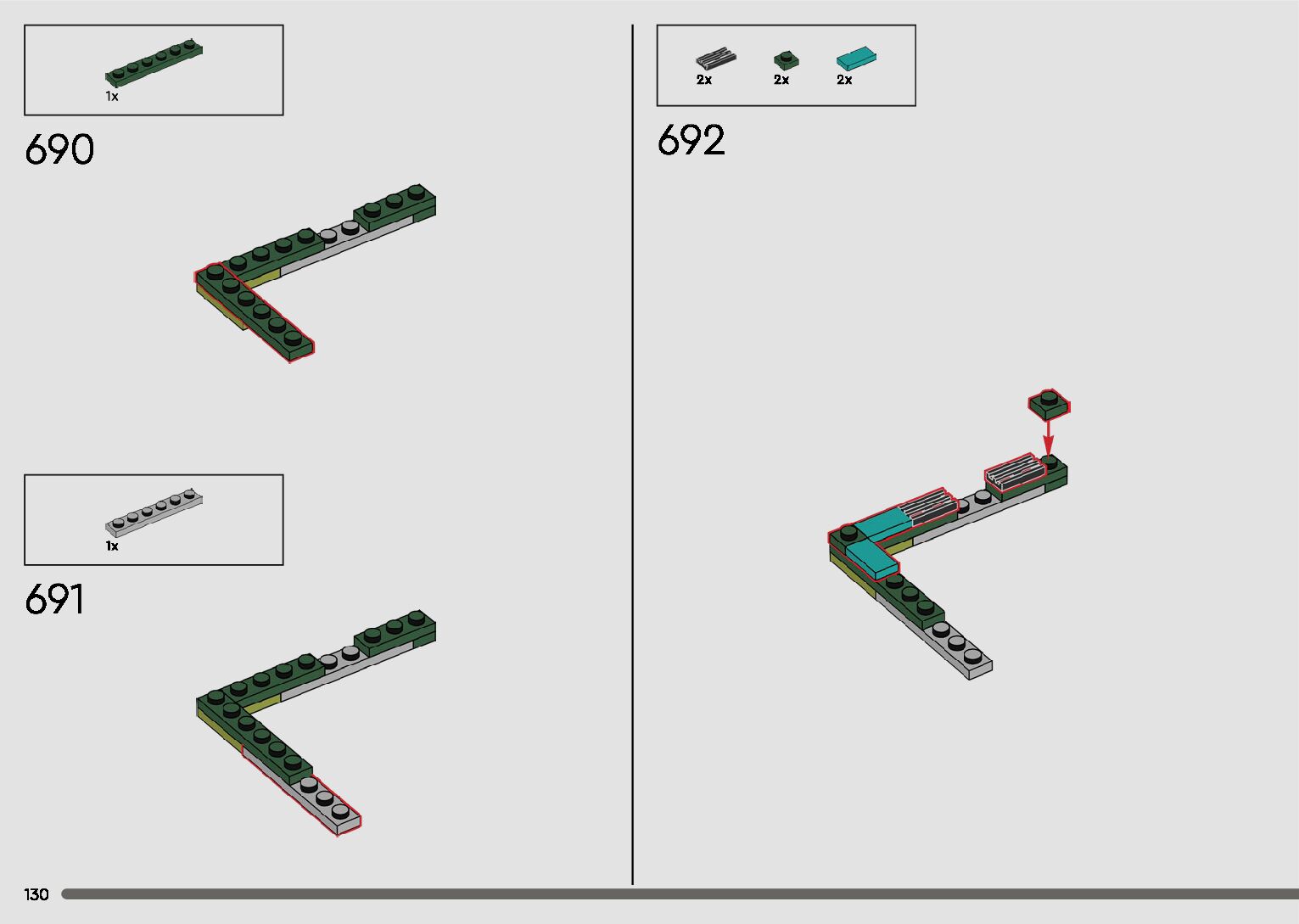 The assembly guide is prepared in a very understandable way for children and adult LEGO enthusiasts. A total of 596 picture galleries are shown, explaining the step-by-step construction stages for 2 different structures.